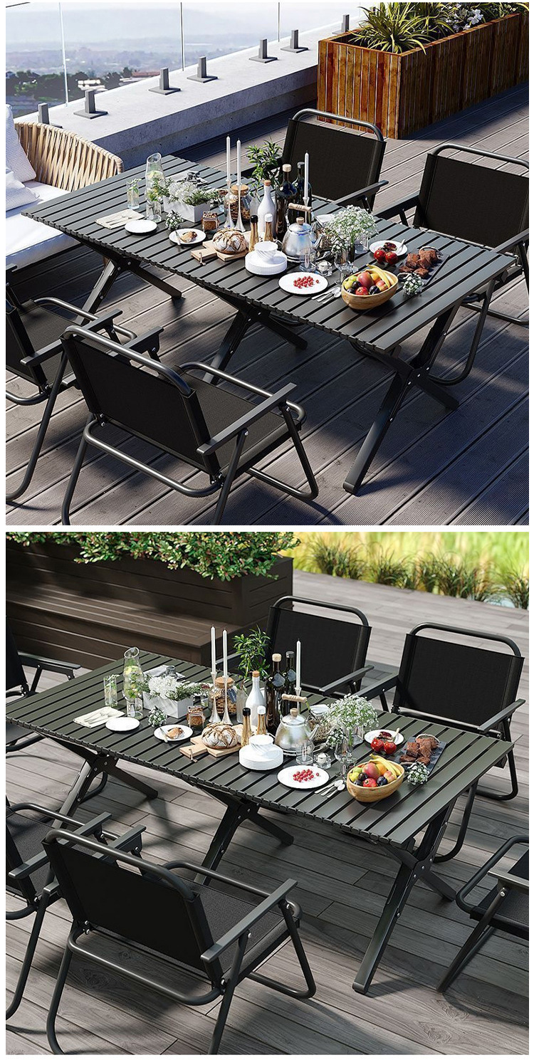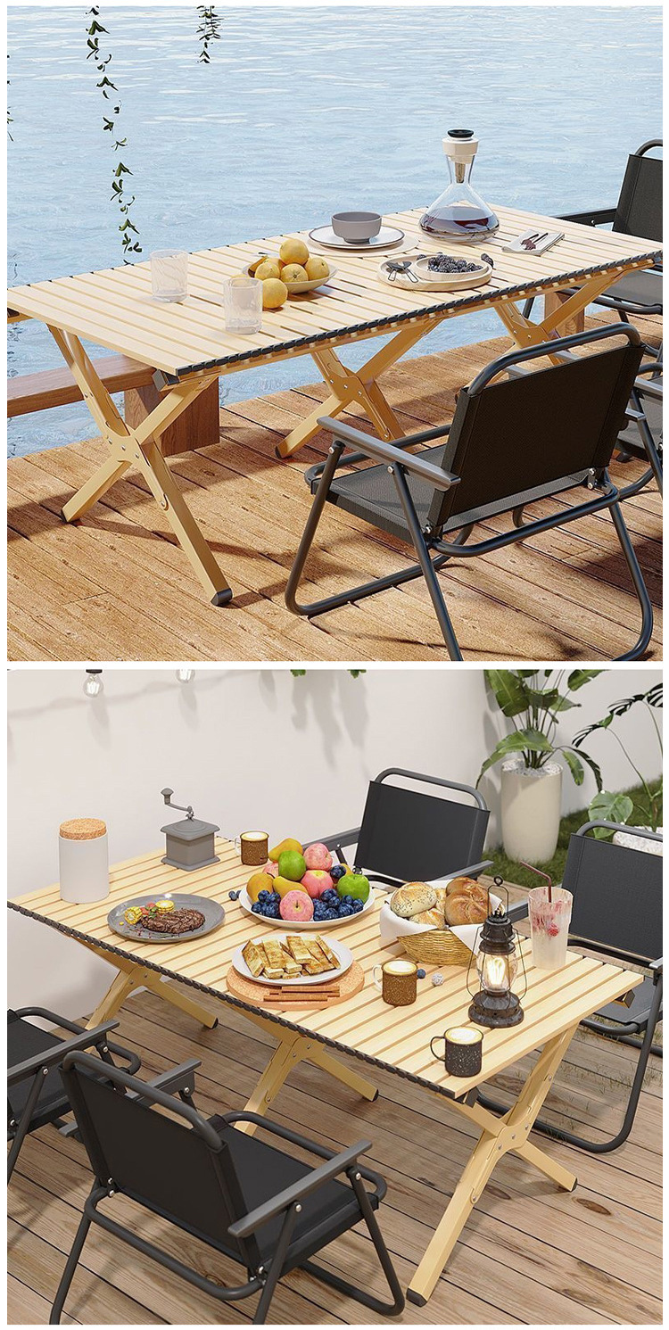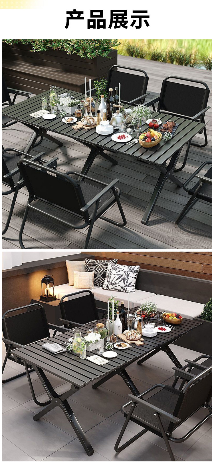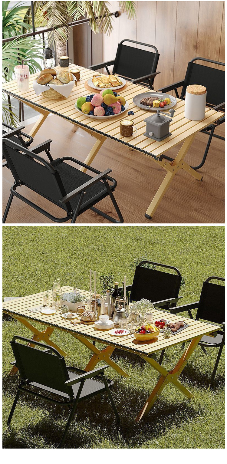 야외 접이식 테이블과 의자 휴대용 마구간 테이블 캠핑 피크닉 테이블 야외 조명 식당 의자 달걀 롤 테이블 세트