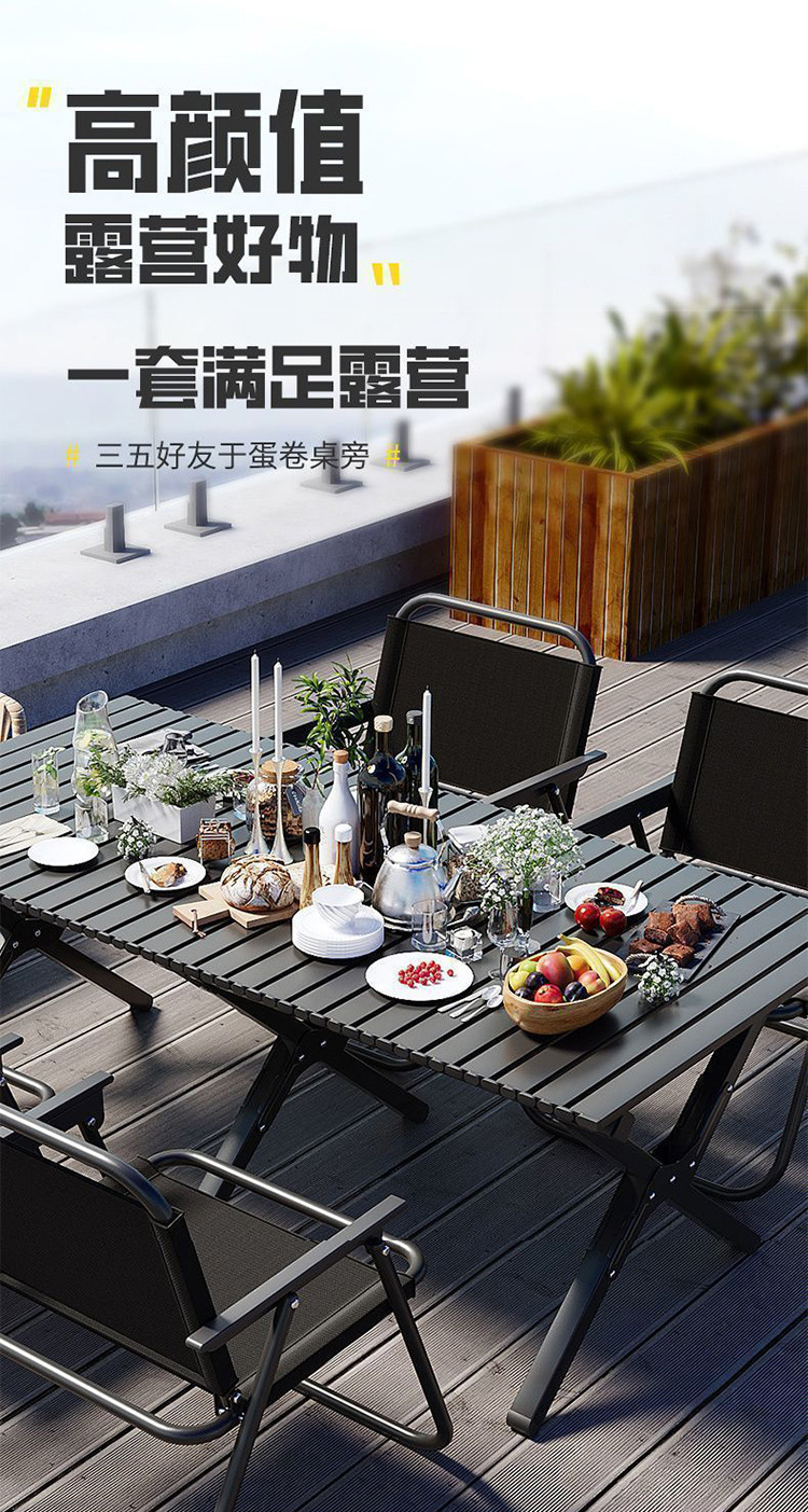야외 접이식 테이블과 의자 휴대용 마구간 테이블 캠핑 피크닉 테이블 야외 조명 식당 의자 달걀 롤 테이블 세트스토어 가기