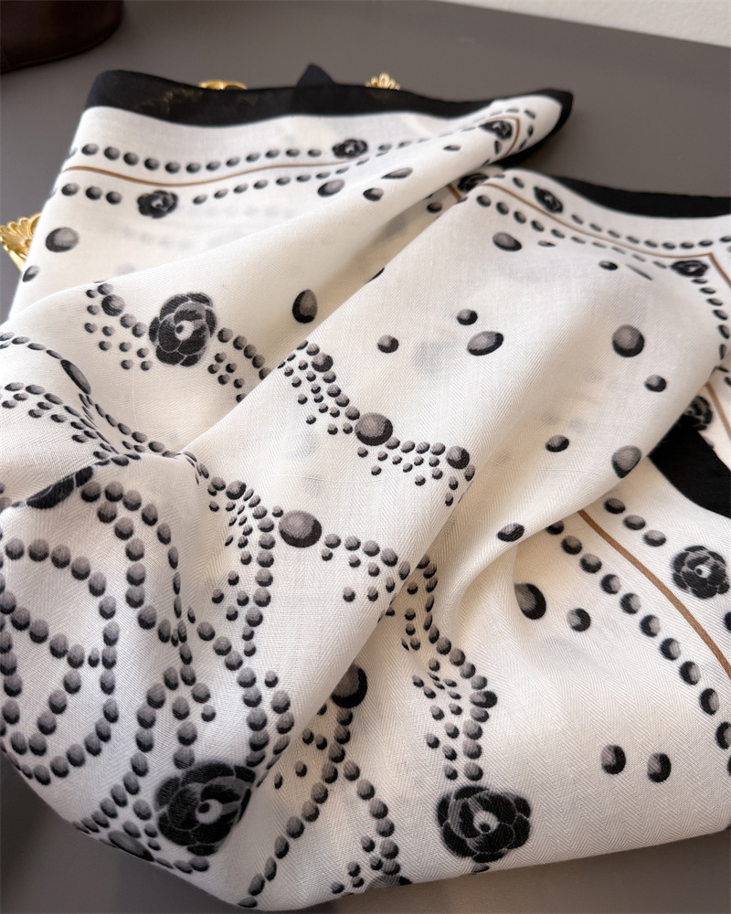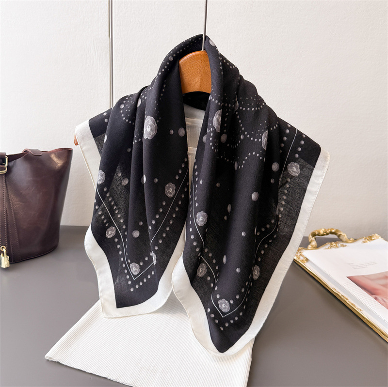 흑백 꽃 헤링본면 린넨 느낌 작은 사각 실크 스카프 모조 벨벳 터번 목도리 선 스크린 스카프 여성용 스카프