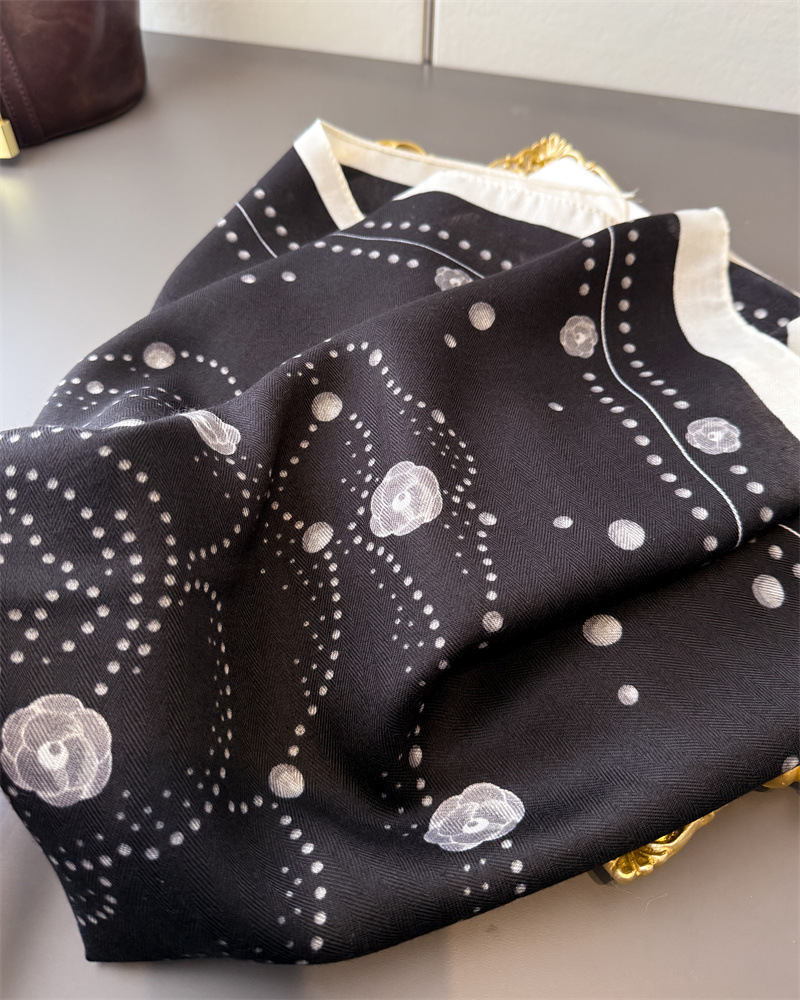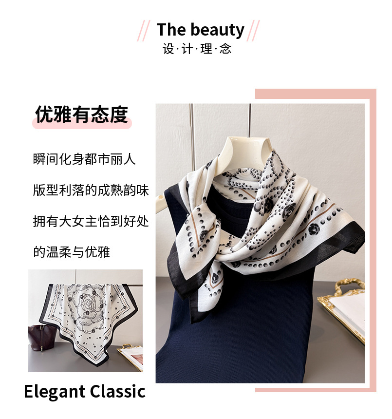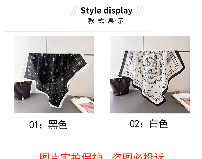 흑백 꽃 헤링본면 린넨 느낌 작은 사각 실크 스카프 모조 벨벳 터번 목도리 선 스크린 스카프 여성용 스카프스토어 가기