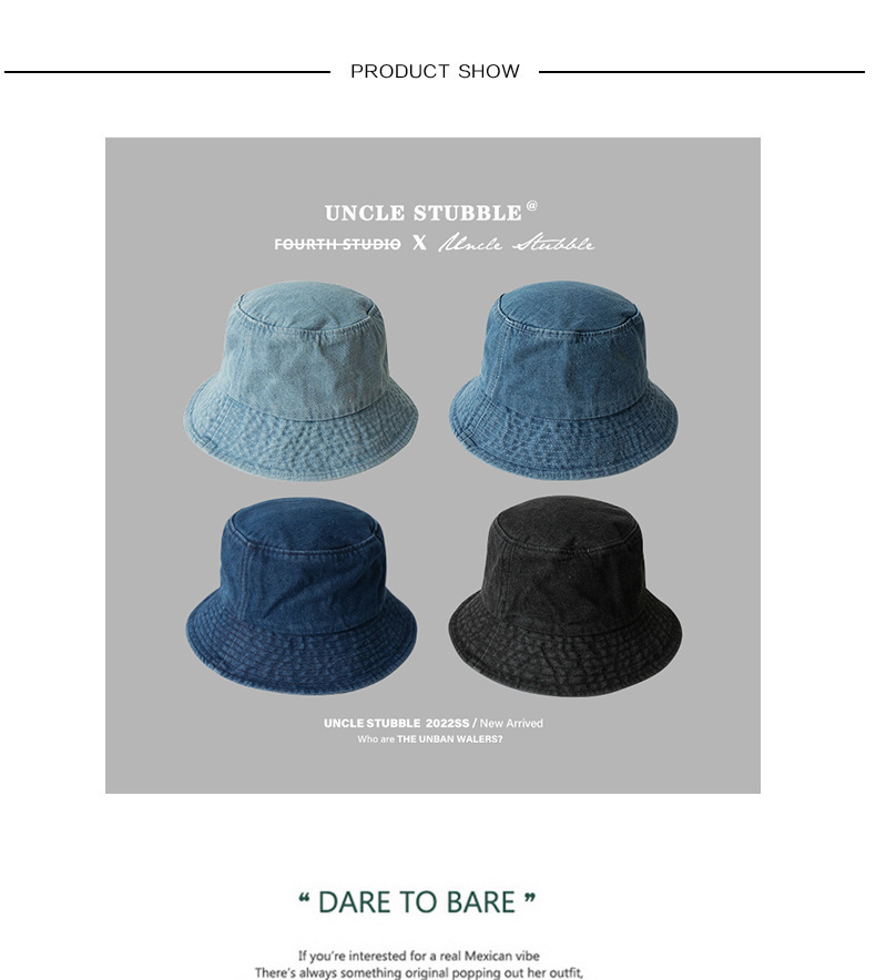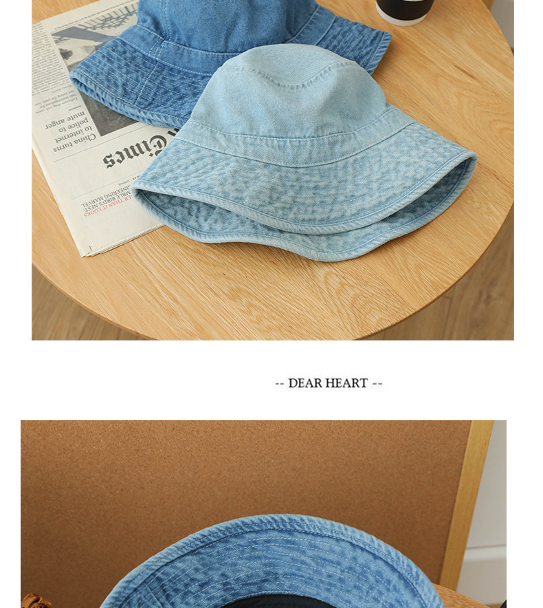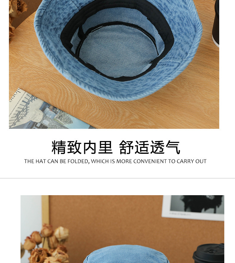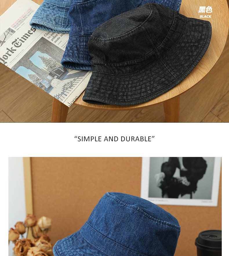 한국 데님 어부 모자 남자 빅 브림, 얼굴 작은 소녀의 빈 얼굴 덮은 분지 모자 한국 올 매치 커플 모자스토어 가기