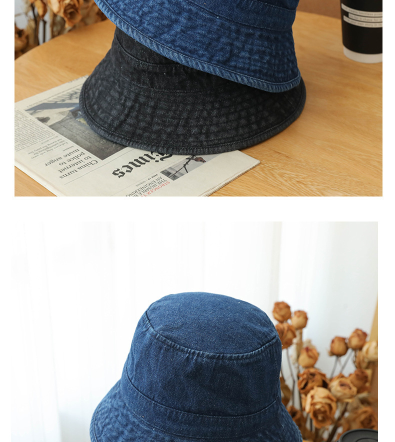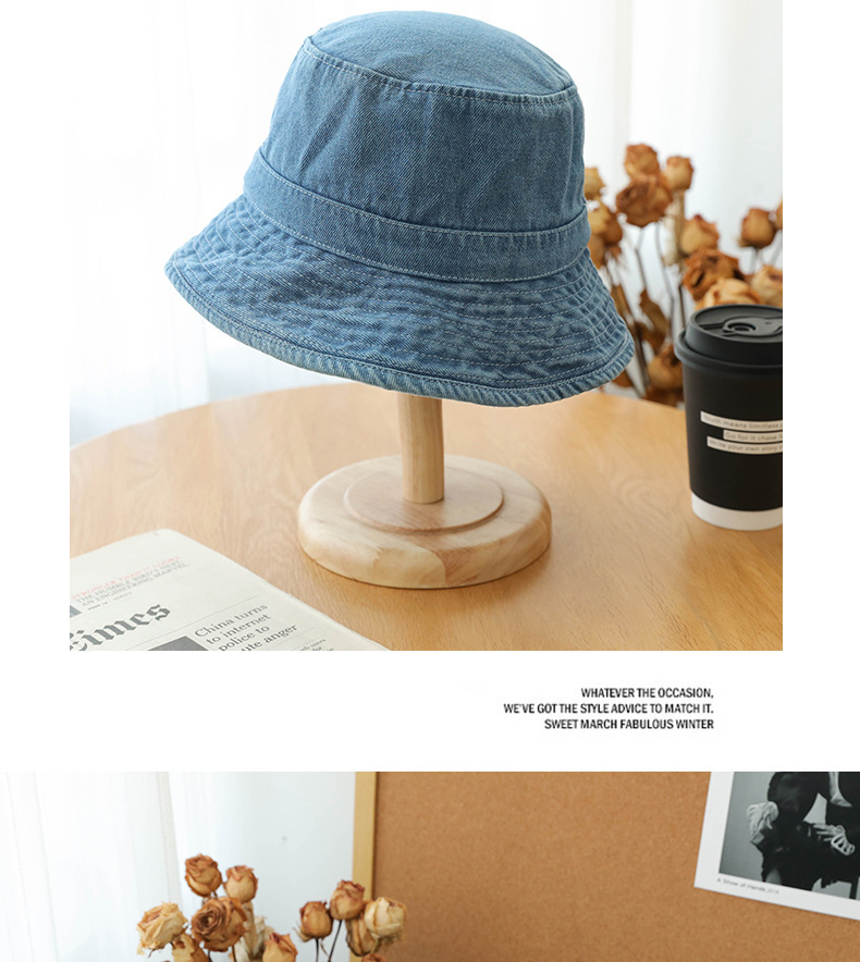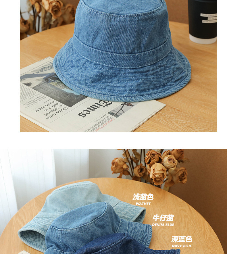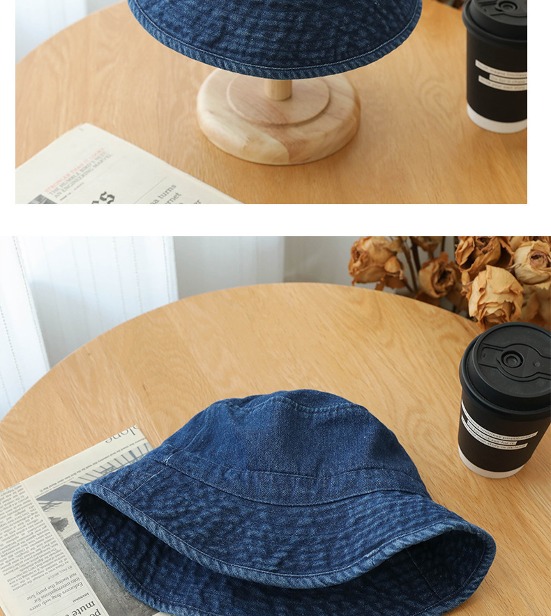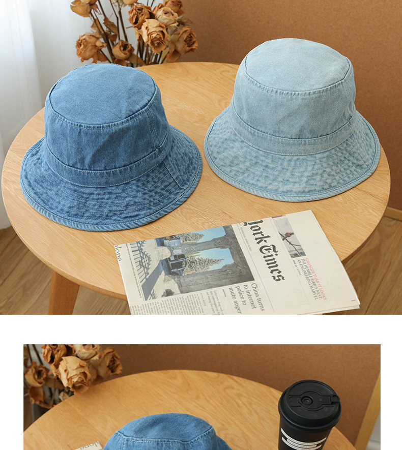한국 데님 어부 모자 남자 빅 브림, 얼굴 작은 소녀의 빈 얼굴 덮은 분지 모자 한국 올 매치 커플 모자스토어 가기