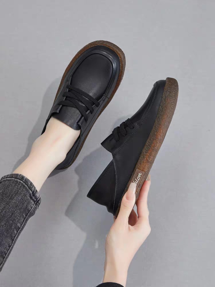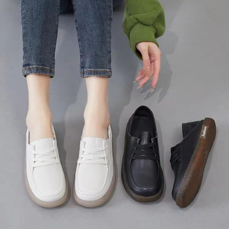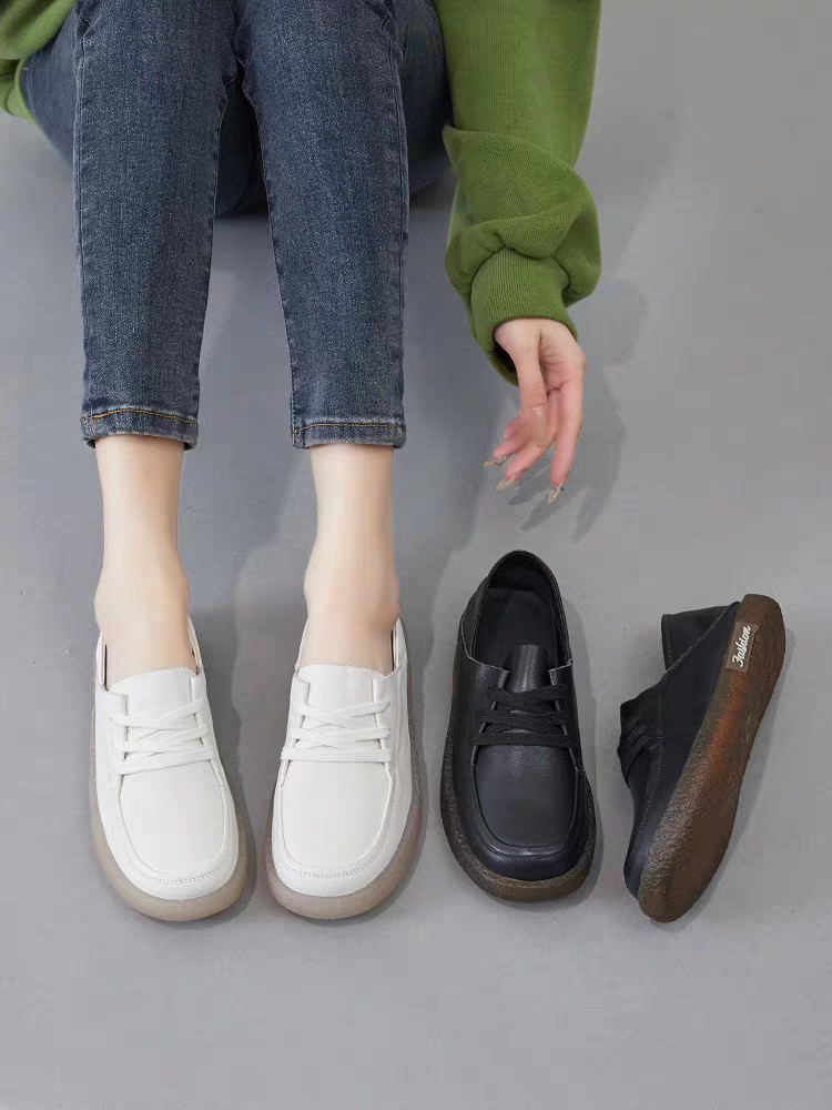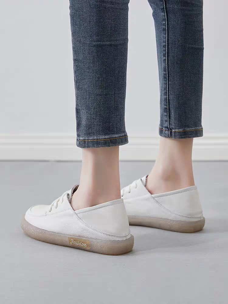 Cowhide Shallow Mouth 2025 새로운 여름 흰색 신발 여성 서양식 캐주얼 올 매치 여성 신발 플랫 스니커즈 싱글 레이어 신발스토어 가기