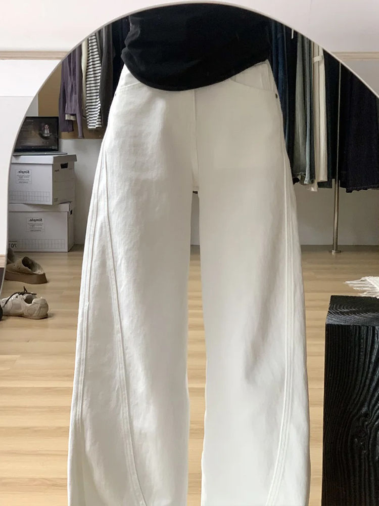 화이트 하이 허리 와이드 레그 청바지 여성 2025 년 봄과 여름 새로운 루즈 딥 스트레이트 스티칭 슬리밍 시미 터 바지