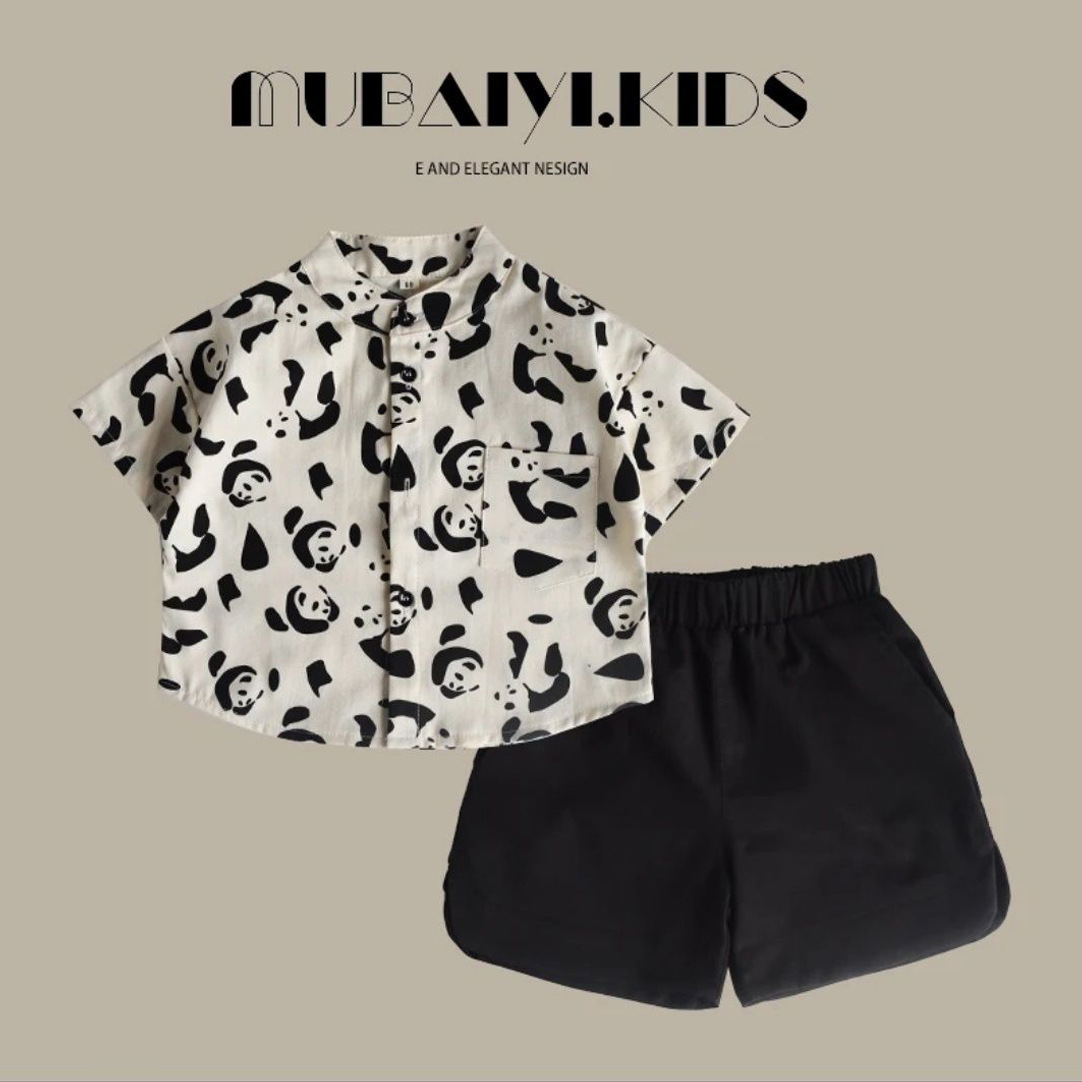 소년 여름 새로운 셔츠 반바지 셔츠 캐주얼 느슨한 편안한 투피스 세트 유치원 패션의 세대