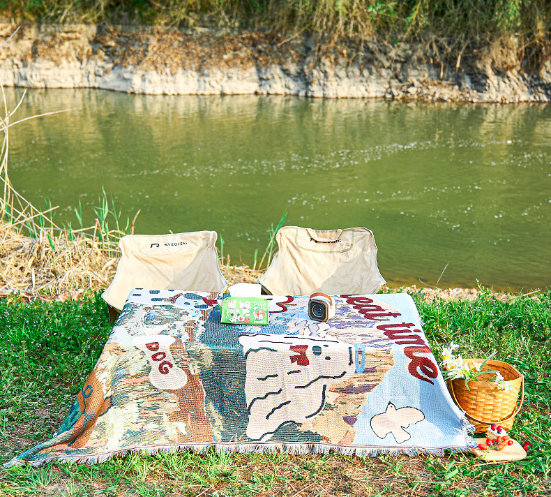 Ins Boho 스타일 피크닉 매트 캠핑 식탁보 야외 잔디 방습 바닥 매트 텐트 장비 담요 두껍게스토어 가기