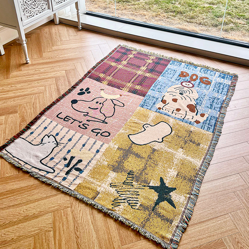 • 모든 면에 프린지가 있는 GT 패치워크 강아지