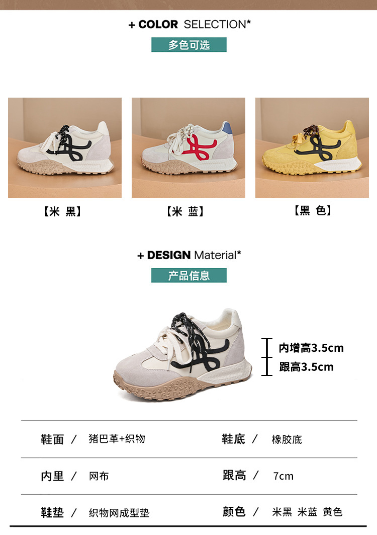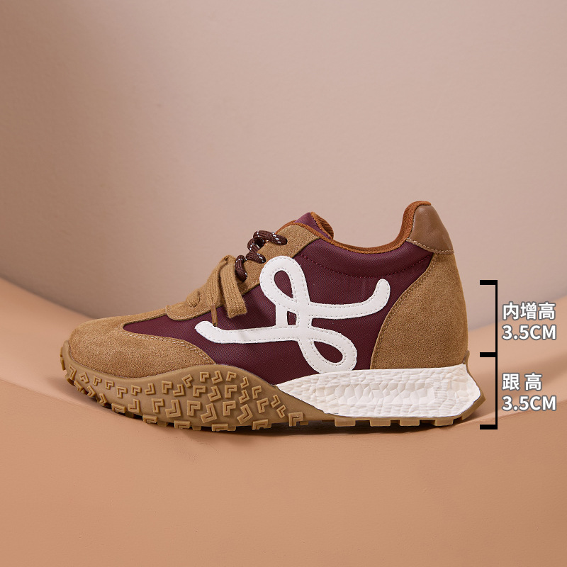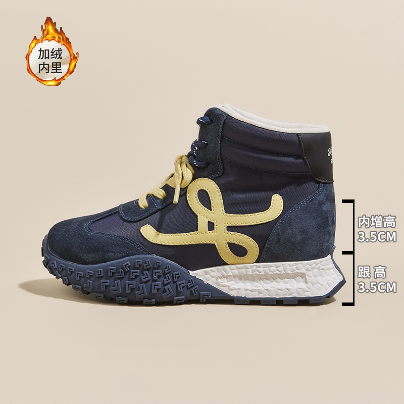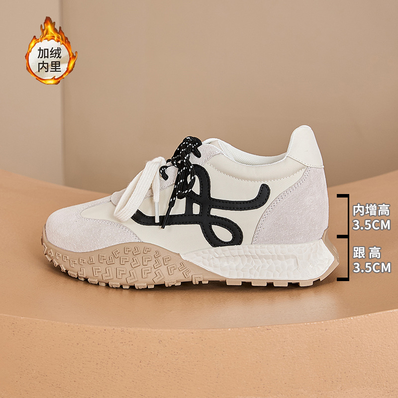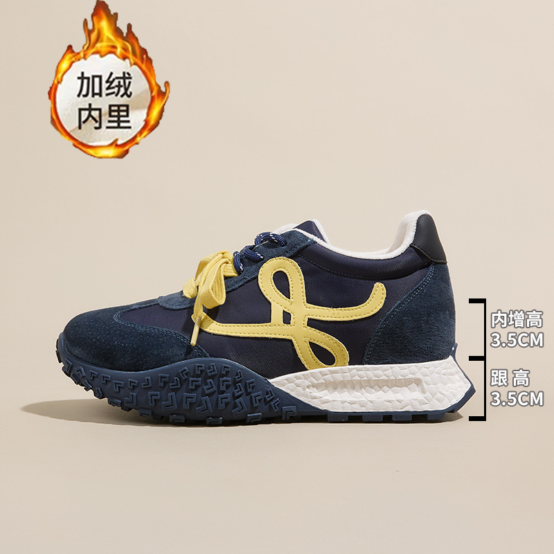 키가 작은 여성을 위한 7cm 키높이 두꺼운 밑창의 레트로 스타일 가을 겨울용 운동화, 다용도 플러스 벨벳 안감의 캐주얼 아가니 신발
