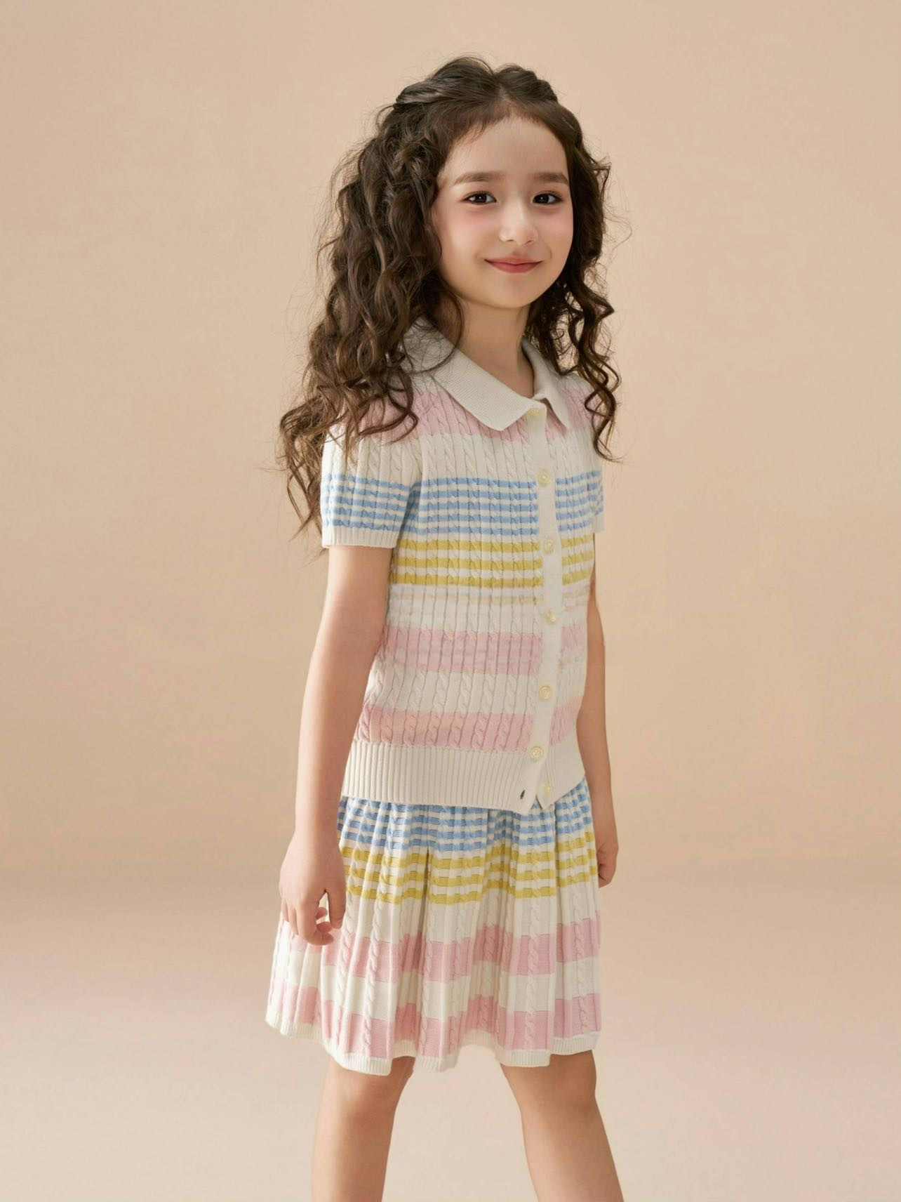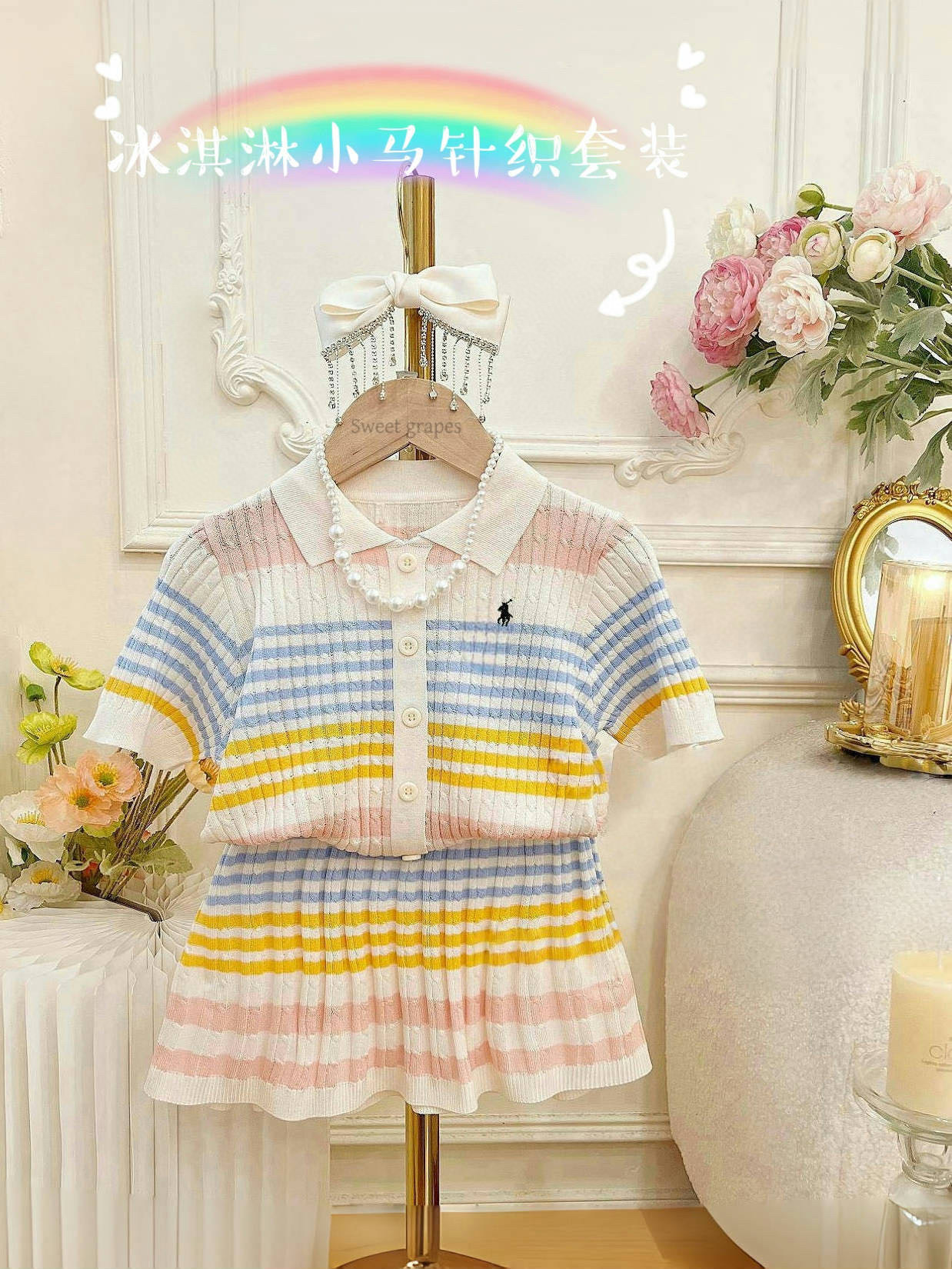 아이스크림 대학 스타일 포니 니트 세트 여름 외국 스타일 소녀의 레인보우 탑 스커트 캐주얼 투피스 세트스토어 가기