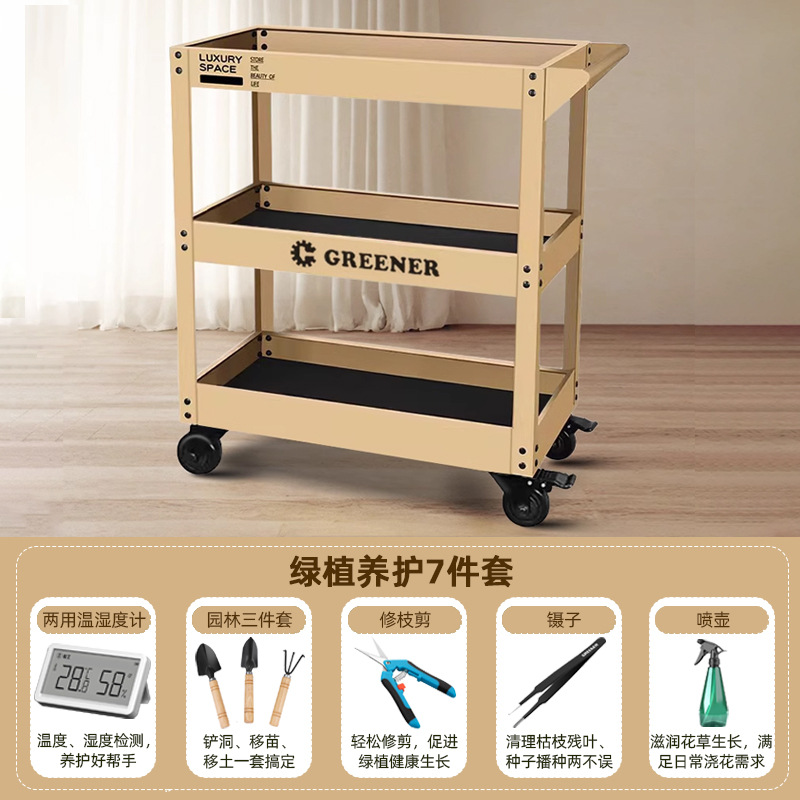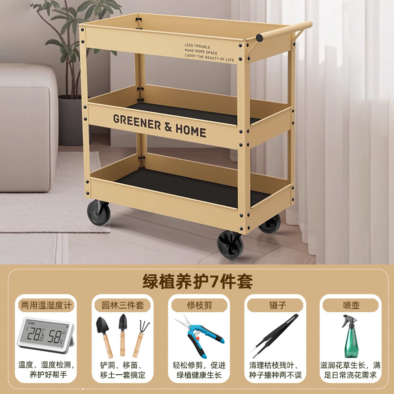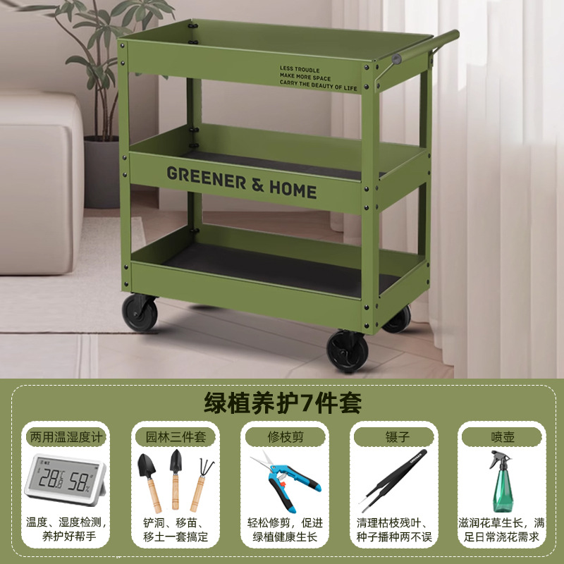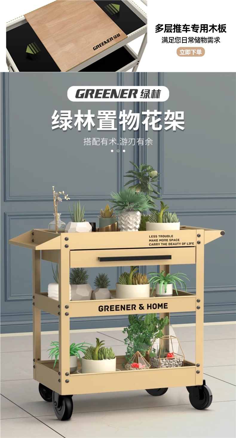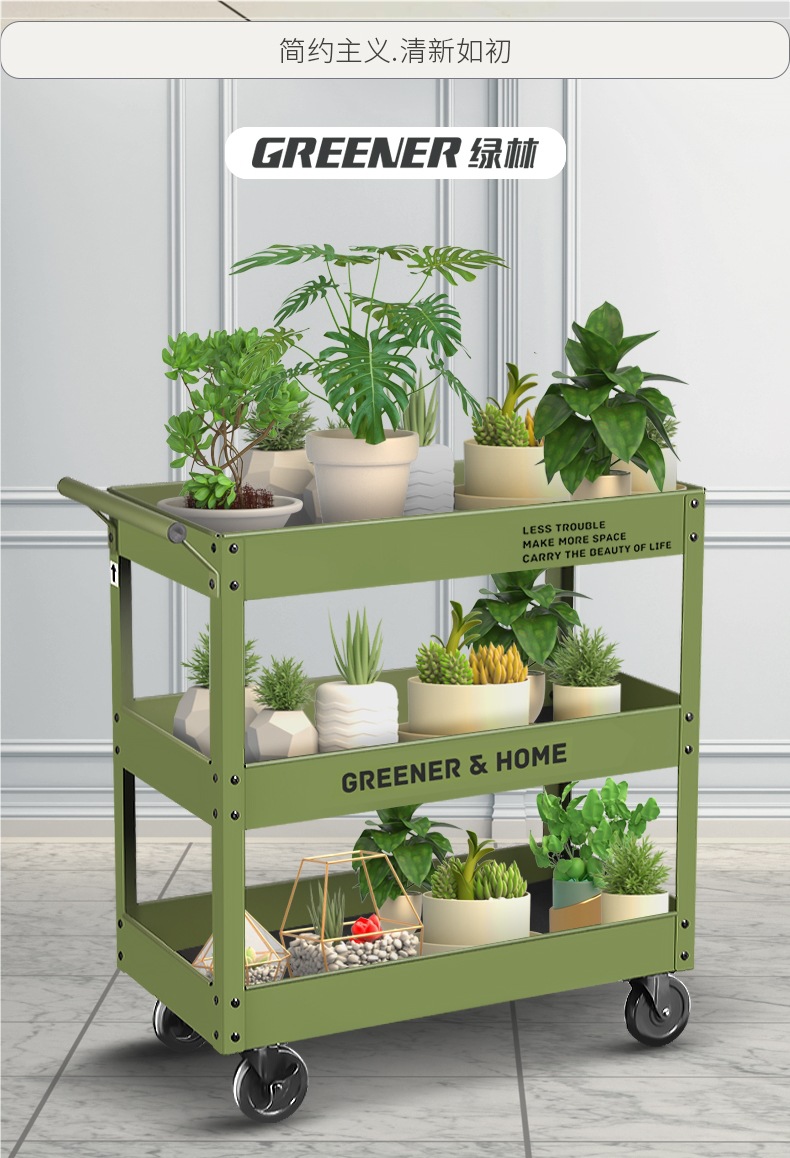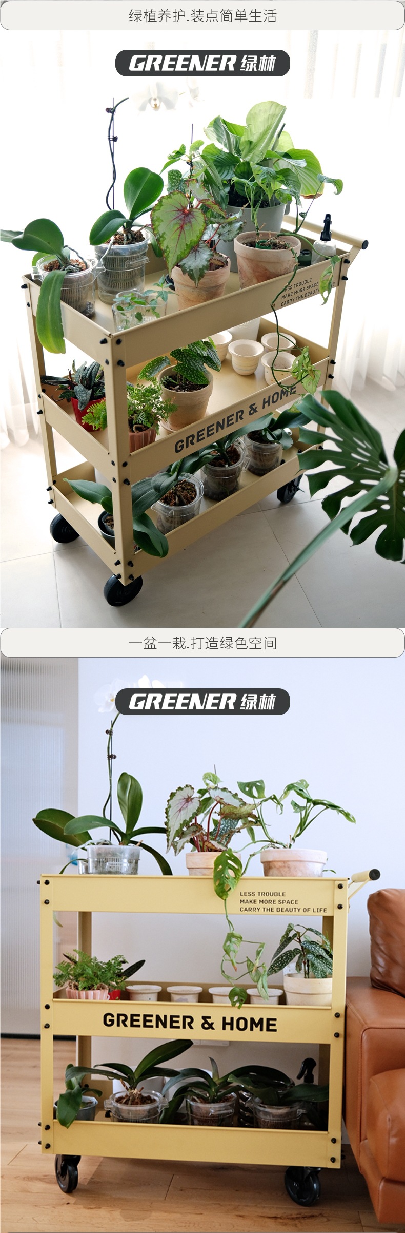 GREENER 트롤리 저장 랙 녹색 식물 꽃 랙 거실 이동식 발코니 어항 식물 랙 꽃 냄비 랙
