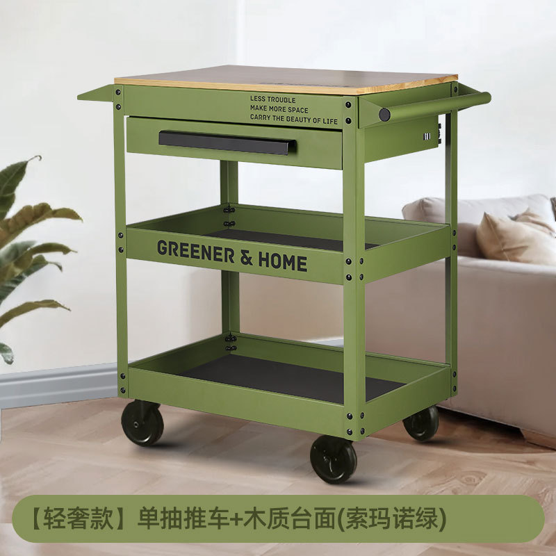 • [럭셔리모델] 싱글 인출식 INS 카트 + 원목 조리대 (소마노 그린)