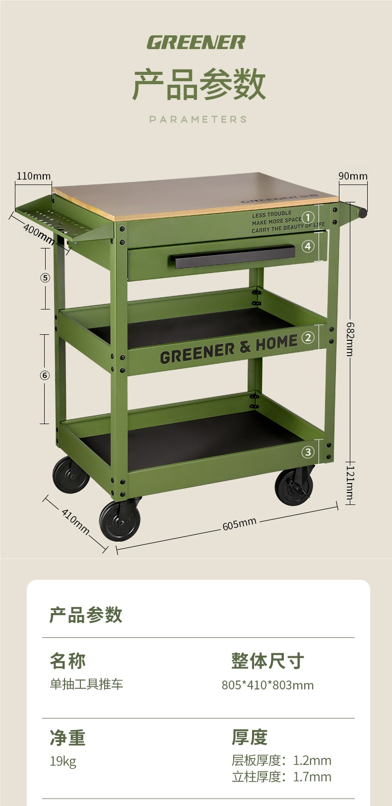 • 심플 카트(소마노 그린) + 원목 조리대*1