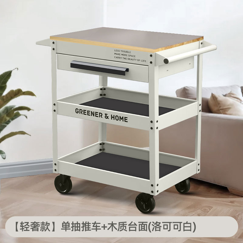 • [럭셔리모델] 싱글인출식 INS 카트 + 원목 조리대 (로코코 화이트)