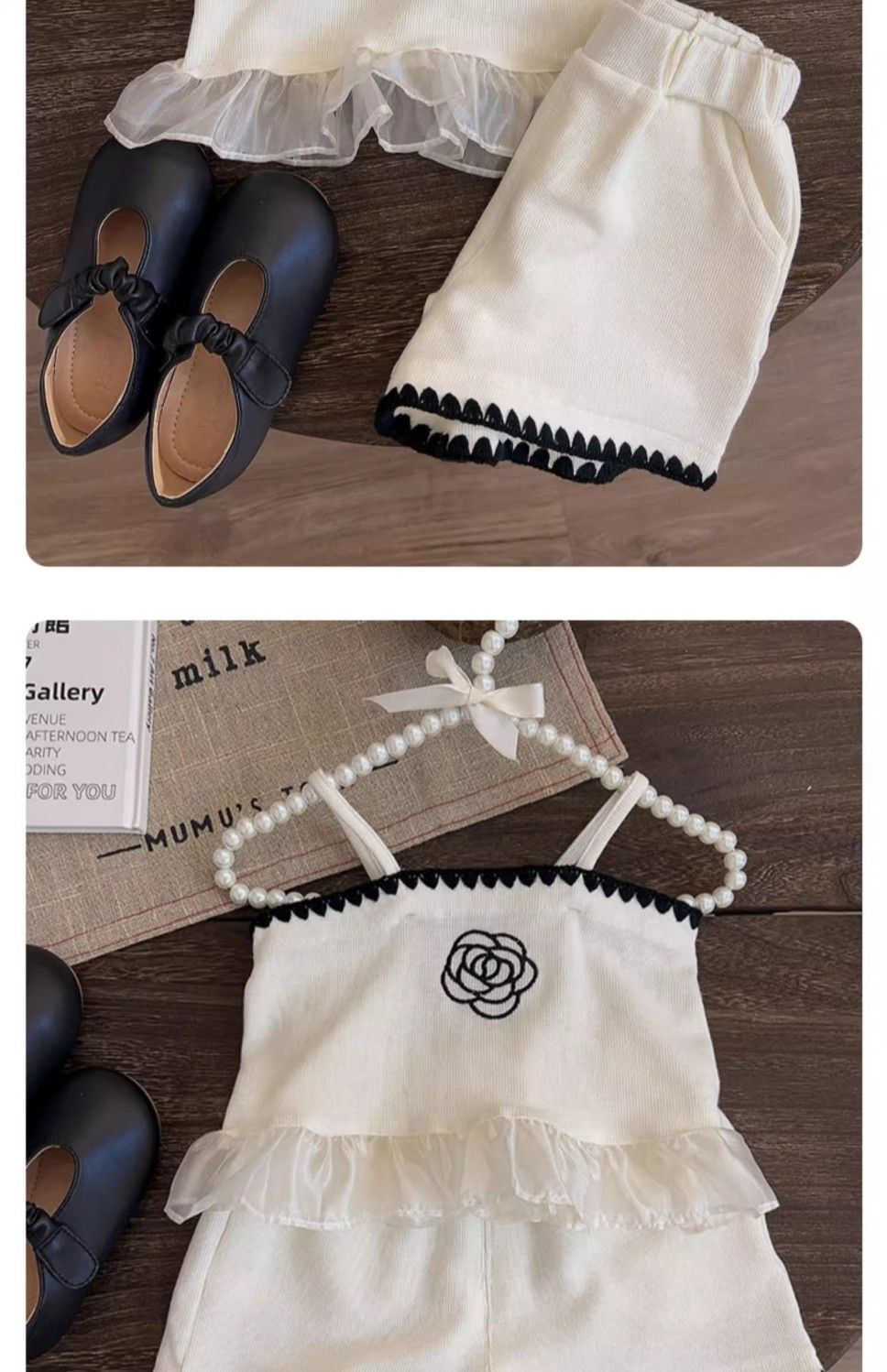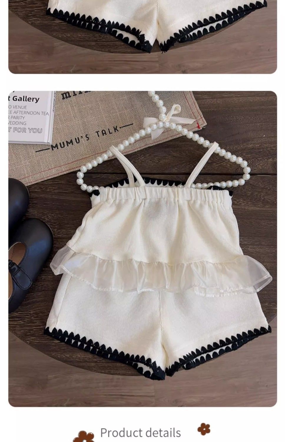 여아 서스펜더 슈트 여름 신작 아동 패션 아동 반바지 투피스 세트 아기 소녀 여름 옷