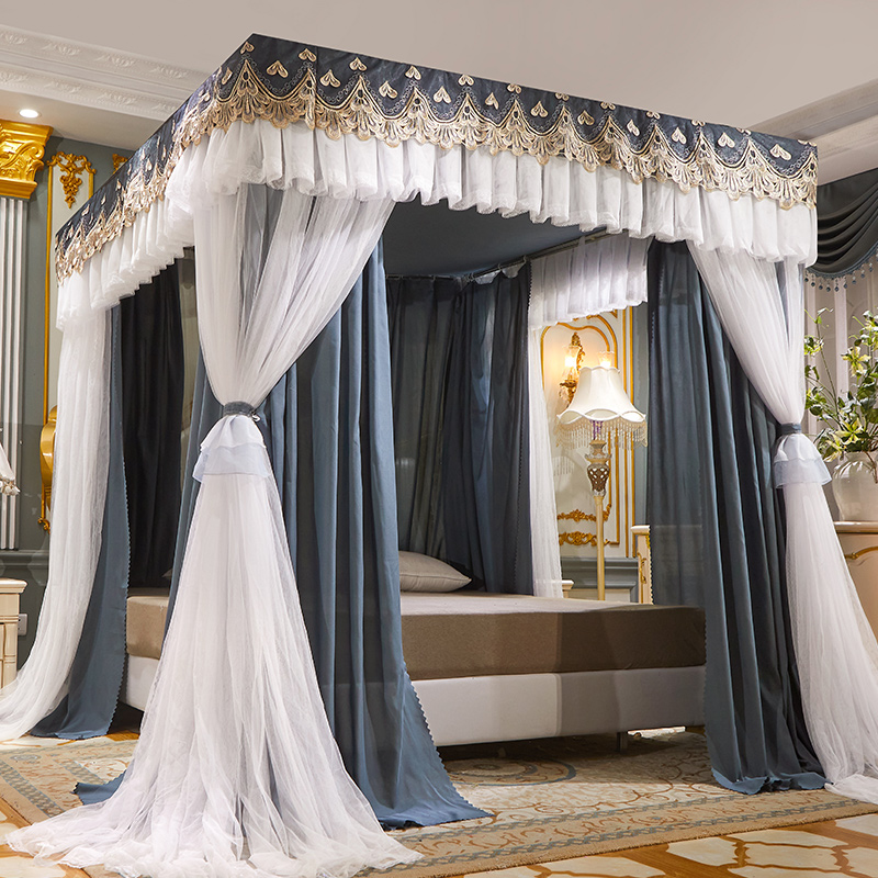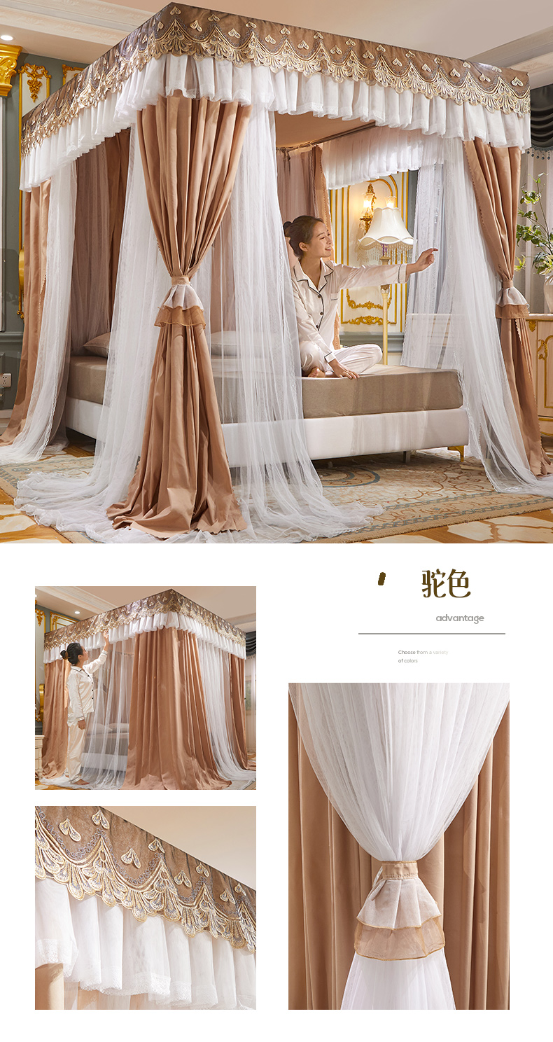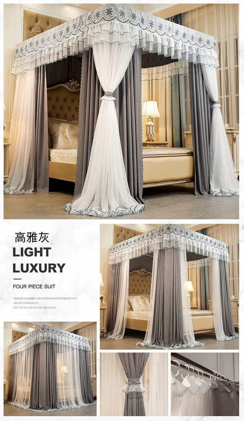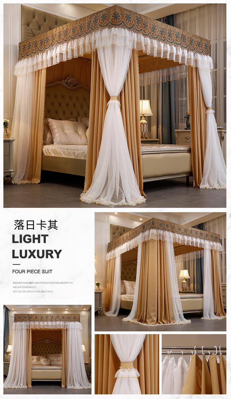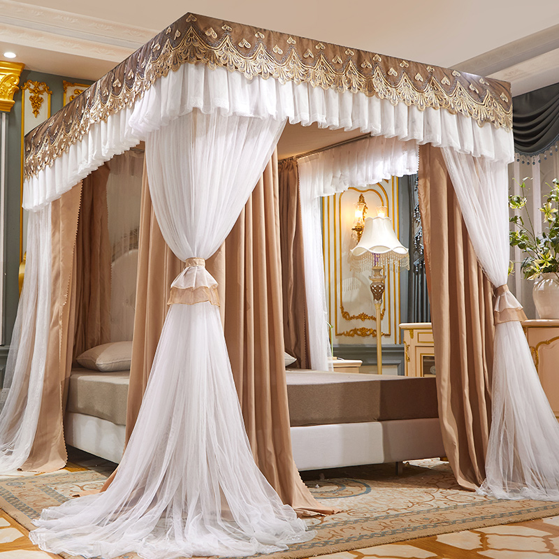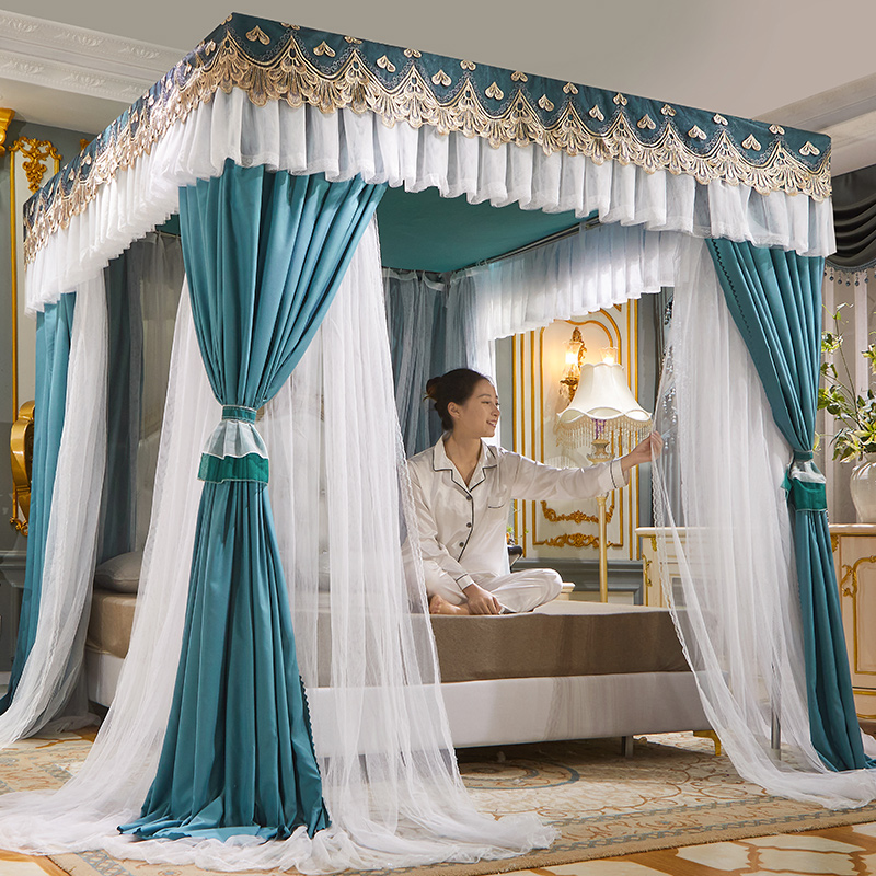 럭셔리 유럽 스타일 더블 로드 더블 레이어 빛 차단 침대 커튼 모기장 침대 커튼 통합 홈 방풍 1.68m 공주 스타일스토어 가기