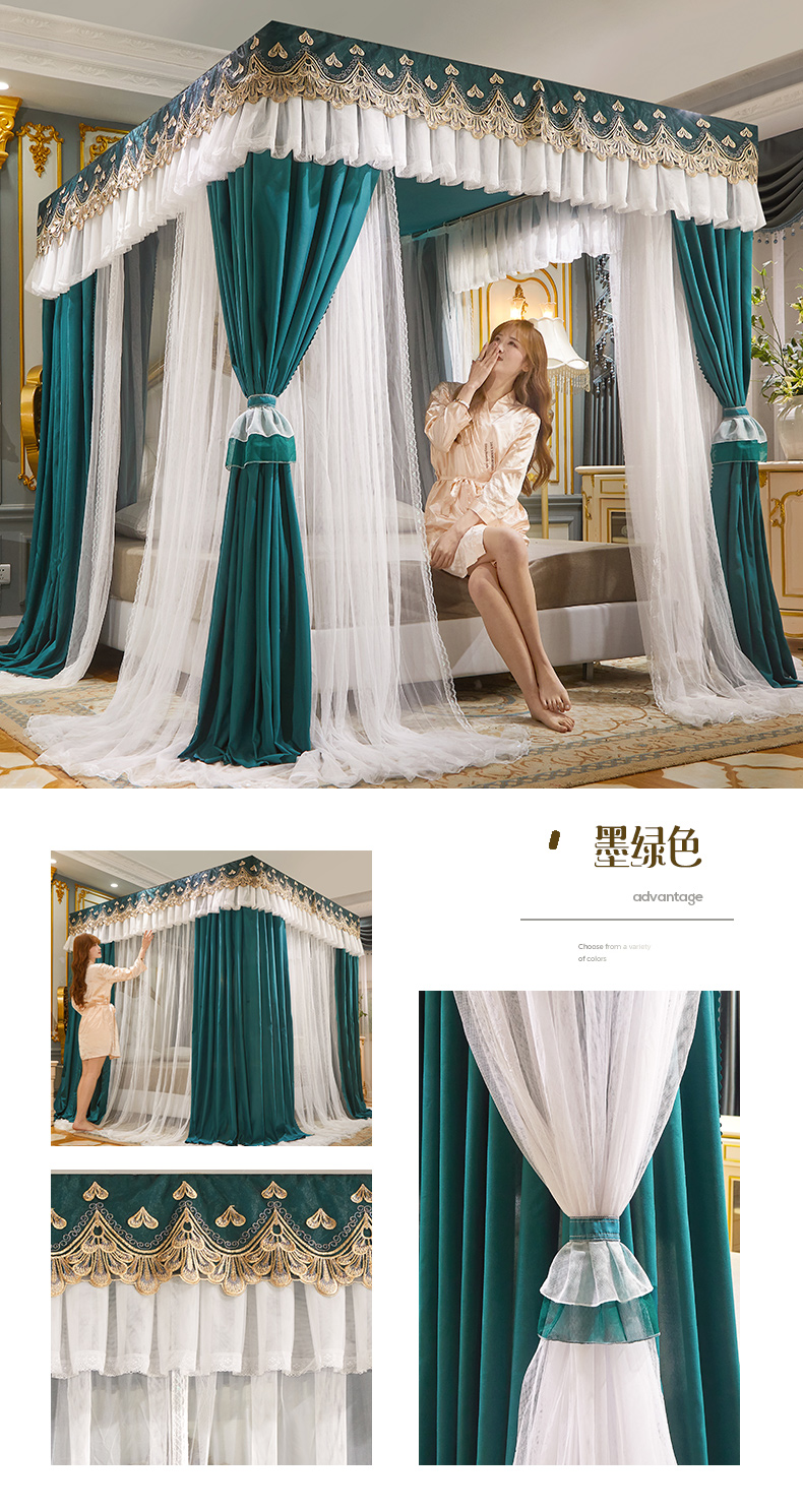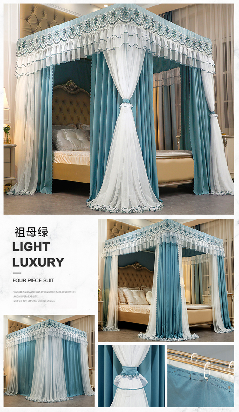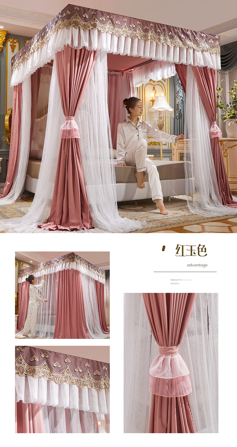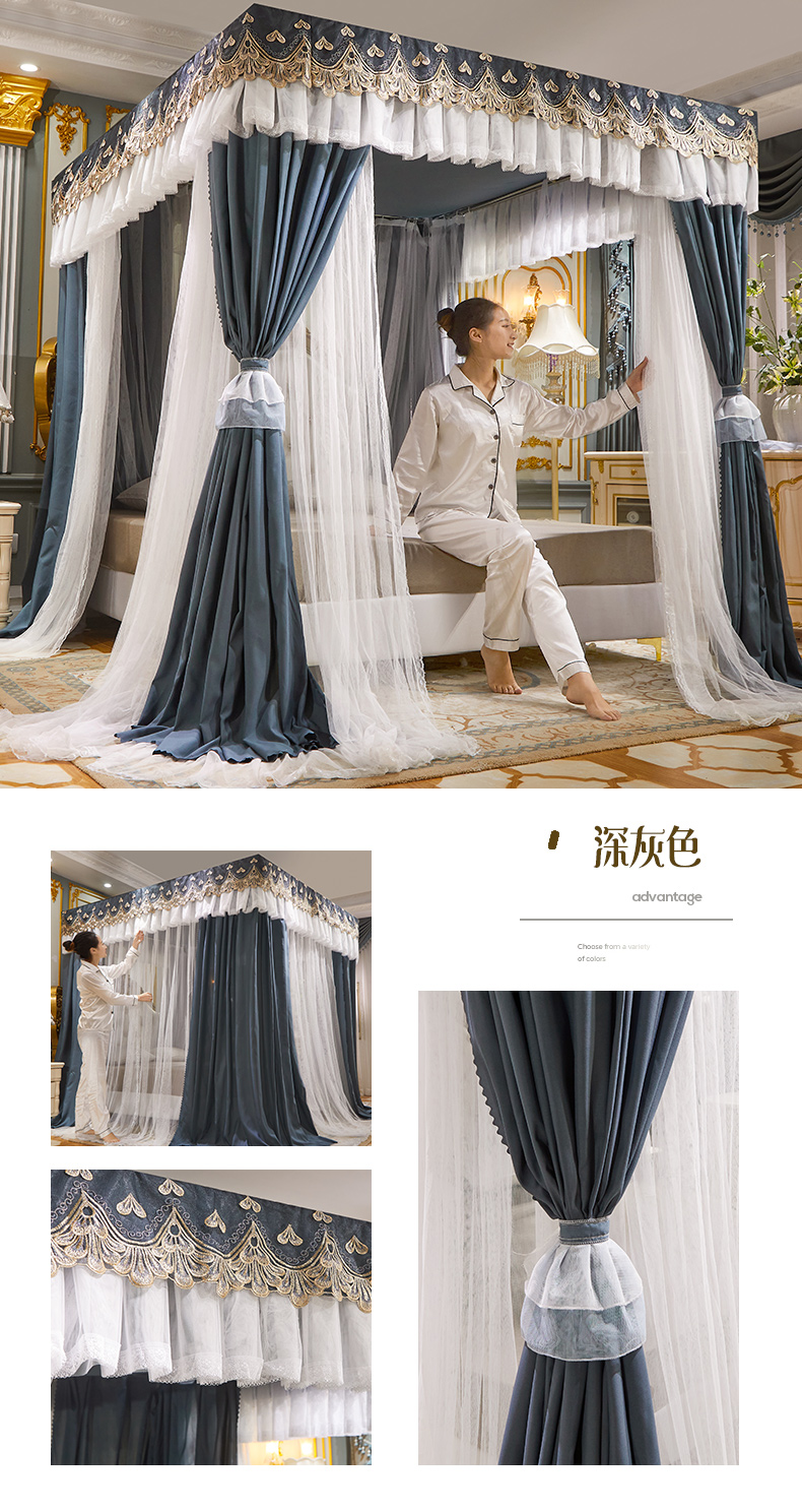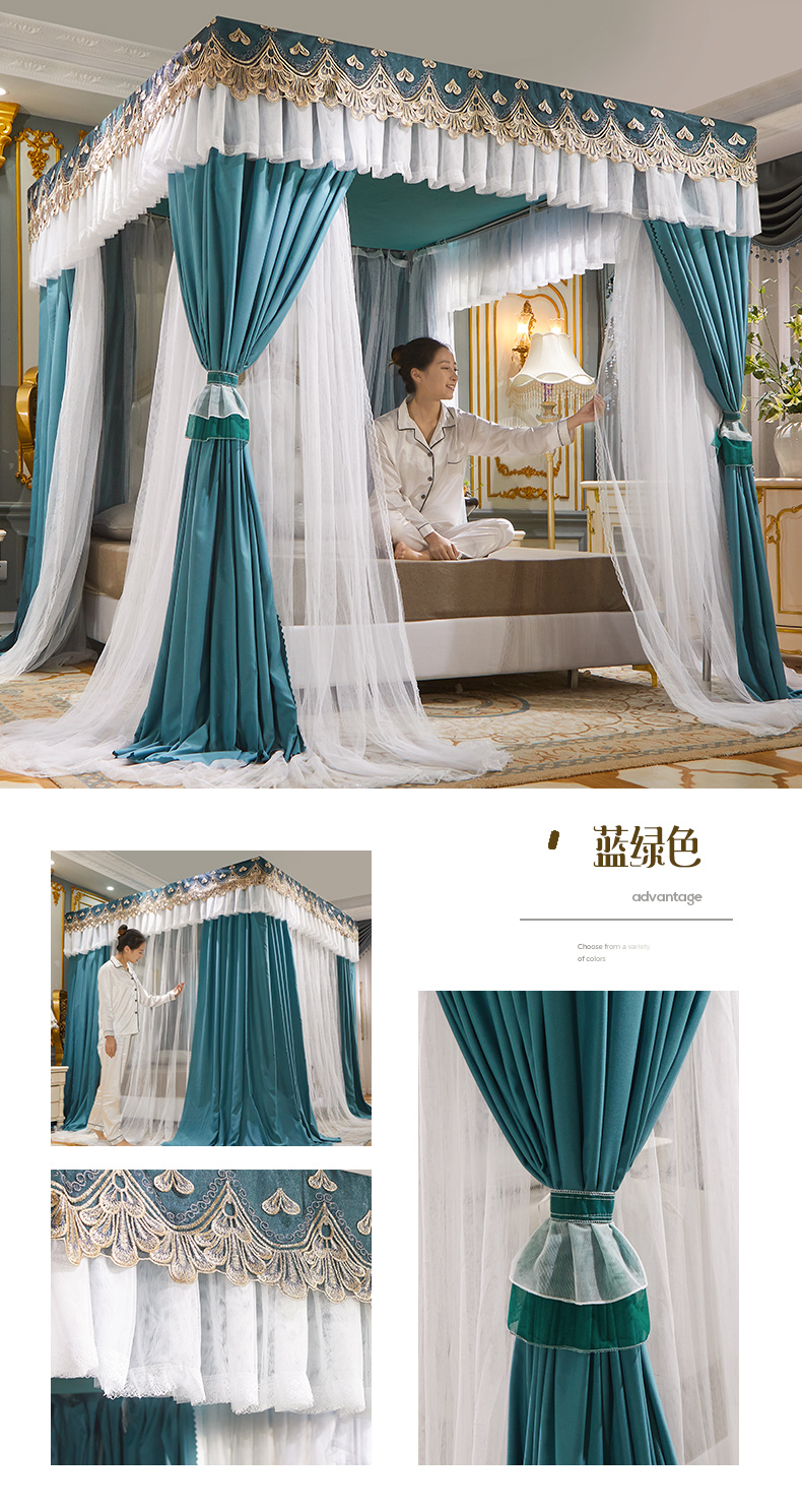 럭셔리 유럽 스타일 더블 로드 더블 레이어 빛 차단 침대 커튼 모기장 침대 커튼 통합 홈 방풍 1.68m 공주 스타일스토어 가기