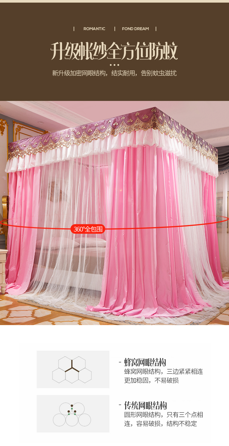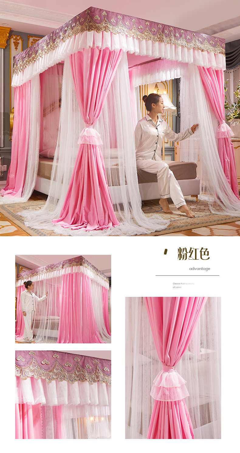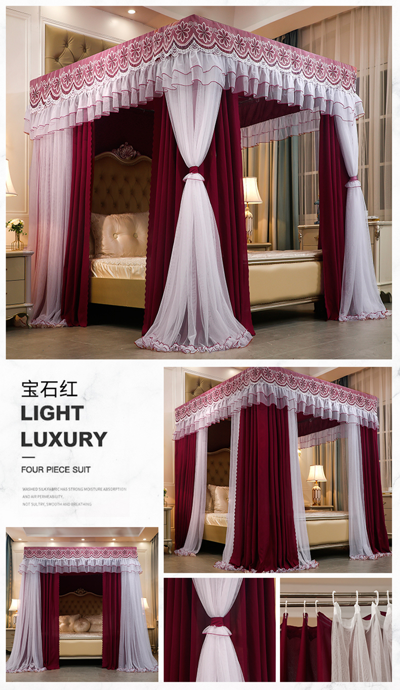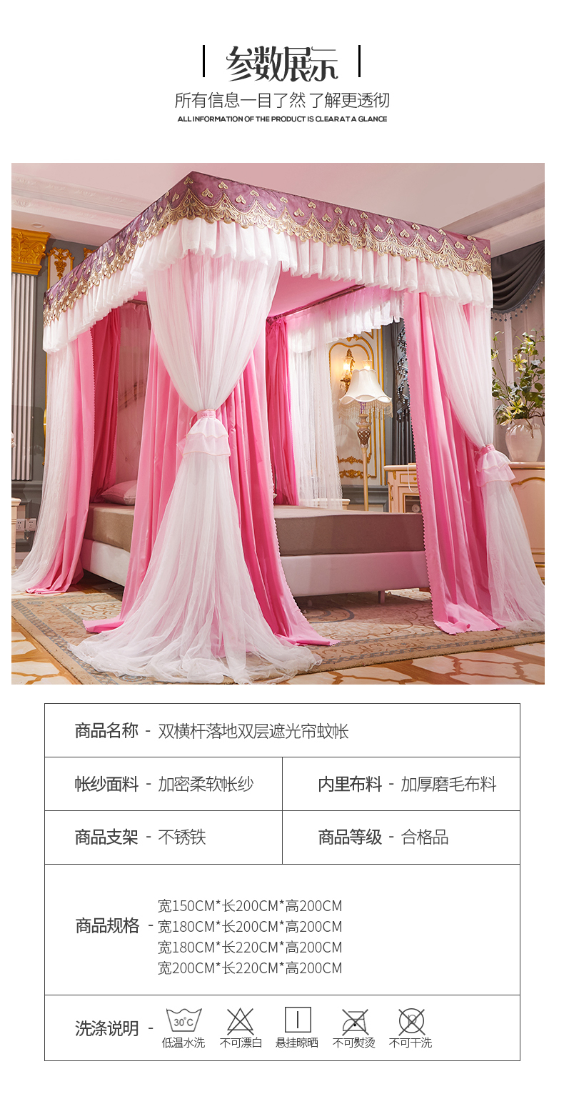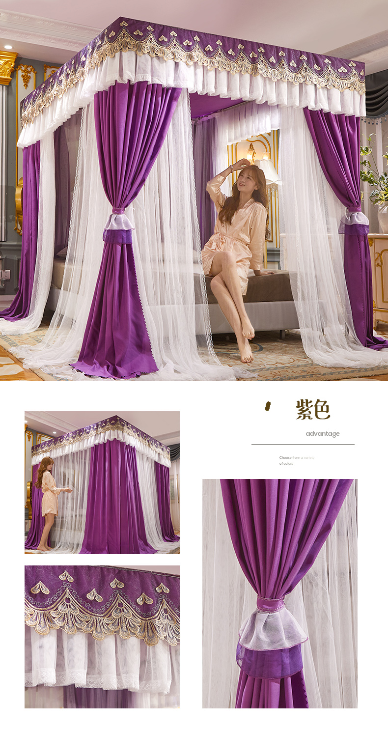 럭셔리 유럽 스타일 더블 로드 더블 레이어 빛 차단 침대 커튼 모기장 침대 커튼 통합 홈 방풍 1.68m 공주 스타일스토어 가기