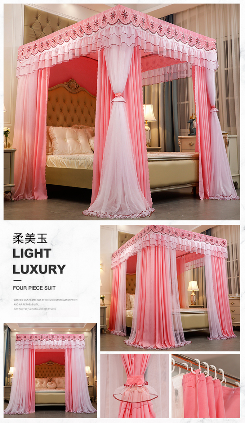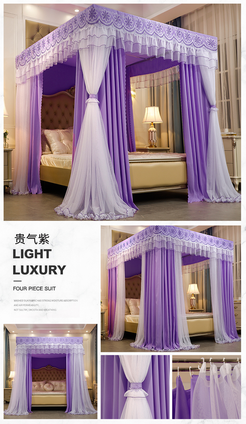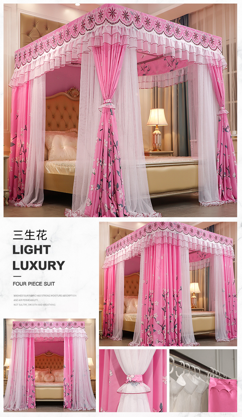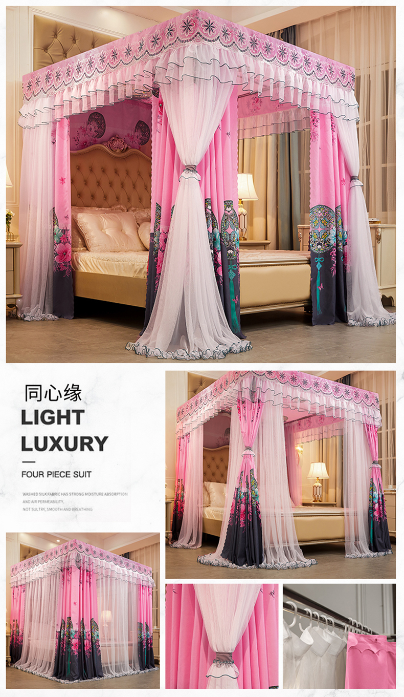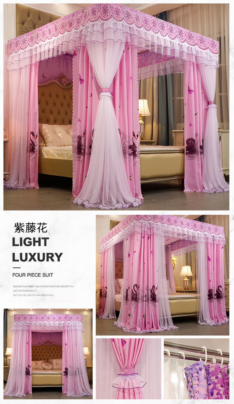 럭셔리 유럽 스타일 더블 로드 더블 레이어 빛 차단 침대 커튼 모기장 침대 커튼 통합 홈 방풍 1.68m 공주 스타일스토어 가기