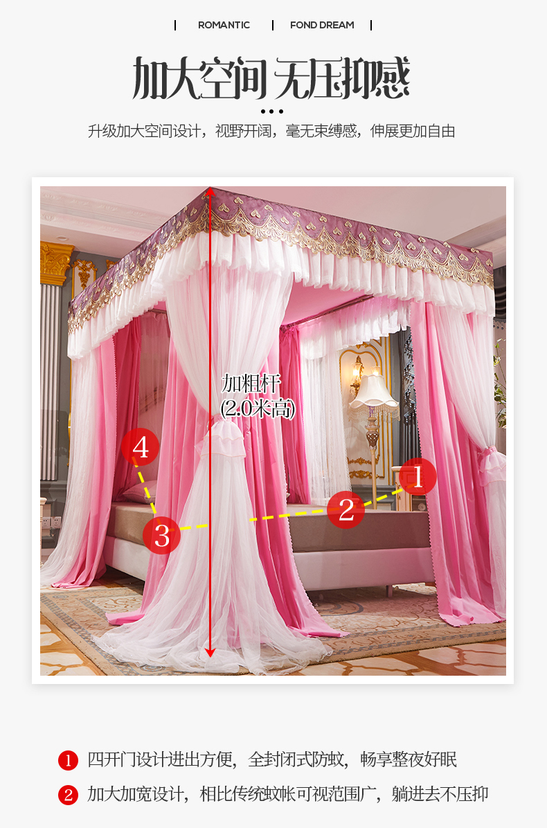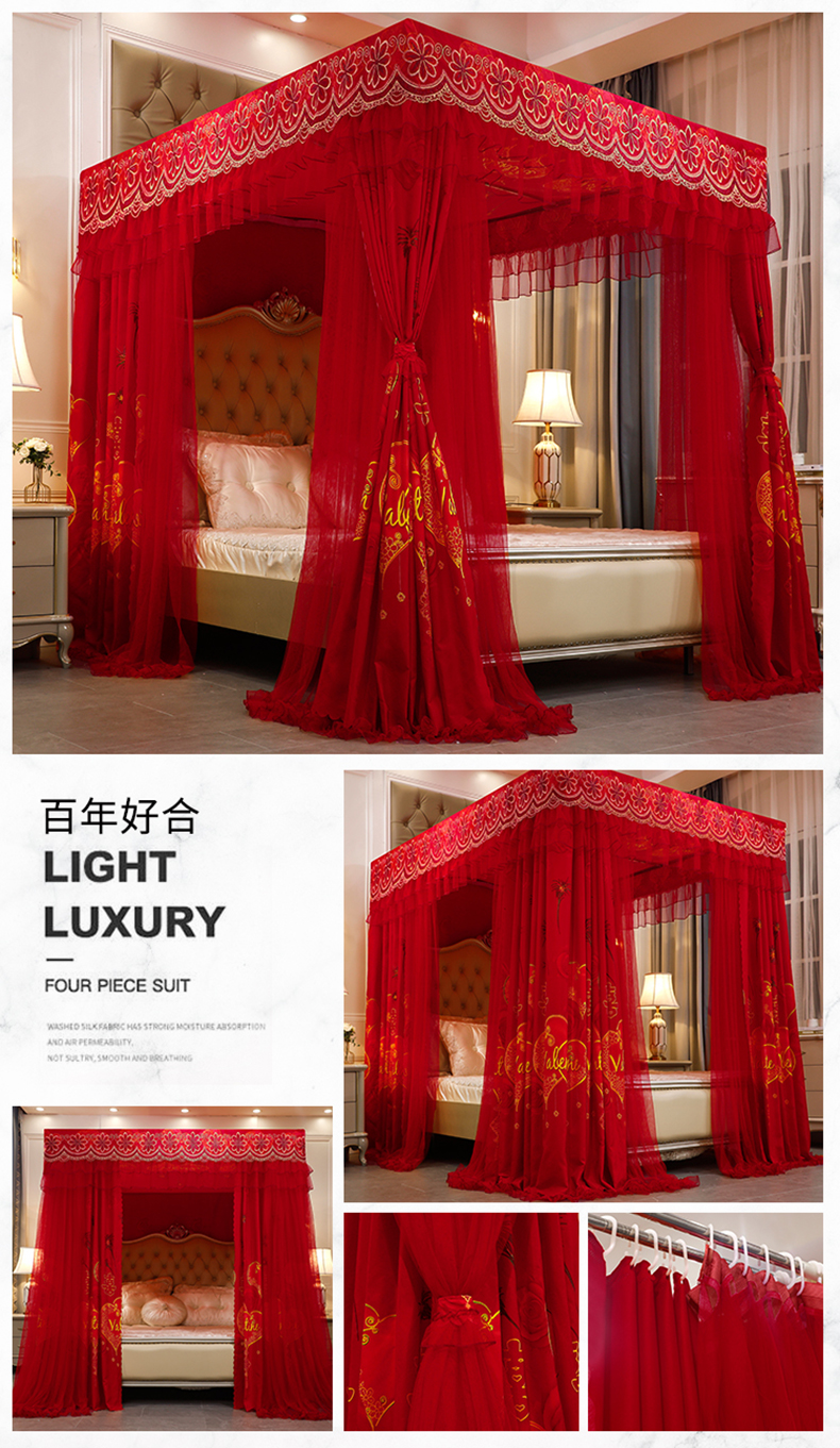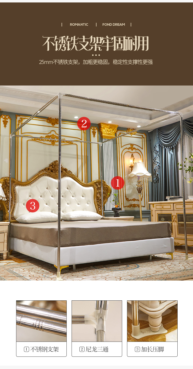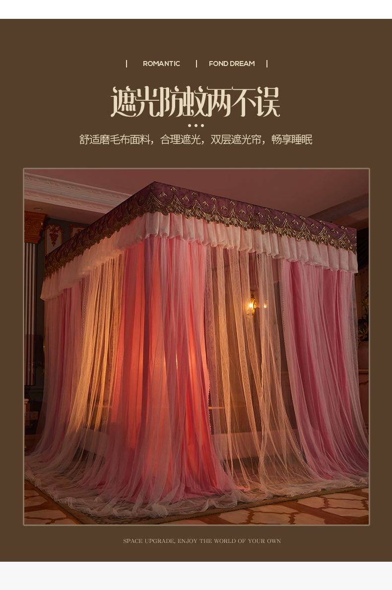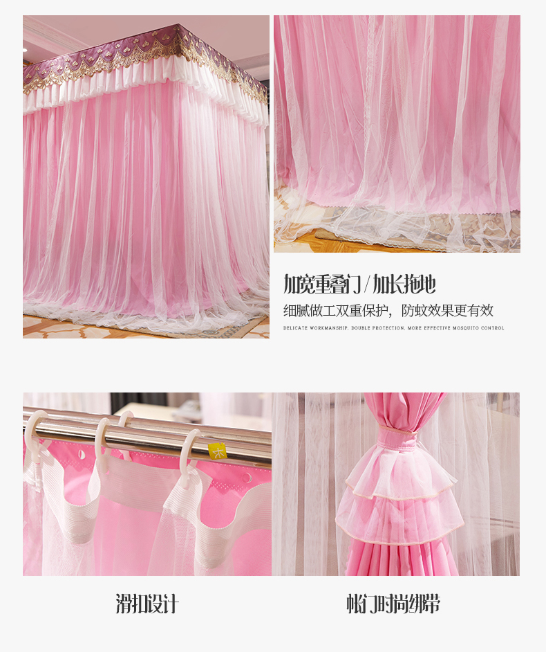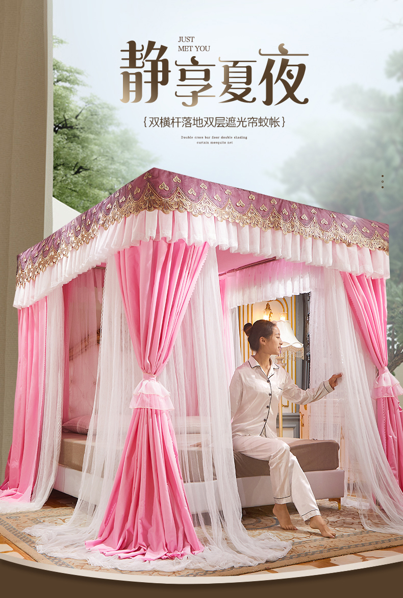 럭셔리 유럽 스타일 더블 로드 더블 레이어 빛 차단 침대 커튼 모기장 침대 커튼 통합 홈 방풍 1.68m 공주 스타일스토어 가기