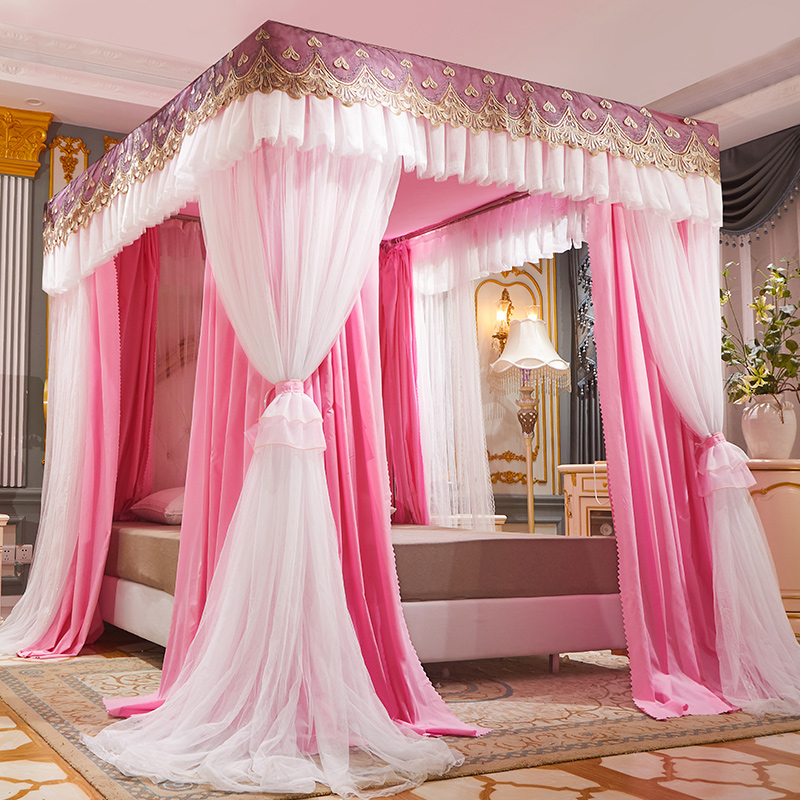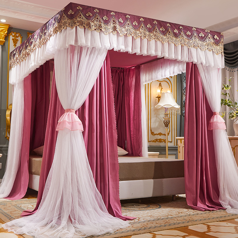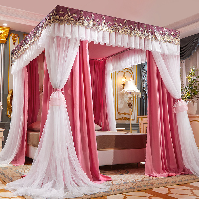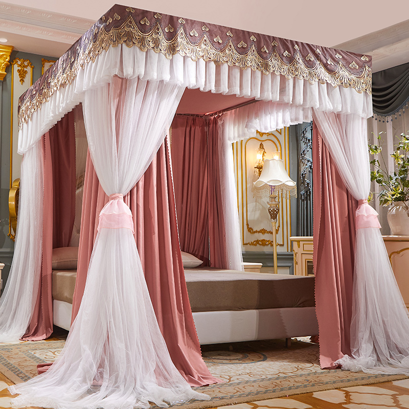 럭셔리 유럽 스타일 더블 로드 더블 레이어 빛 차단 침대 커튼 모기장 침대 커튼 통합 홈 방풍 1.68m 공주 스타일