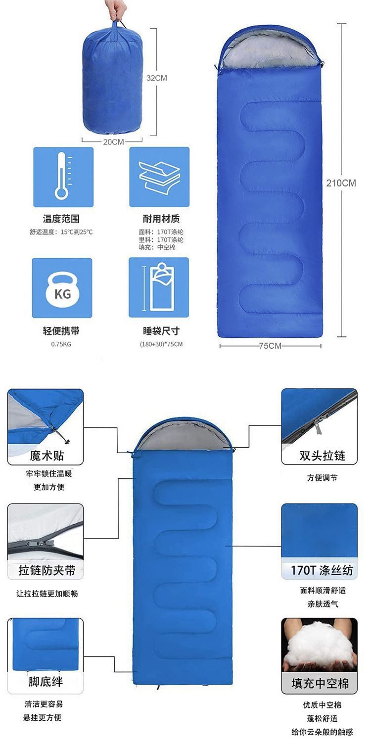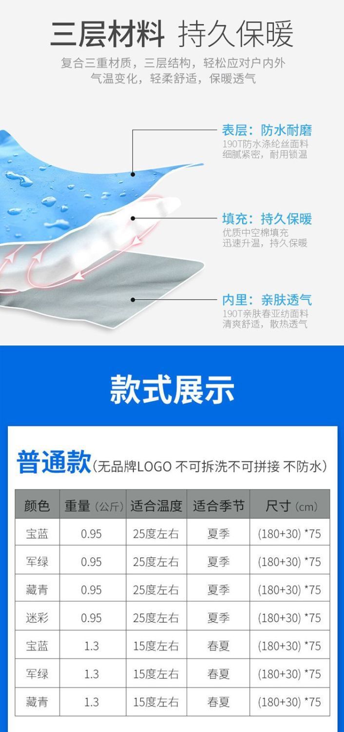 성인용 두껍고 따뜻한 침낭, 야외 캠핑, 휴대용 여행 점심 시간, 실내 먼지 방지, 1인용, 올 시즌 공장스토어 가기