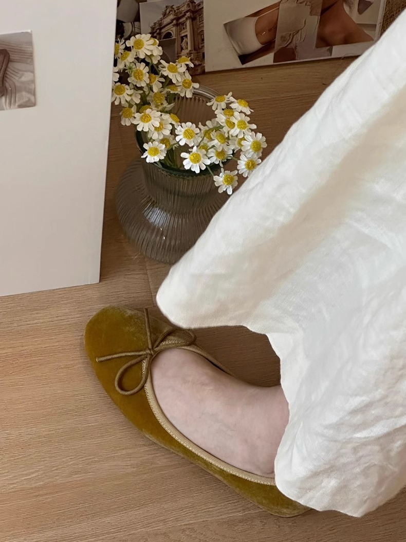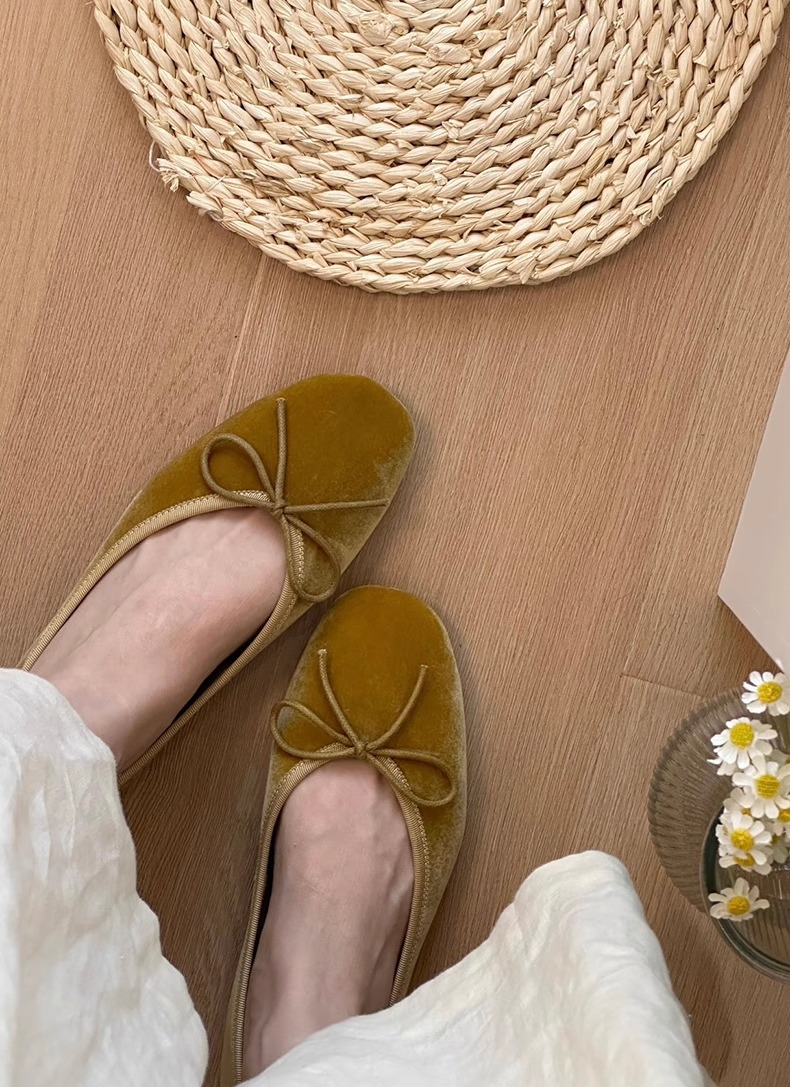 여성용 프렌치 라운드 토 발레 슈즈, 하이엔드 골드 벨벳 플랫 슈즈, 할머니 슈즈, 부드러운 밑창 캐주얼 슈즈