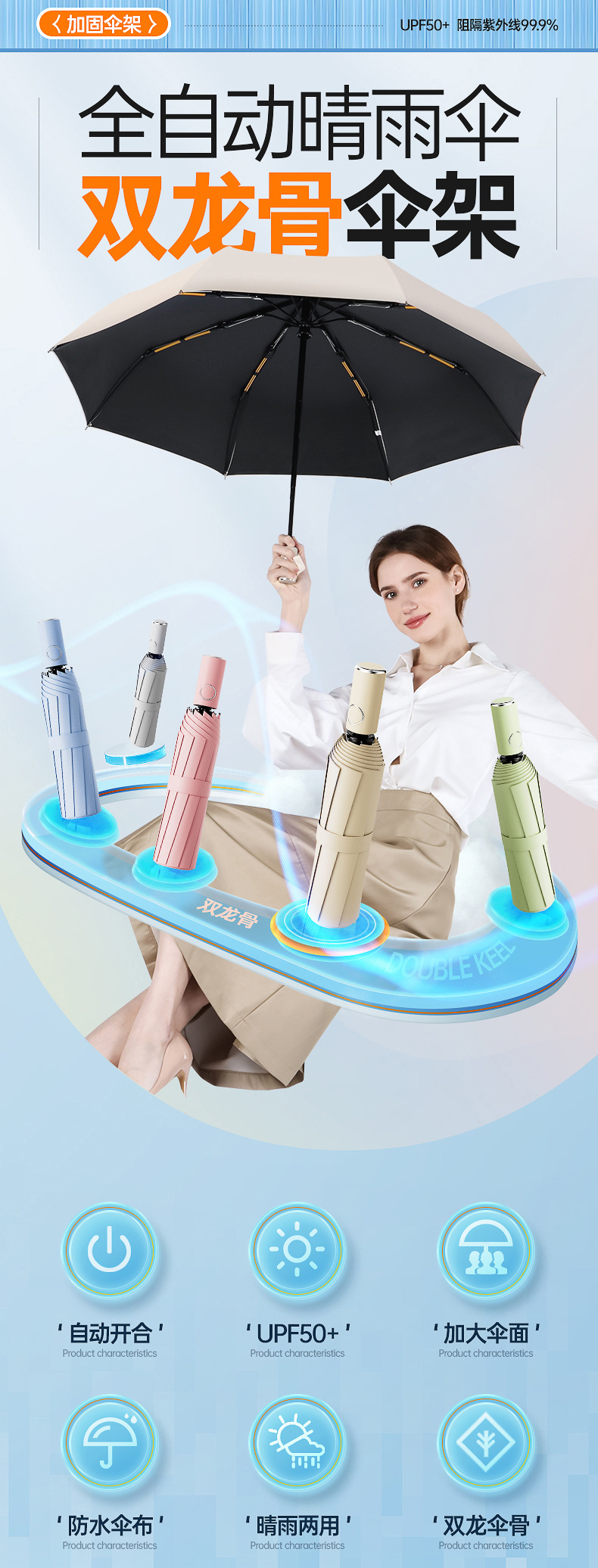 자동 우산 남성과 여성의 접는 태양 우산 안티-자외선 초대형 강화 이중 용도 선 스크린 두껍게 썬 그늘 우산