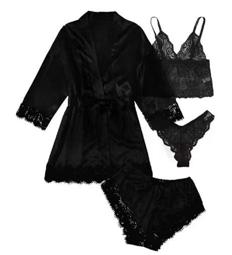 새로운 유럽과 미국의 여성 홈 의류 파자마 4 피스 레이스 새틴 멜빵 여성 여름 세트 잠옷 반바지 도매스토어 가기