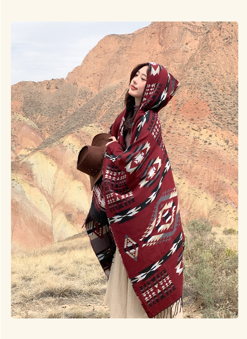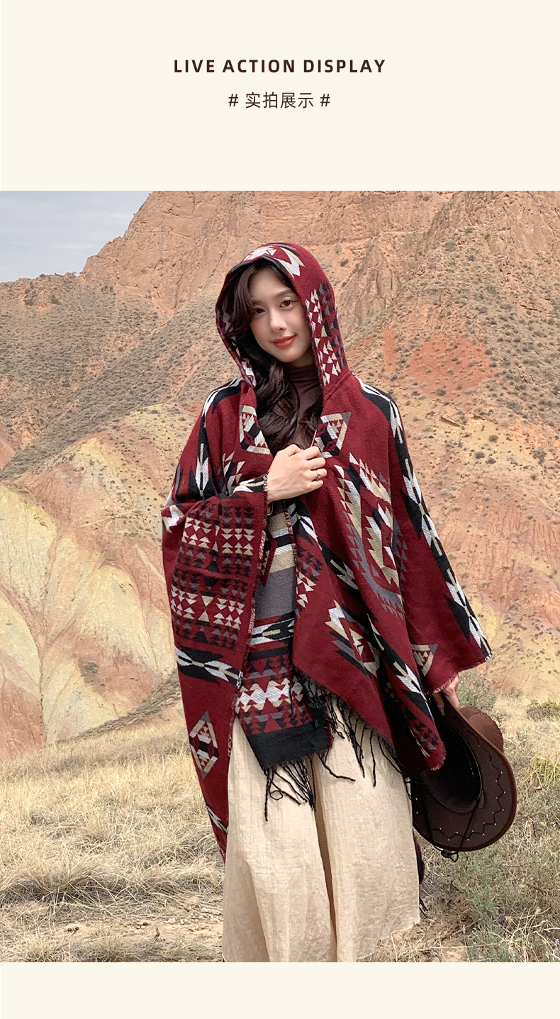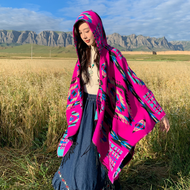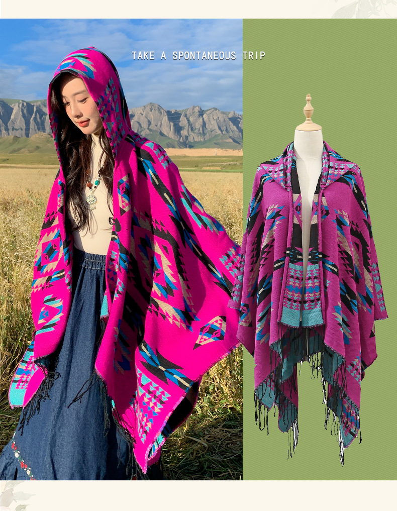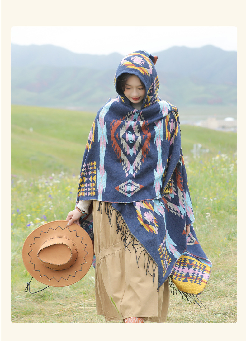 봄 캐주얼 다재다능한 맞춤형 에스닉 스타일 술 스카프 휴일 놀이 세련되고 편안한 따뜻한 후드 망토