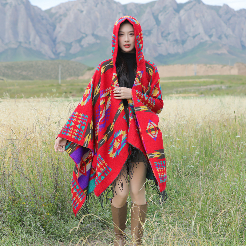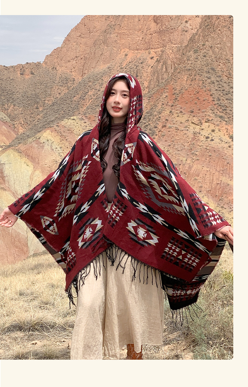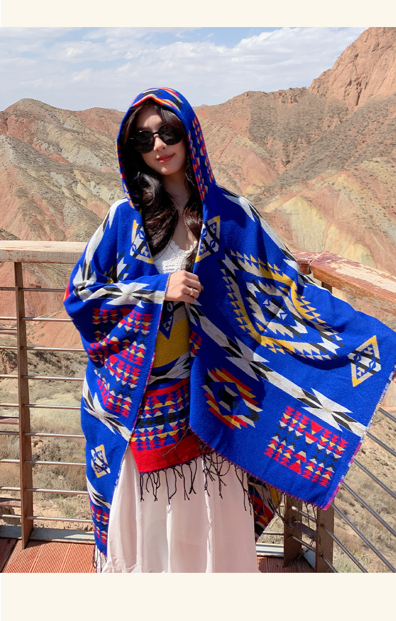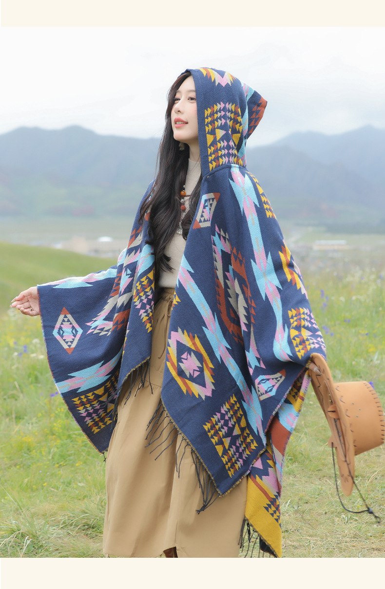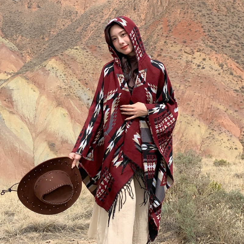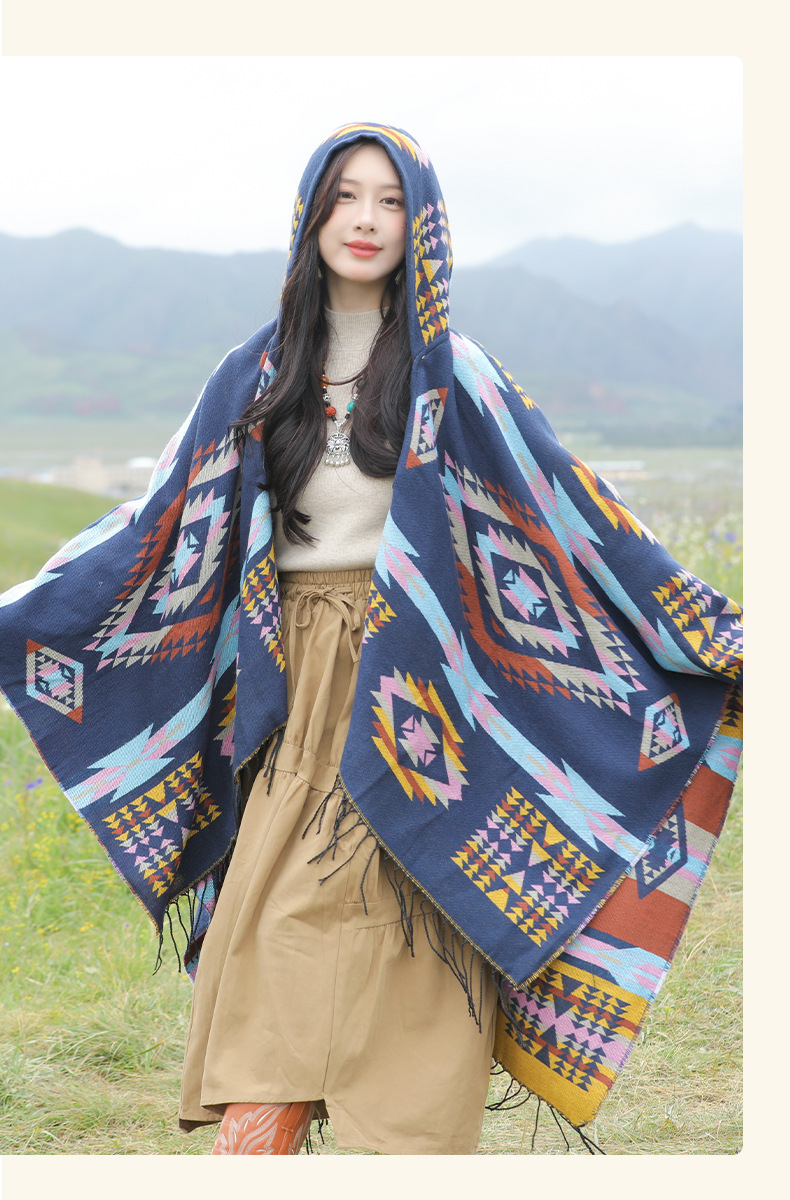 봄 캐주얼 다재다능한 맞춤형 에스닉 스타일 술 스카프 휴일 놀이 세련되고 편안한 따뜻한 후드 망토