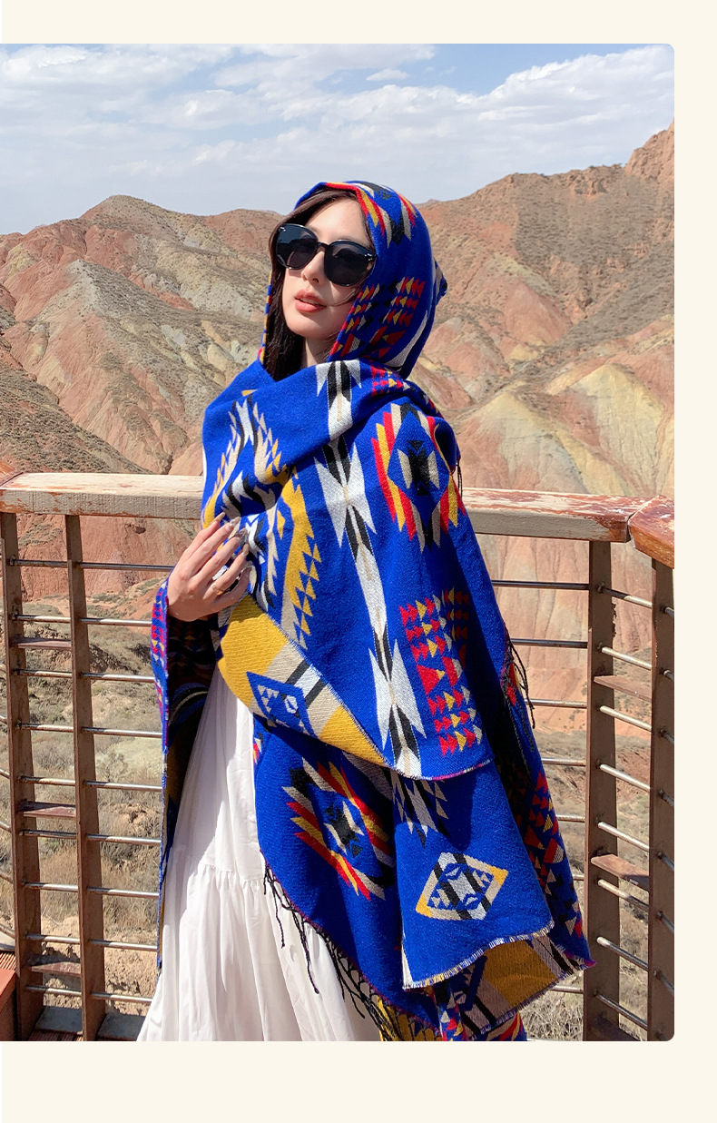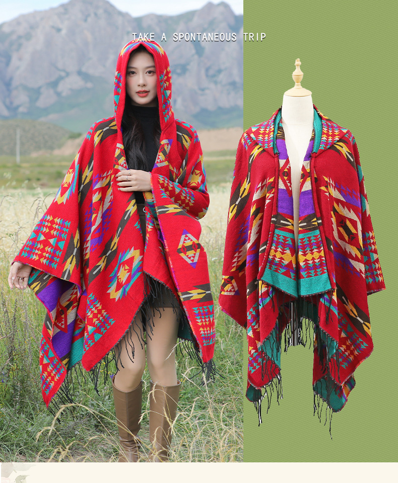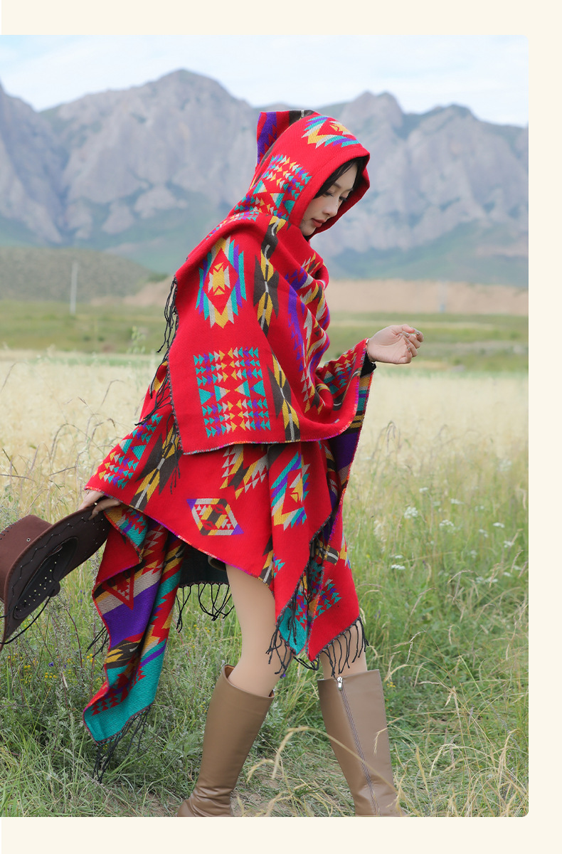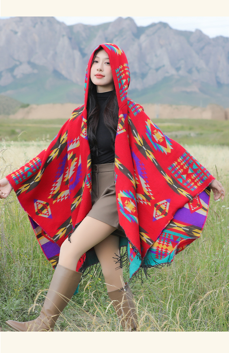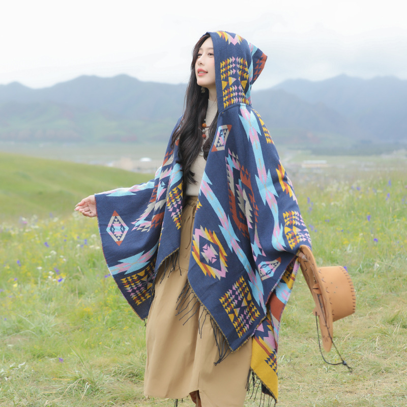 봄 캐주얼 다재다능한 맞춤형 에스닉 스타일 술 스카프 휴일 놀이 세련되고 편안한 따뜻한 후드 망토