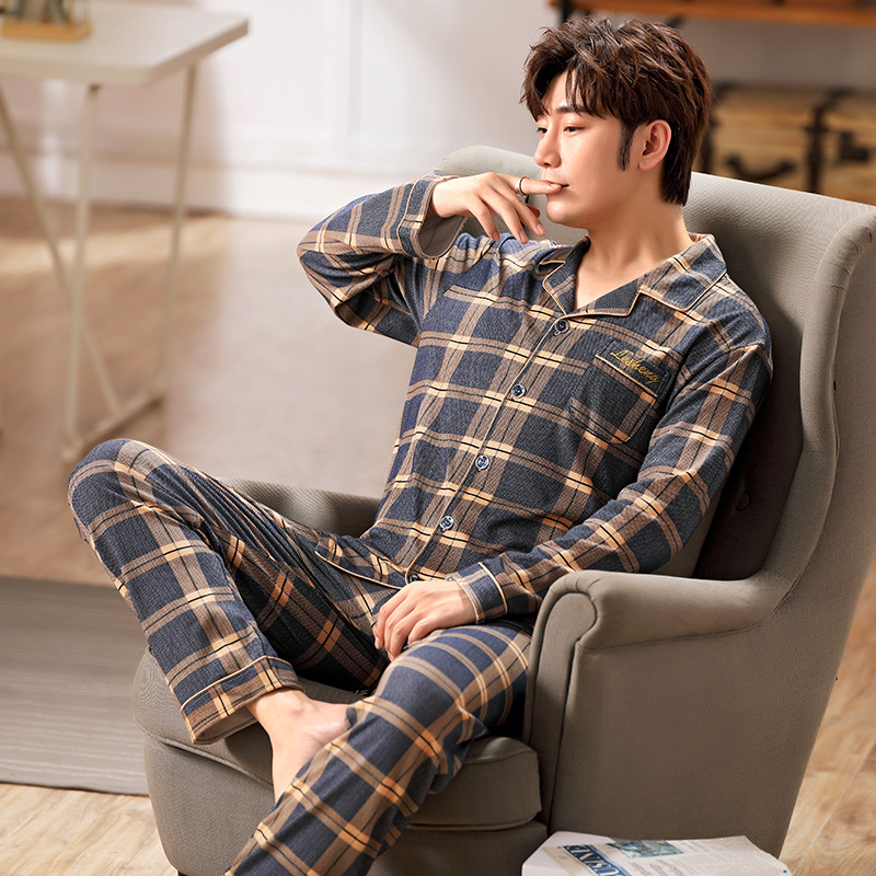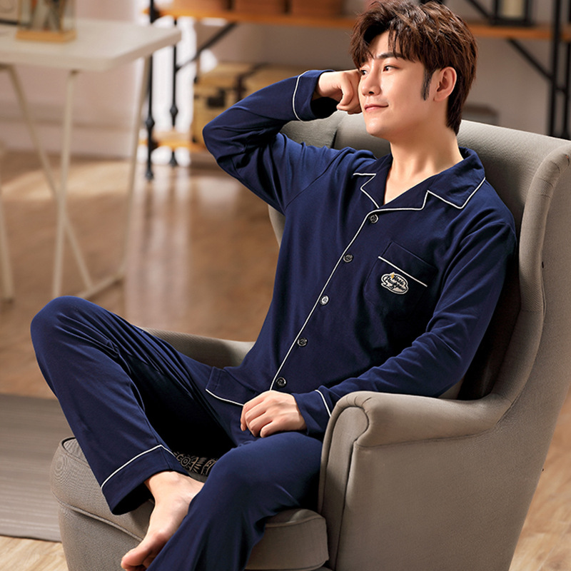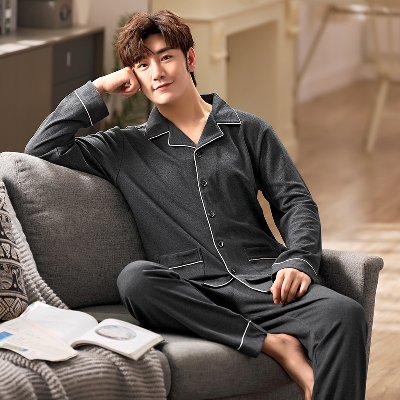 남성용 잠옷 봄, 가을 긴팔 캐주얼 홈웨어 외부 착용 가능 플러스 사이즈 150kg 남성용 뚱뚱이 세트