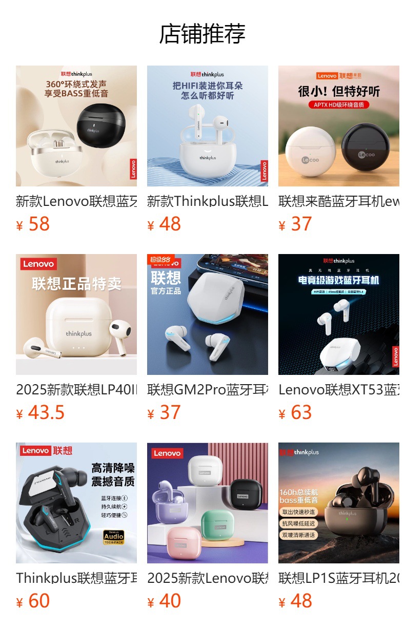 레노버 LP40 헤드폰 무선 블루투스 장시간 사용 가능 스포츠 노이즈 캔슬링 저지연 e스포츠 게임용스토어 가기