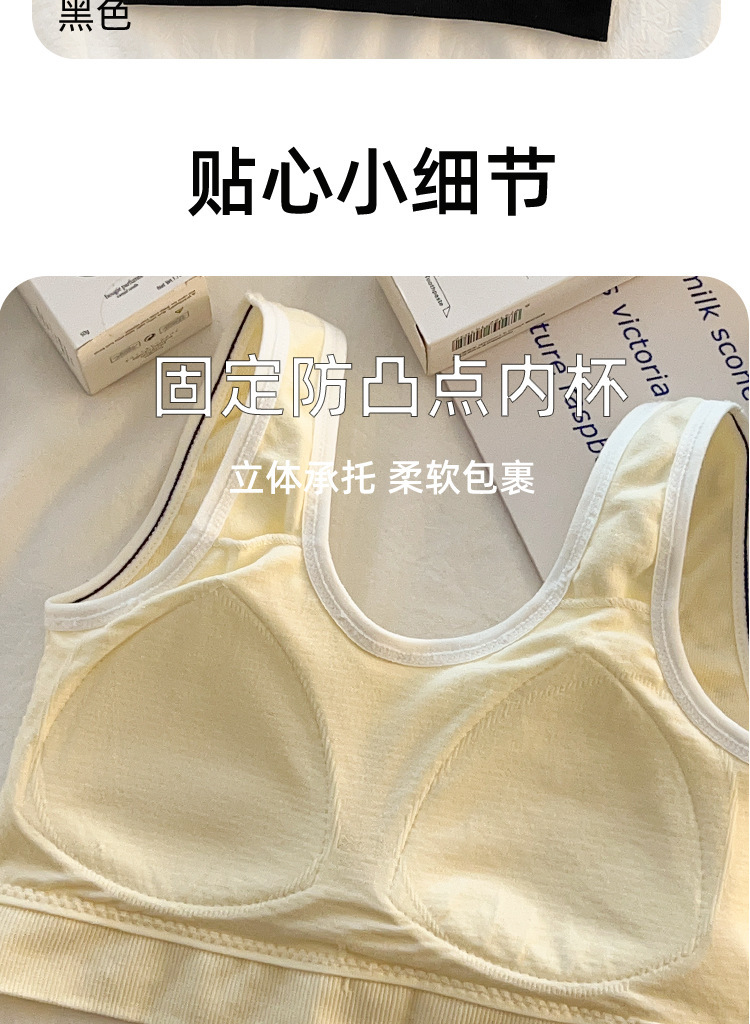 고정 컵 여아 속옷, 여학생, 중학생, 여아 발달기, 편안하고 통기성이 좋은 가슴 감싸는 스포츠 충격 방지 조끼