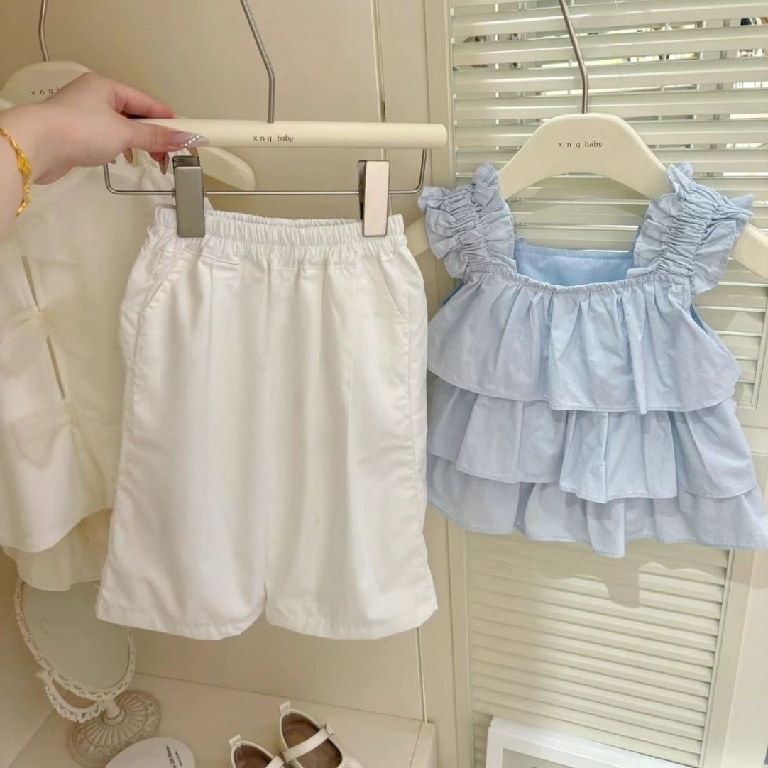 여자 2025 여름 새로운 러플 프랑스 폭발성 슬링 우아한 올 매치 쇼트 조끼 작은 셔츠 세트