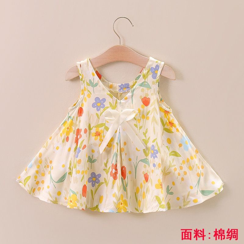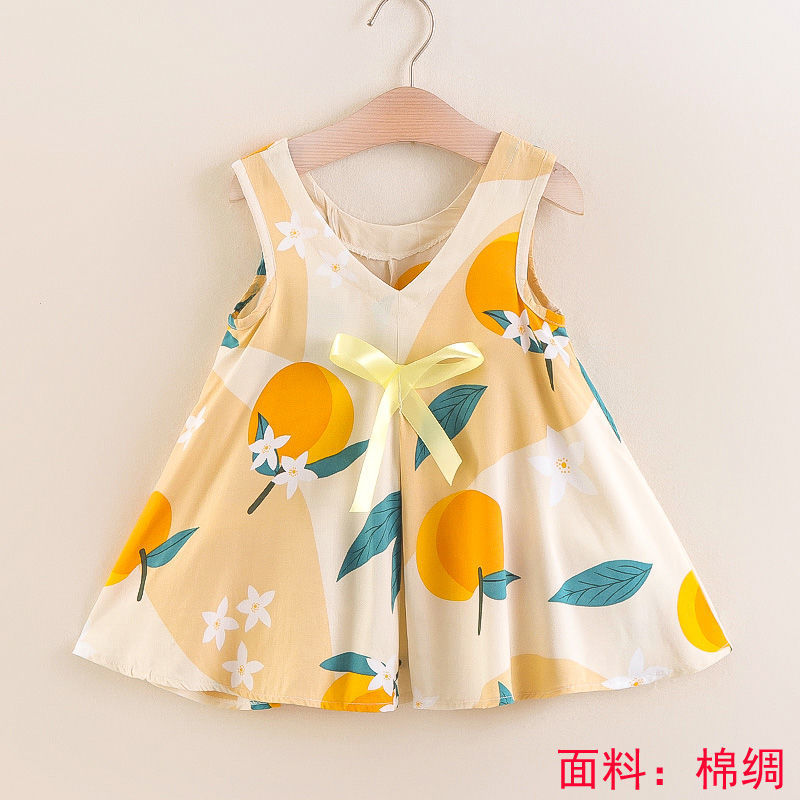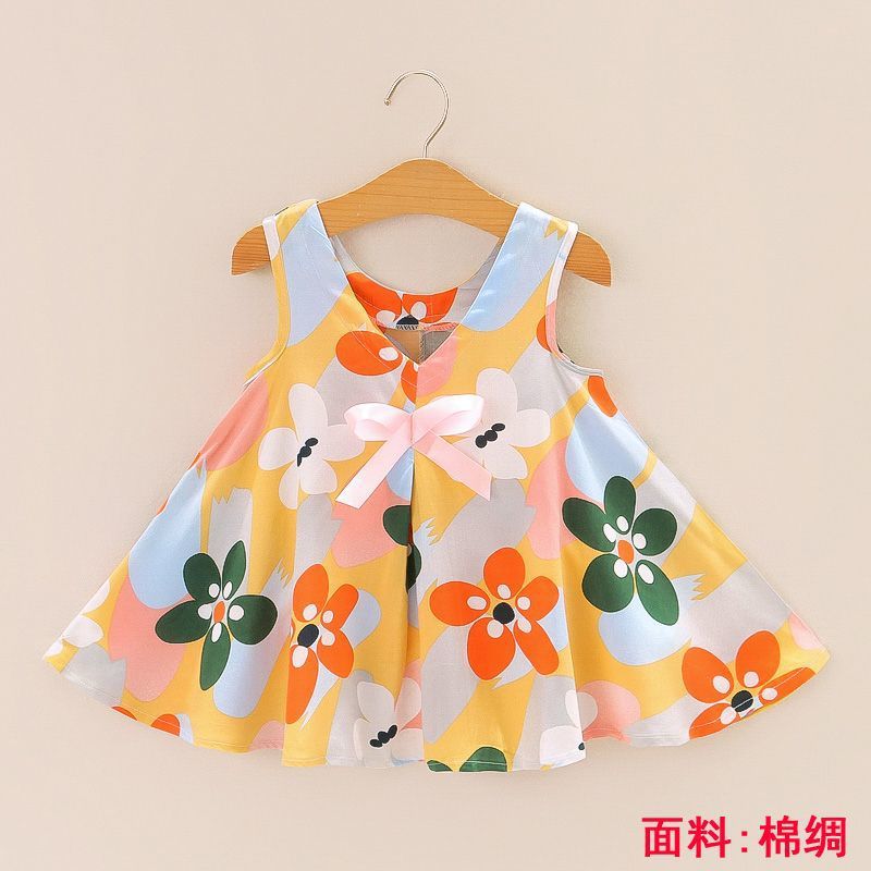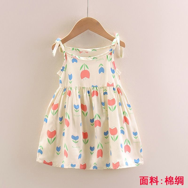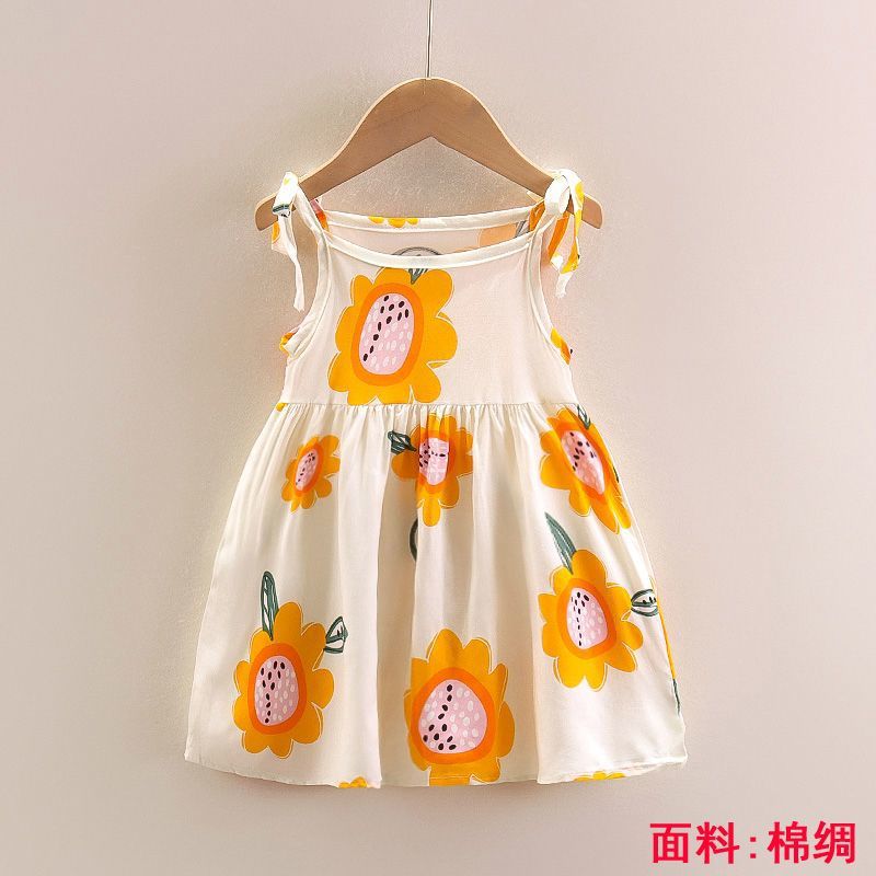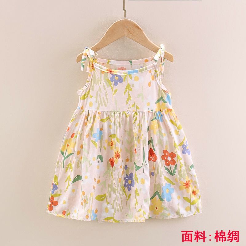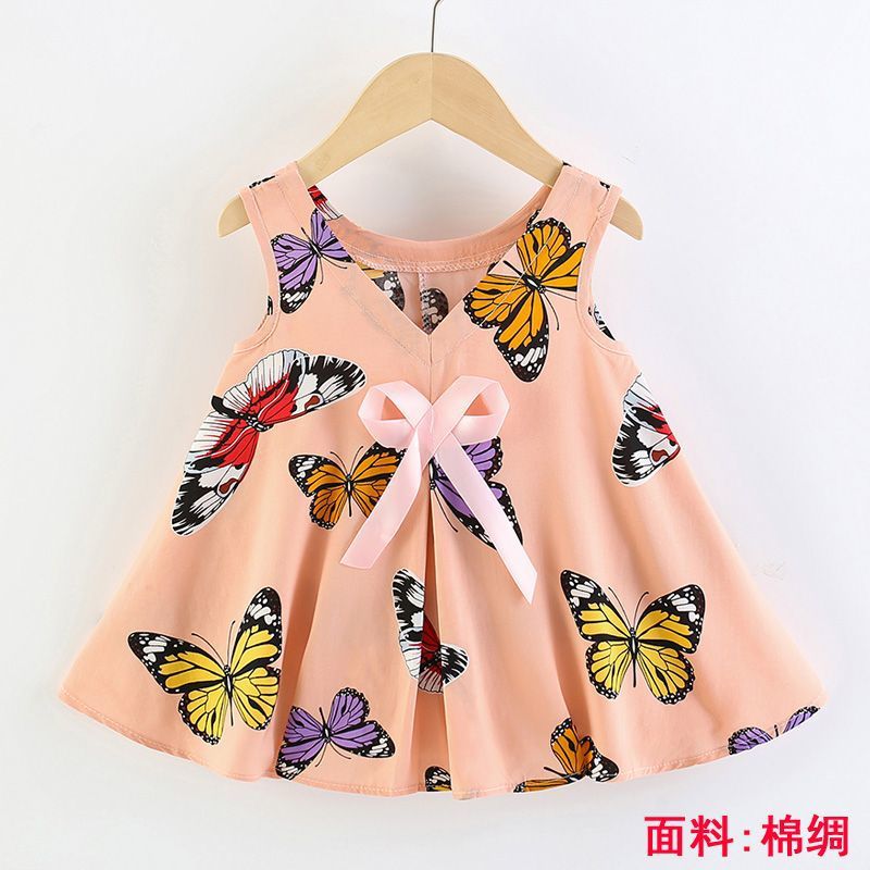 소녀의 원피스 여름 귀여운 나비 인쇄 공주 원피스 1-2-3 세 아기의 면 실크 원피스 소녀의 여름 원피스