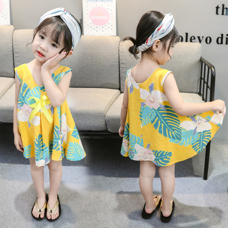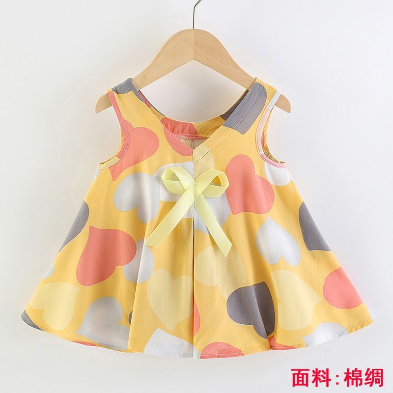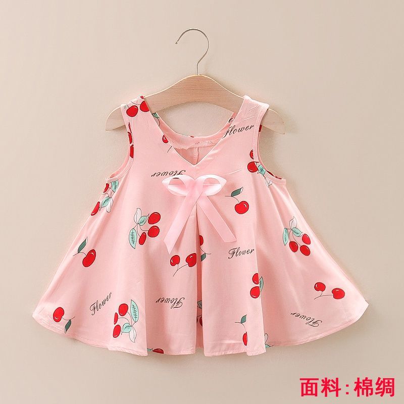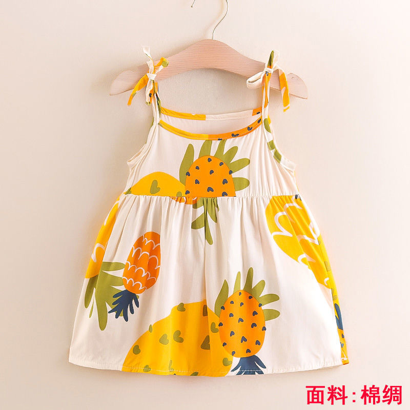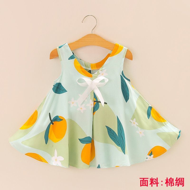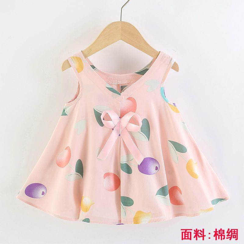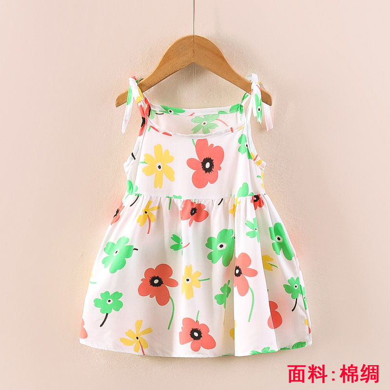 소녀의 원피스 여름 귀여운 나비 인쇄 공주 원피스 1-2-3 세 아기의 면 실크 원피스 소녀의 여름 원피스