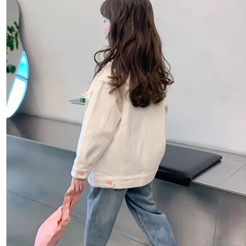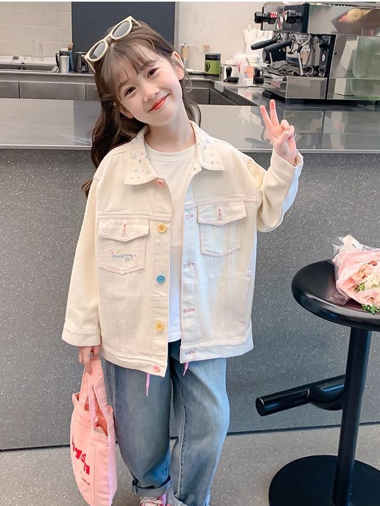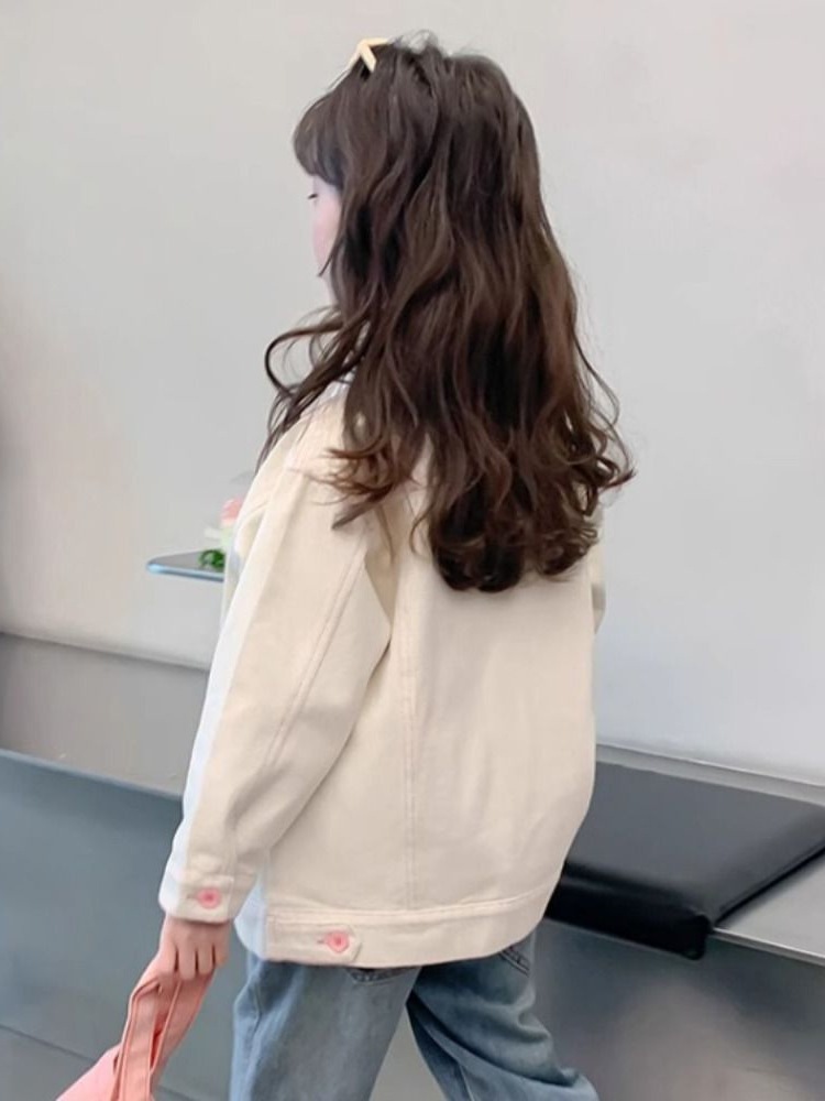 여자 코트 코튼 데님 봄, 가을 2025 새로운 솔리드 컬러 한국 스타일 어린 소녀 탑 자켓