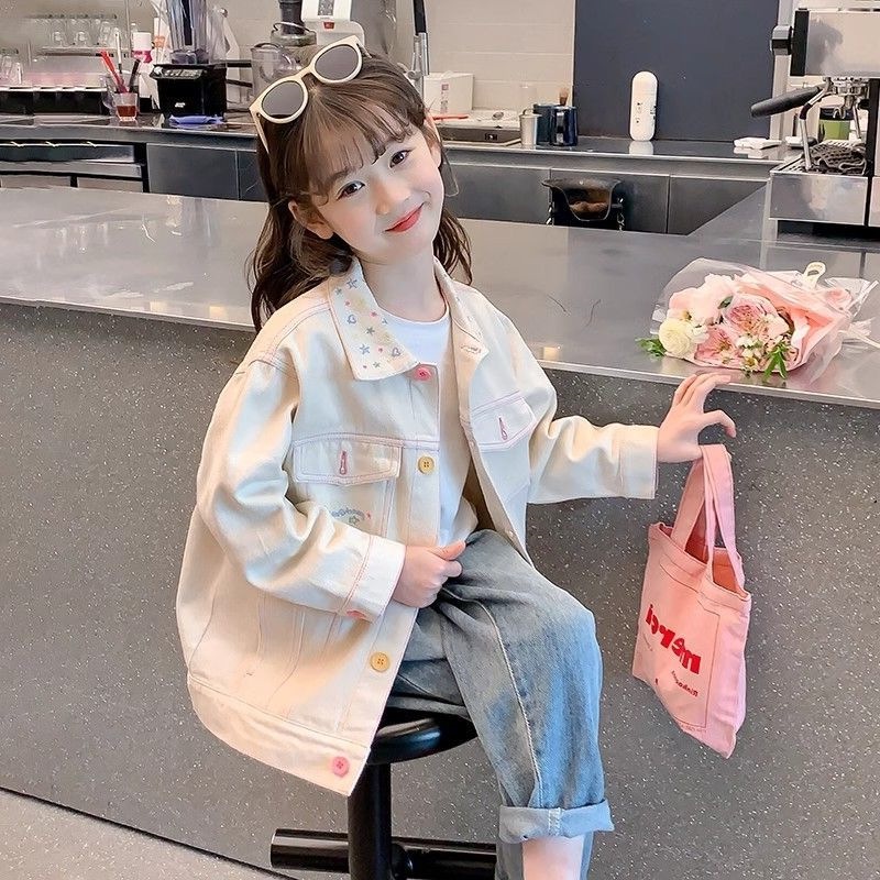 여자 코트 코튼 데님 봄, 가을 2025 새로운 솔리드 컬러 한국 스타일 어린 소녀 탑 자켓스토어 가기