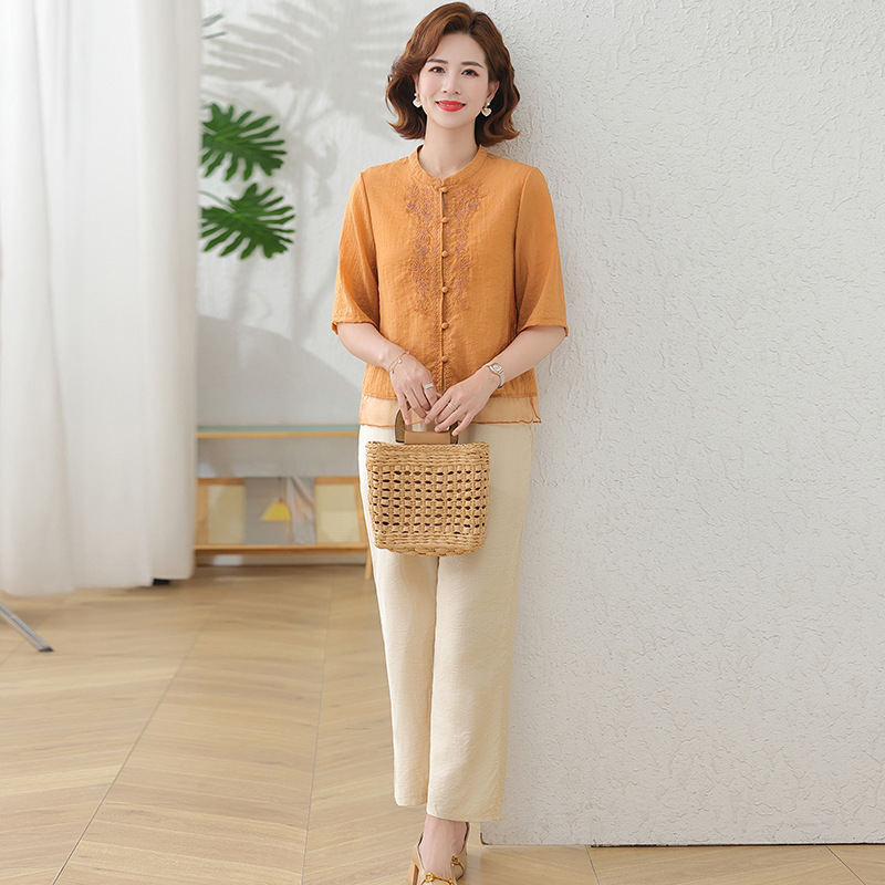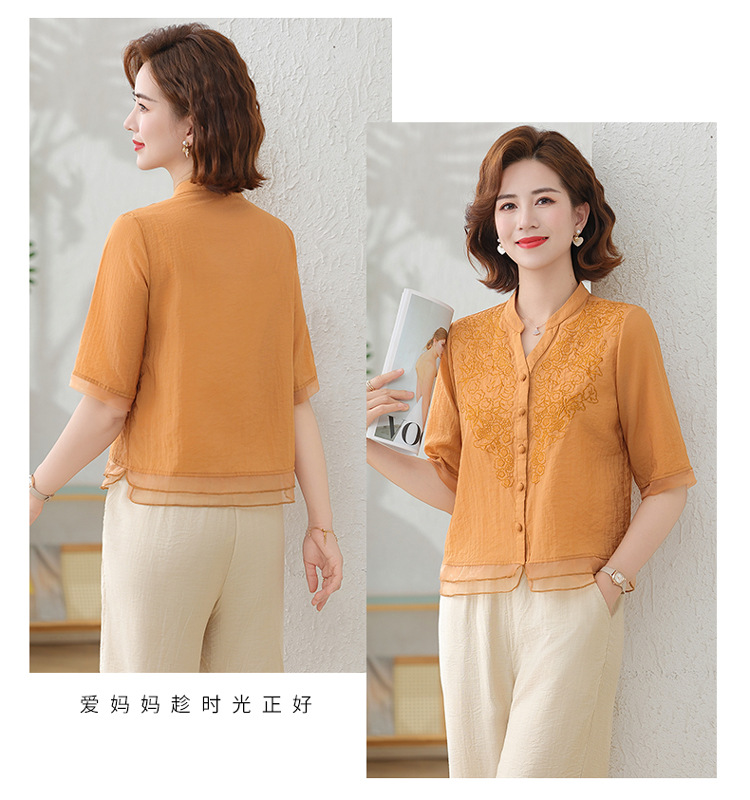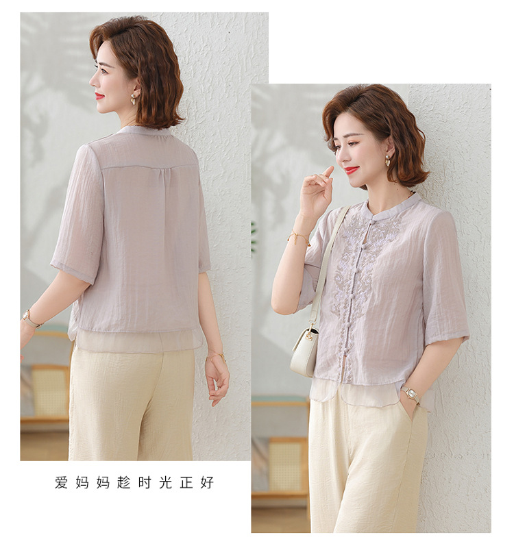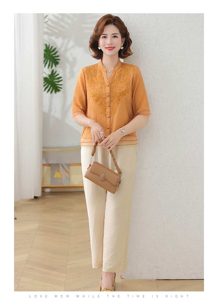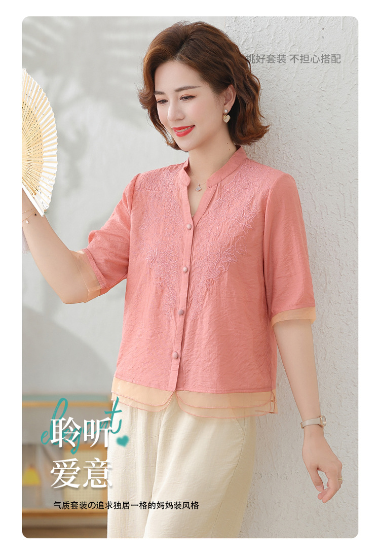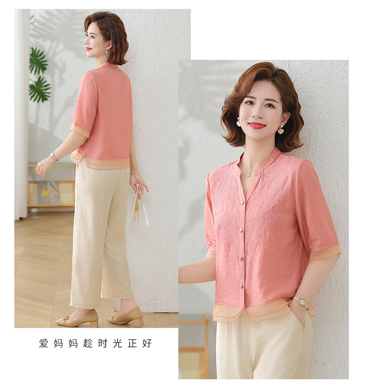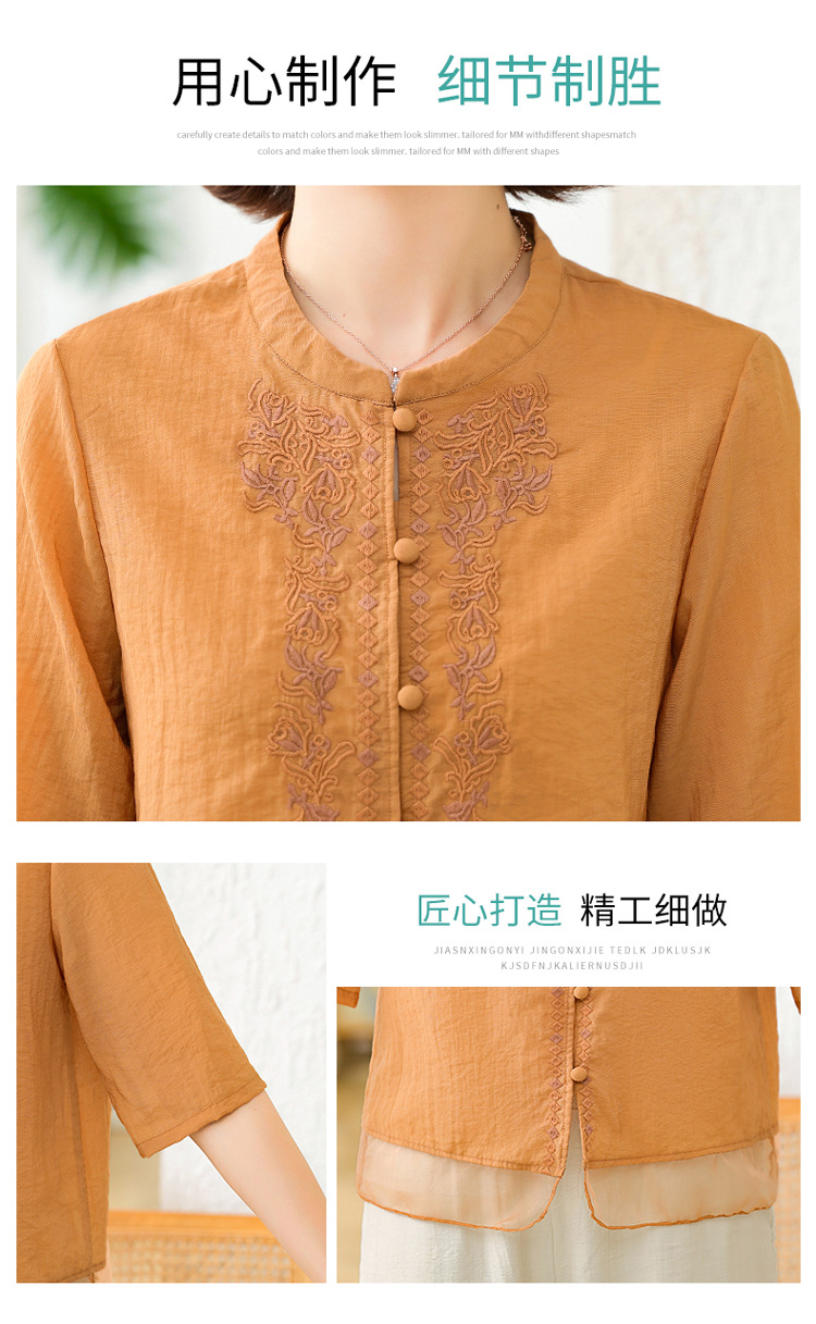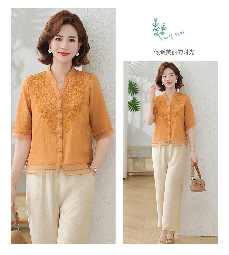 2025 여름 새로운 스탠드 칼라 싱글 브레스트 스티칭 패션 캐주얼 세트 슬림 셔츠 라미 자수 투피스 세트