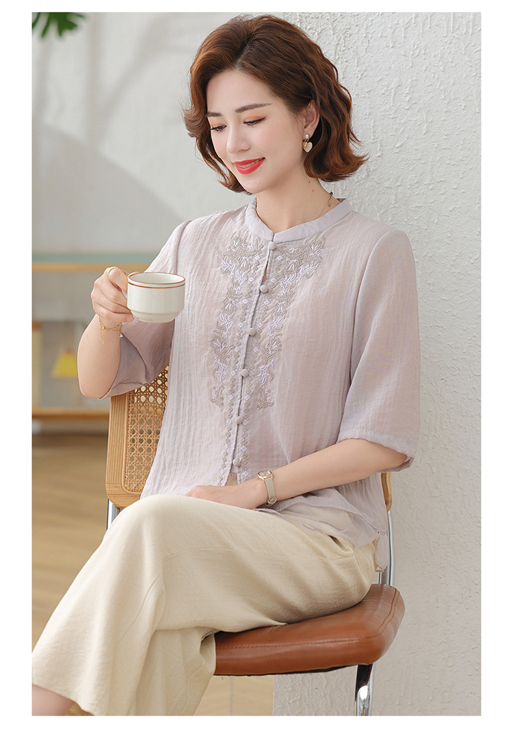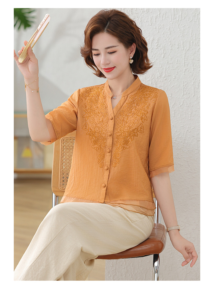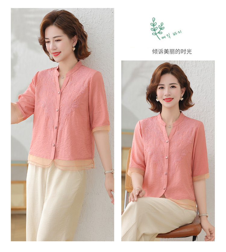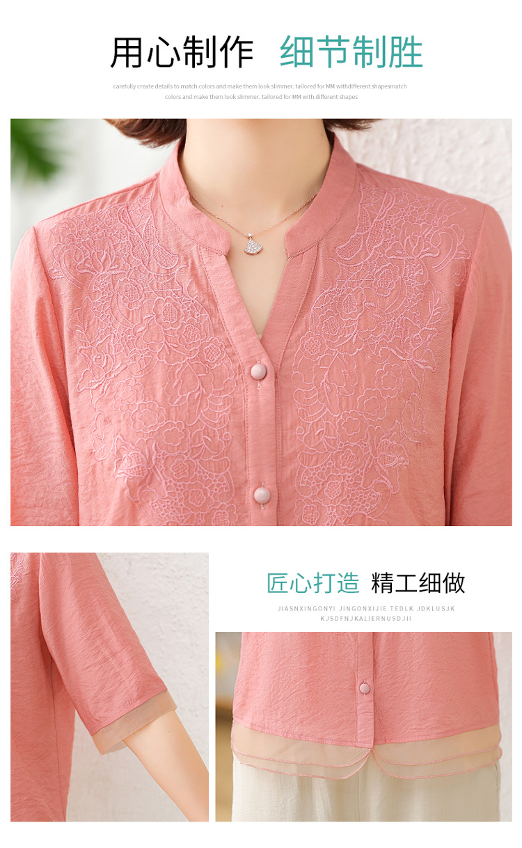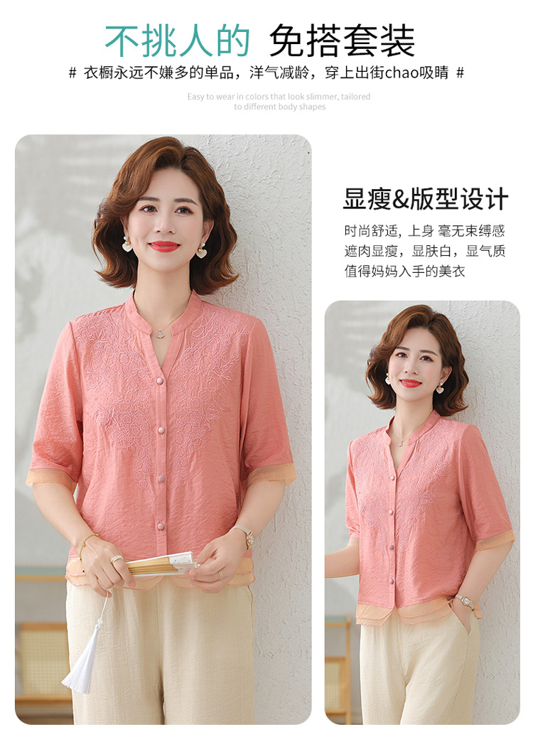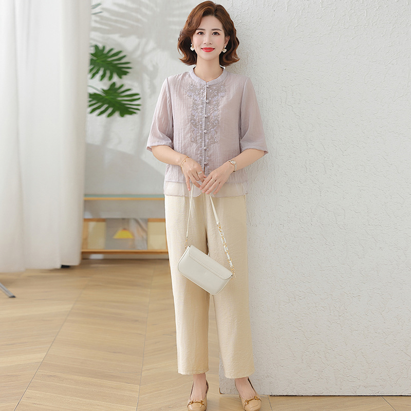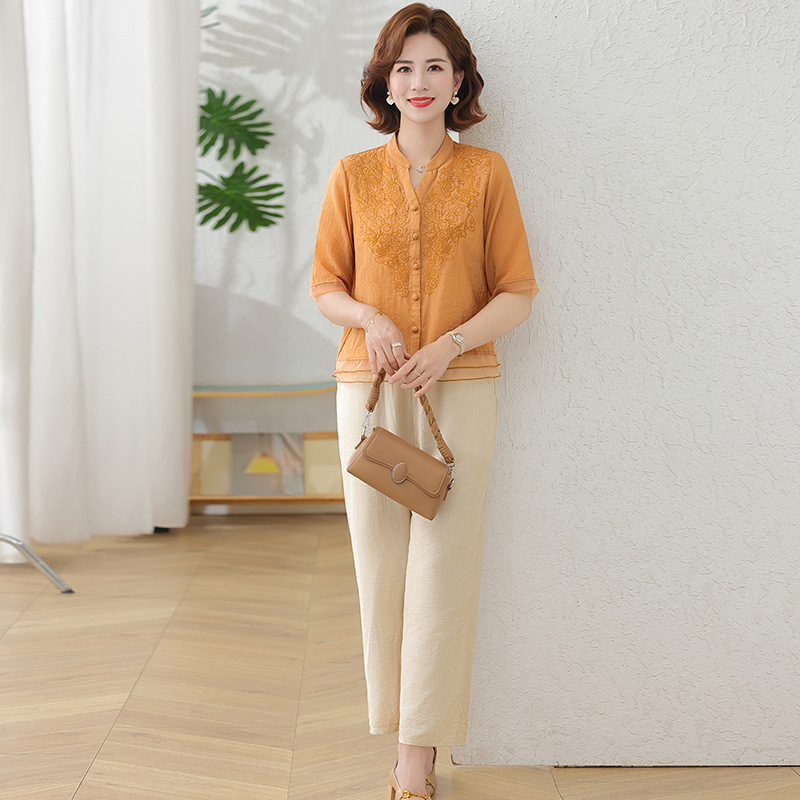 2025 여름 새로운 스탠드 칼라 싱글 브레스트 스티칭 패션 캐주얼 세트 슬림 셔츠 라미 자수 투피스 세트