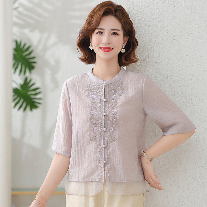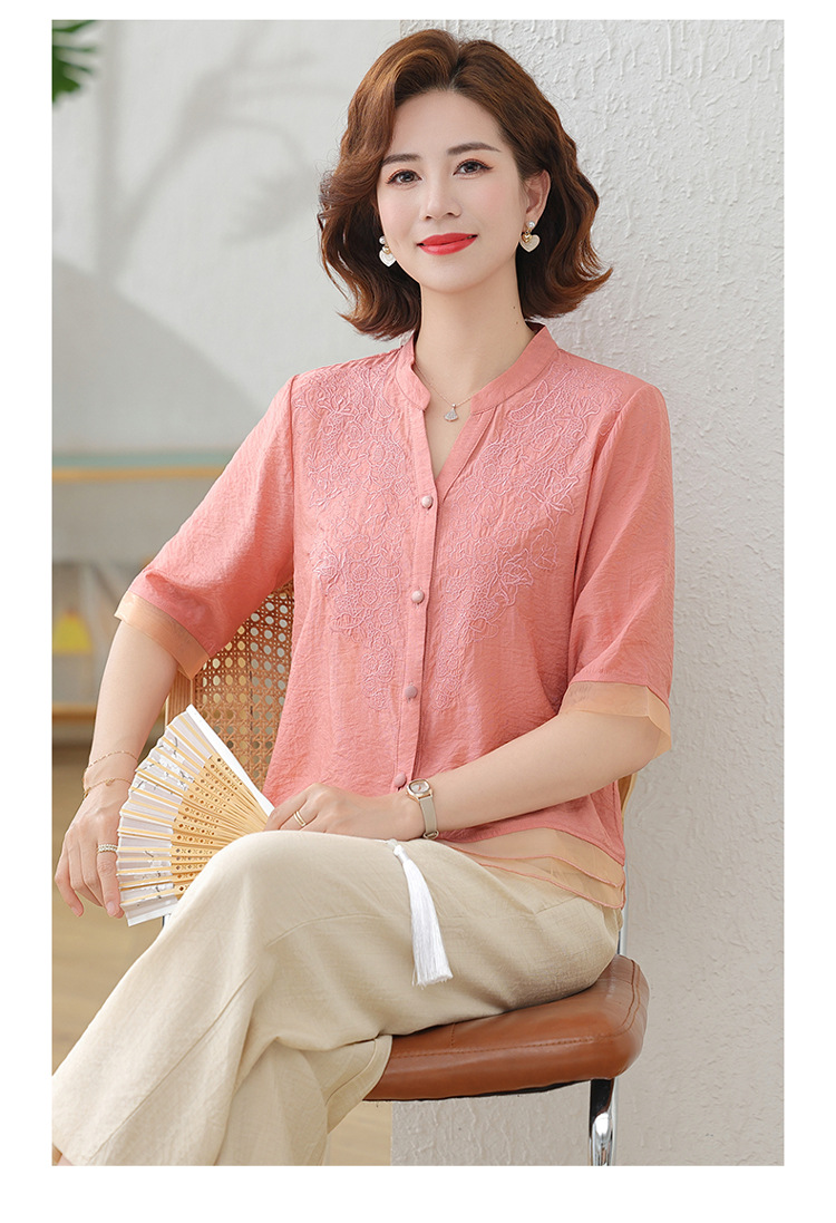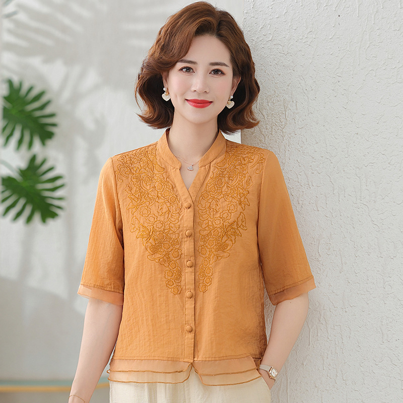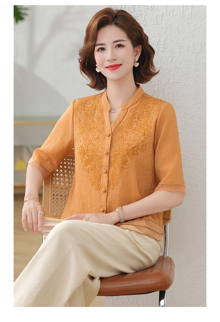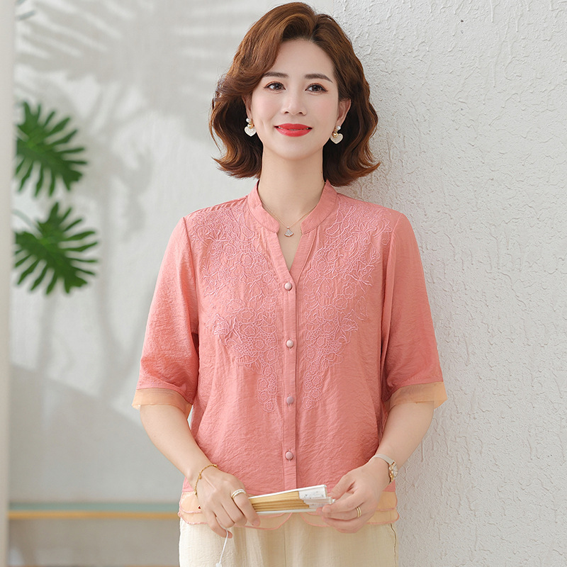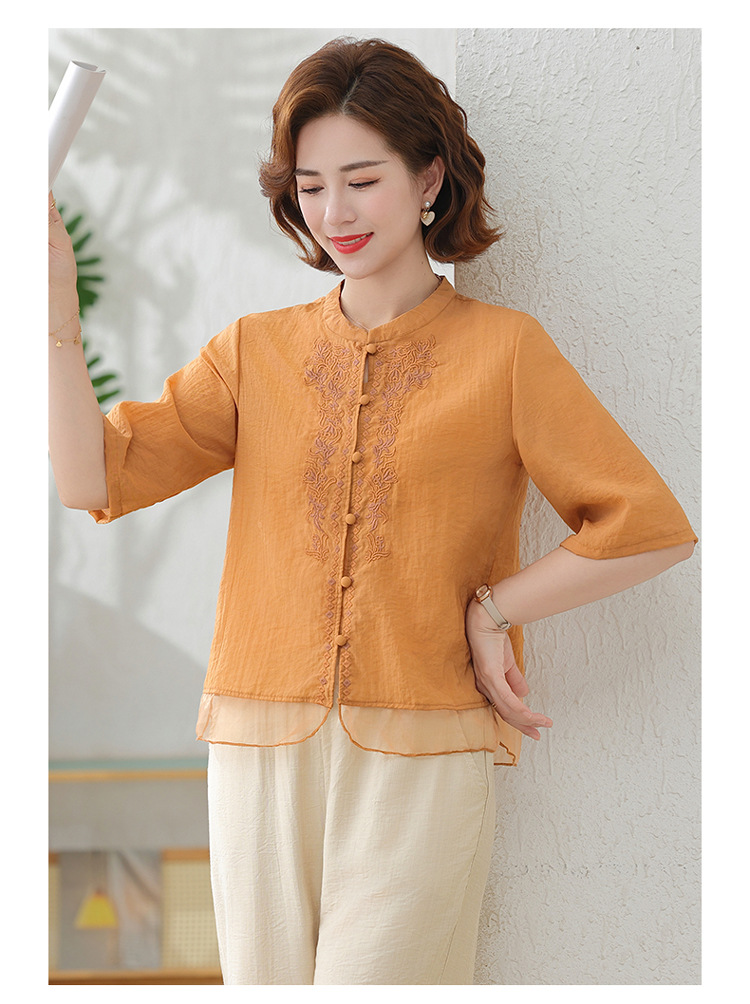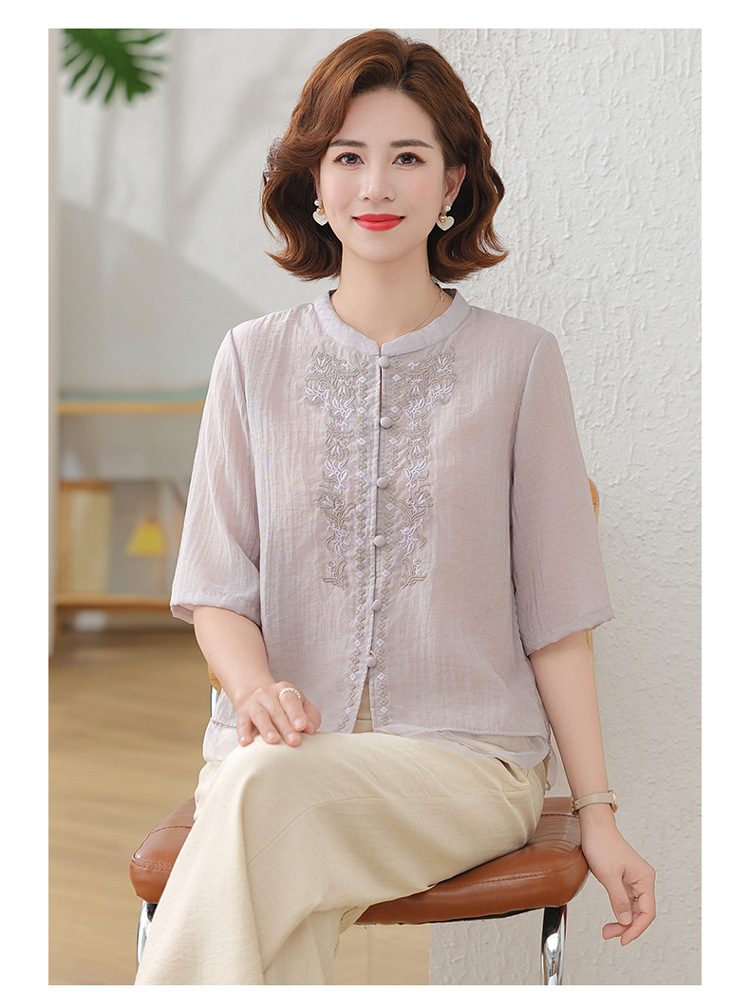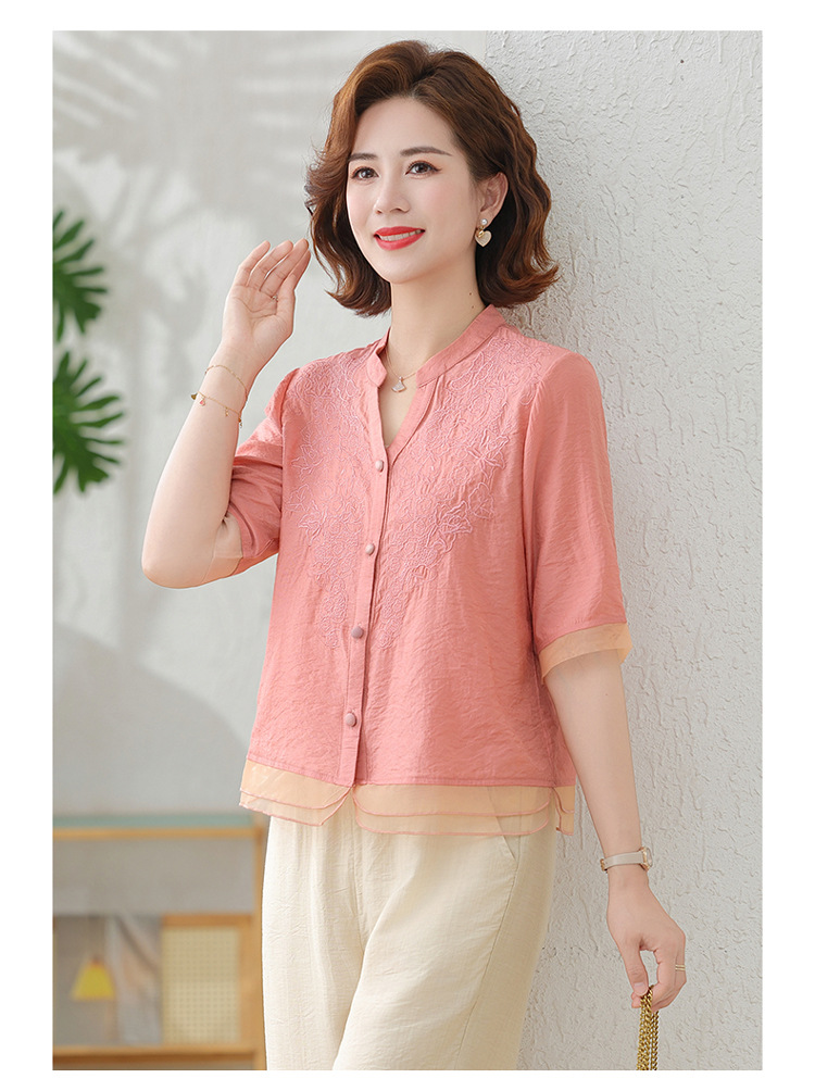 2025 여름 새로운 스탠드 칼라 싱글 브레스트 스티칭 패션 캐주얼 세트 슬림 셔츠 라미 자수 투피스 세트