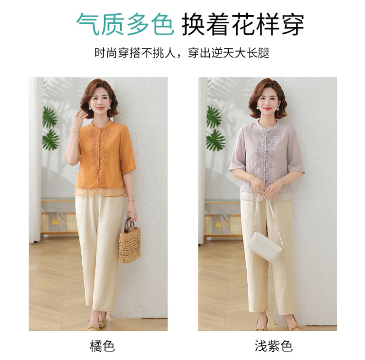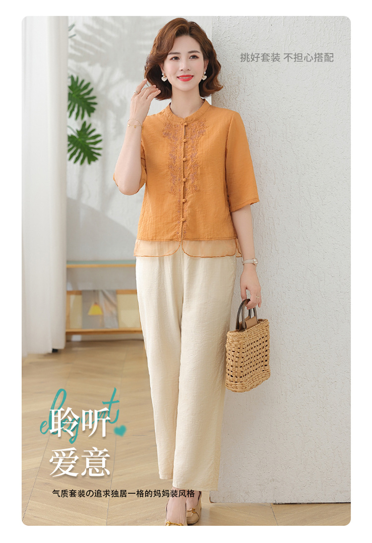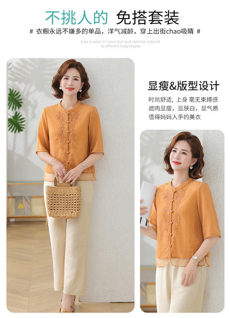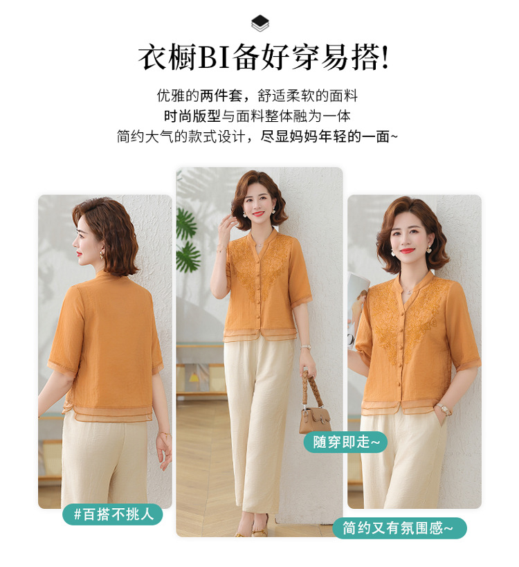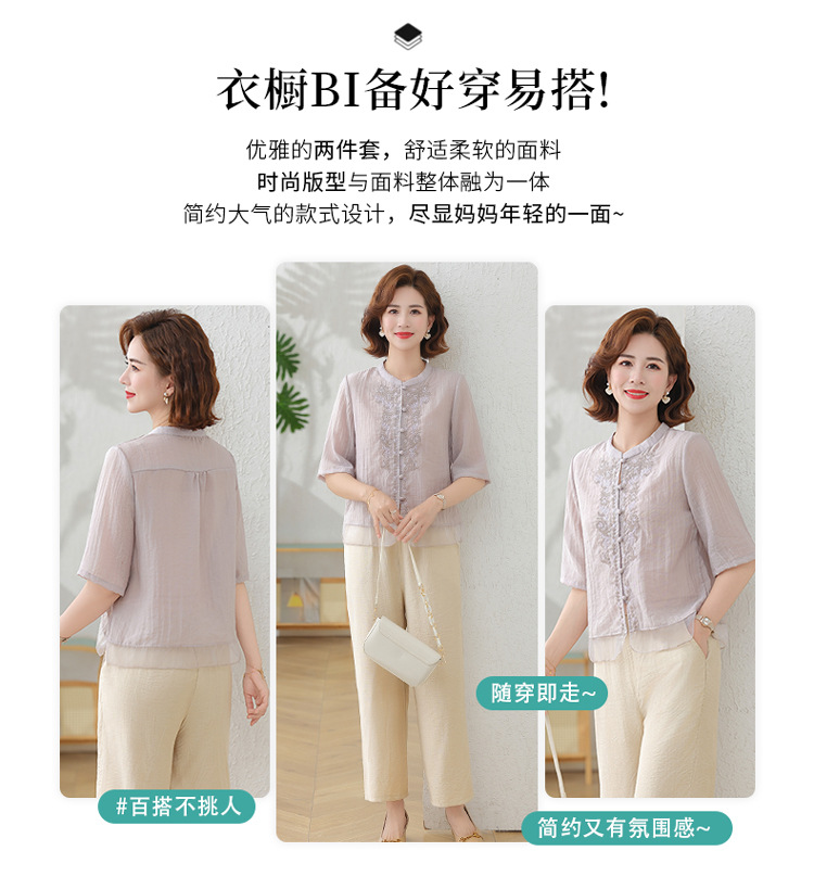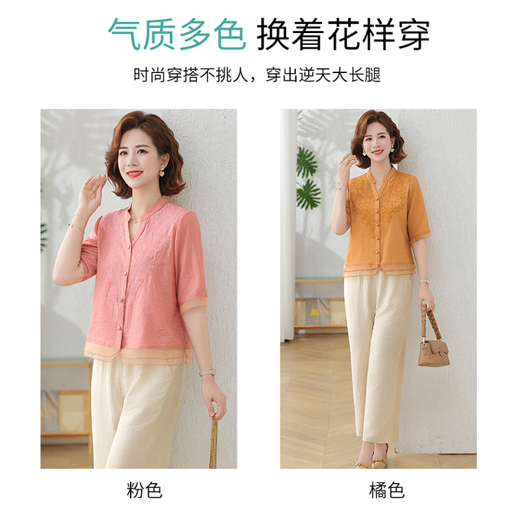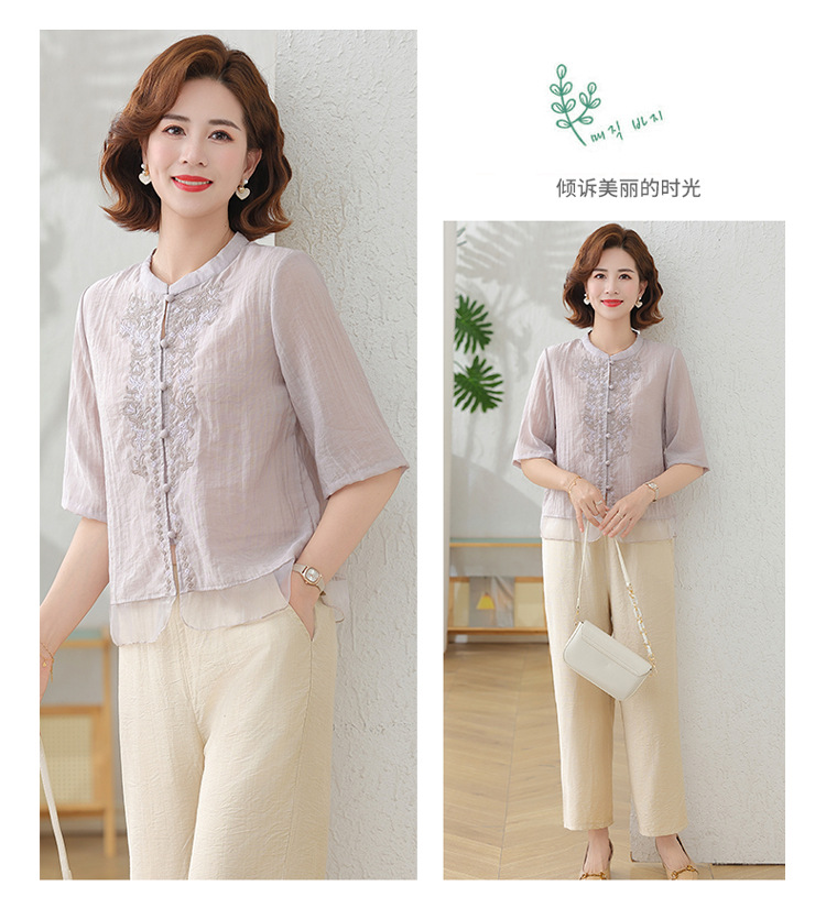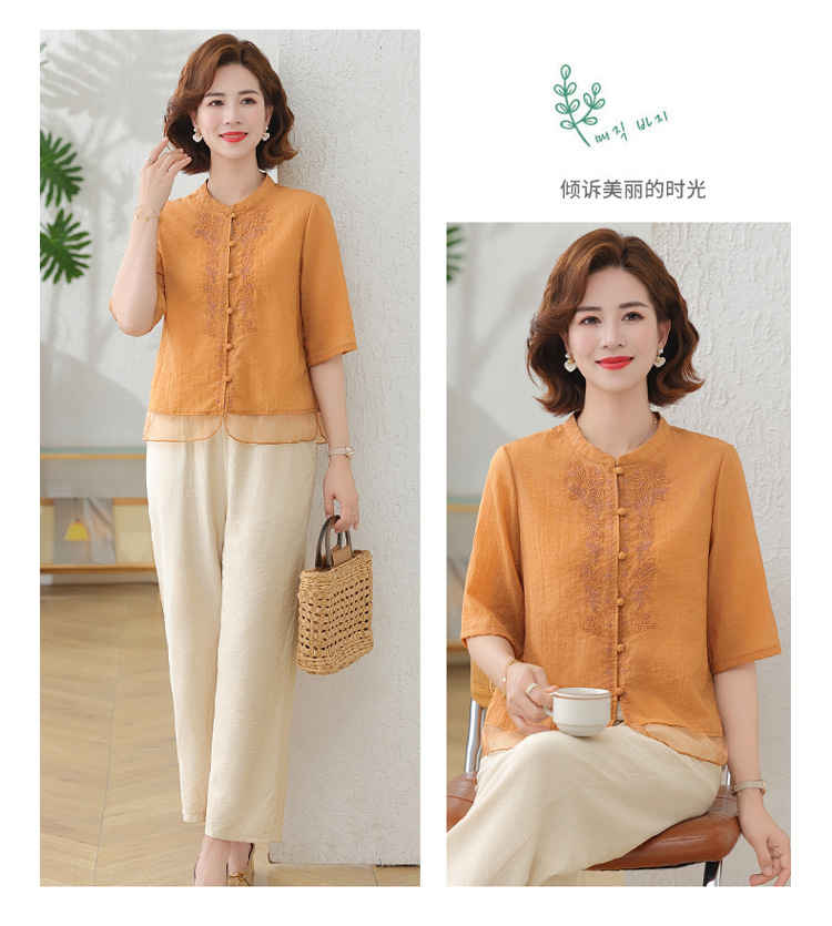 2025 여름 새로운 스탠드 칼라 싱글 브레스트 스티칭 패션 캐주얼 세트 슬림 셔츠 라미 자수 투피스 세트스토어 가기