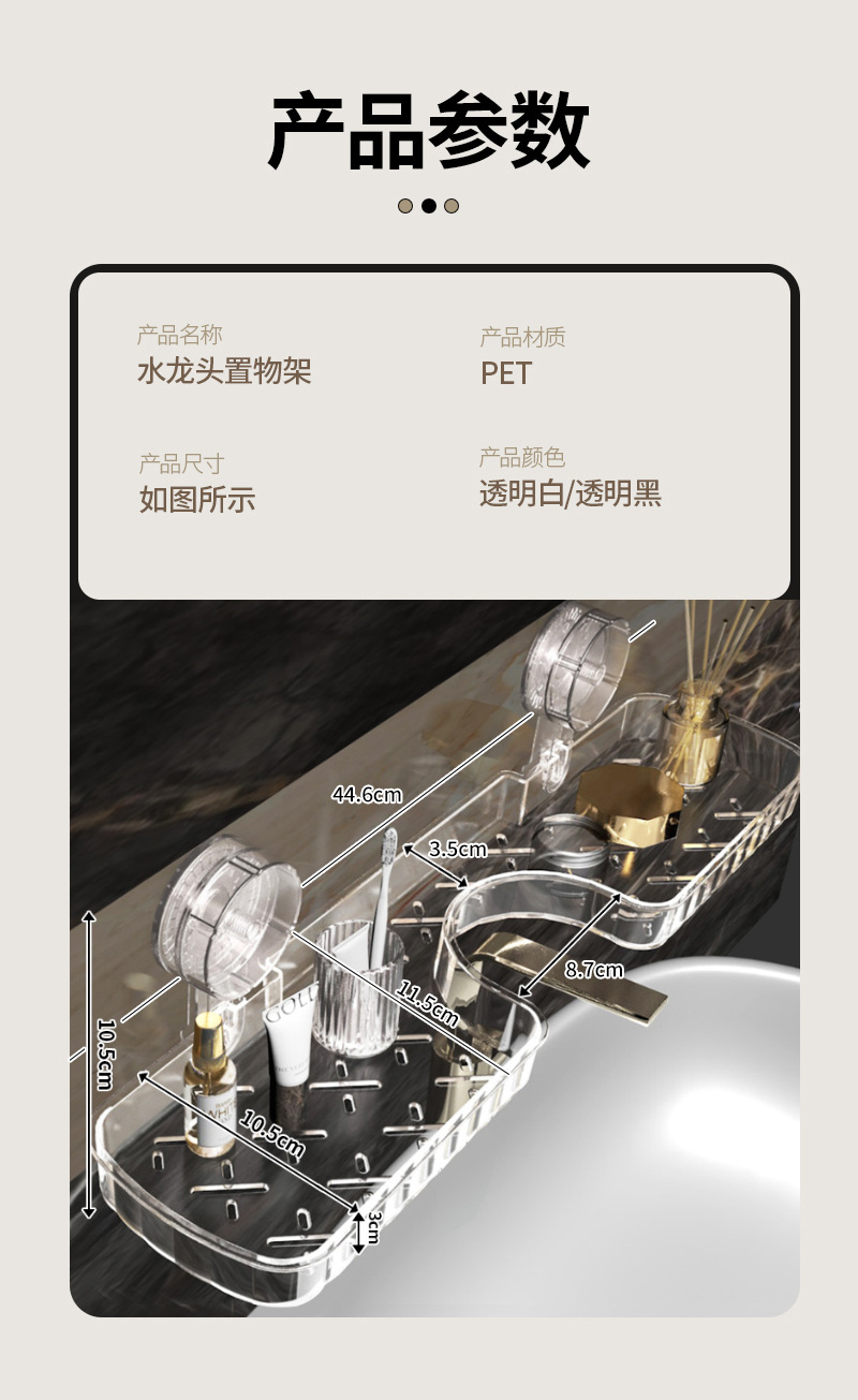 • 商品名称:强力真空双吸盘水龙头沥水置物架浴室收纳架--透明白