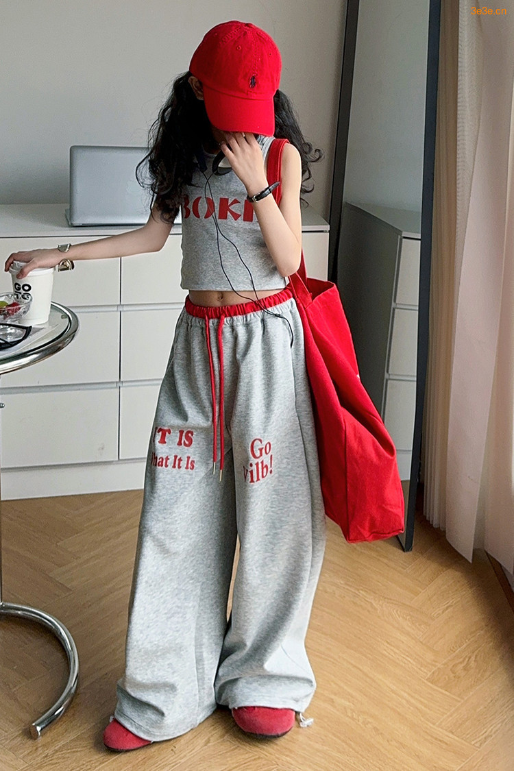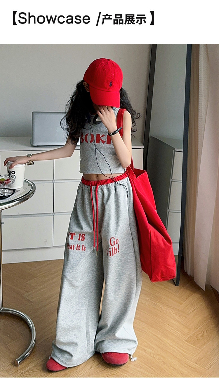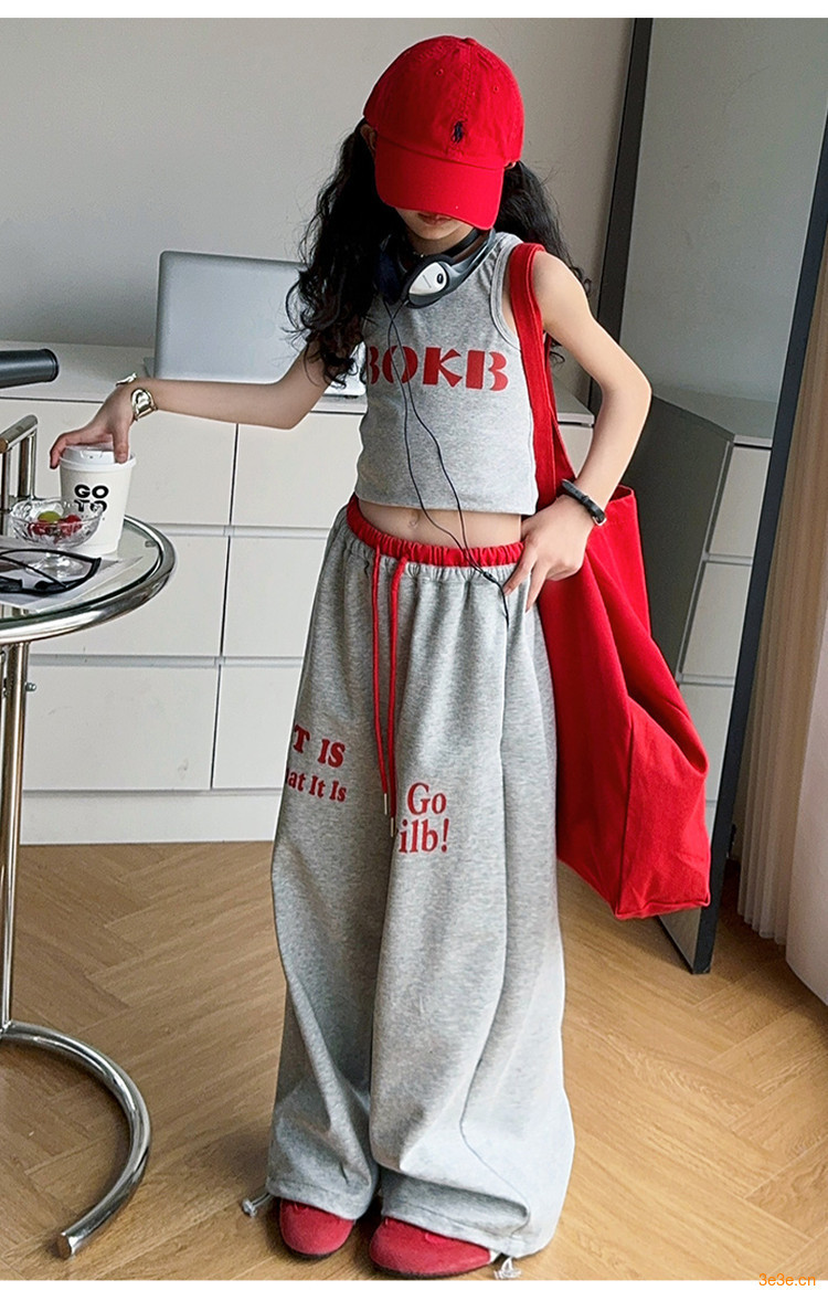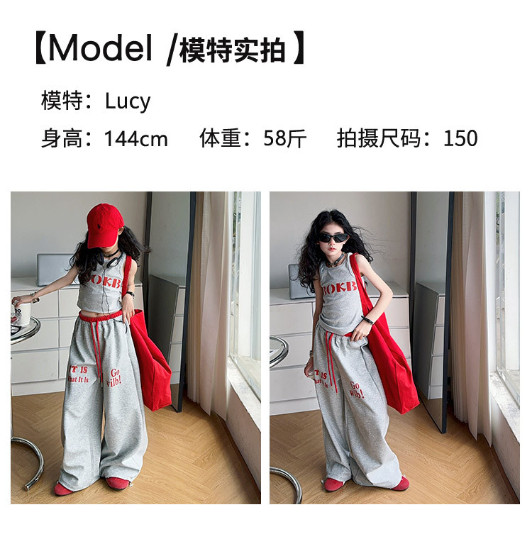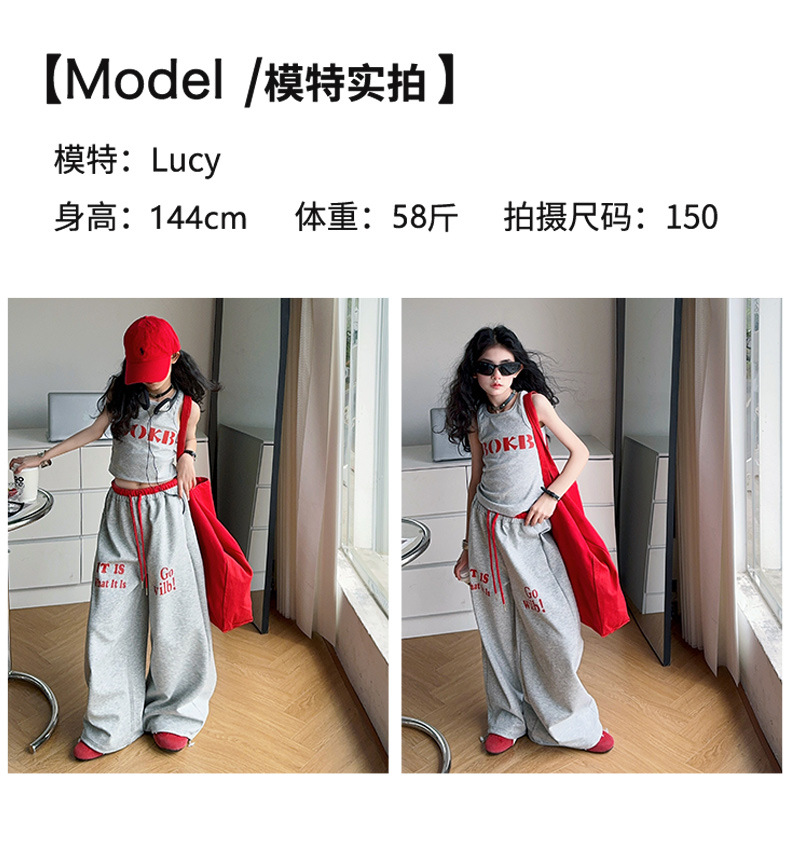 국경 간 소녀 민소매 탑 캐주얼 세트 2025 새로운 어린이 조끼 티셔츠 느슨한 넓은 다리 바지 투피스 세트스토어 가기