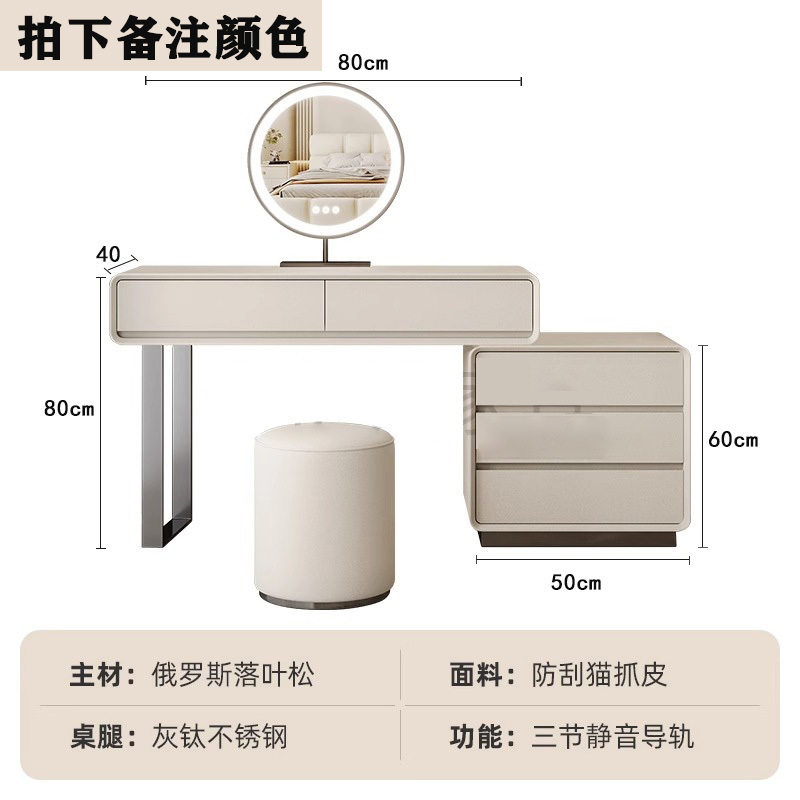 • 80CM 싱글 테이블 + 3단 서랍장(거울 스툴 제외)