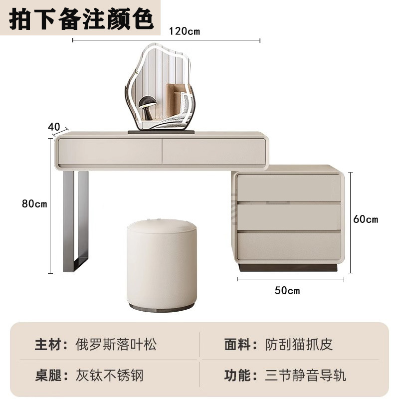 • 120CM 싱글 테이블 + 3단 서랍장(거울 스툴 제외)