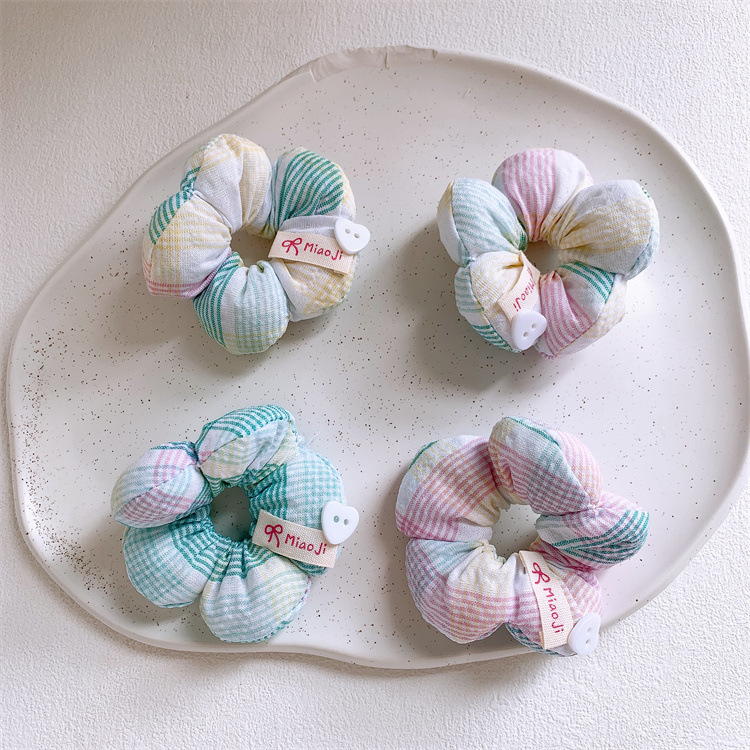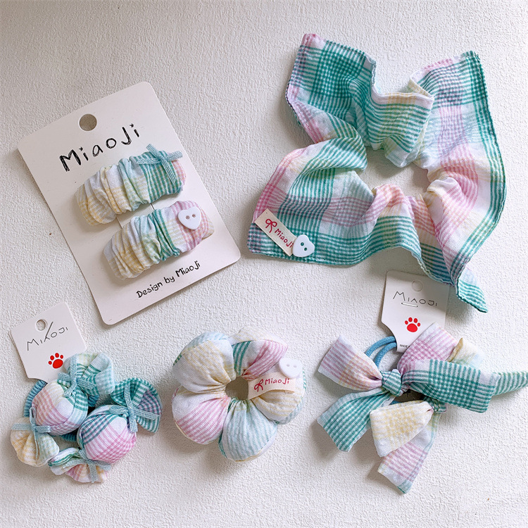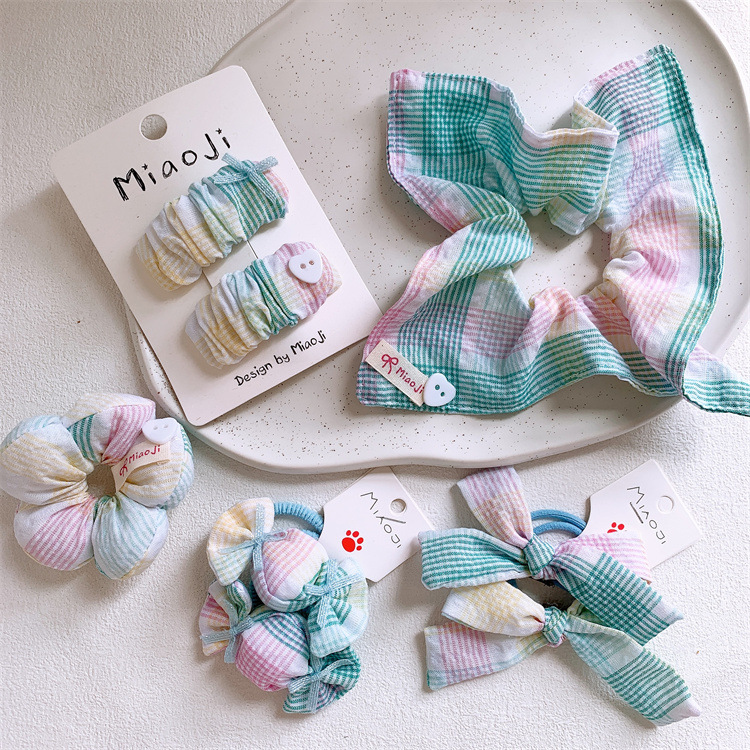 어린이 신선한 노란색 녹색 격자 무늬 활 여아 방귀 깨진 머리 BB 클립 머리 고무 텐든 머리 밧줄스토어 가기