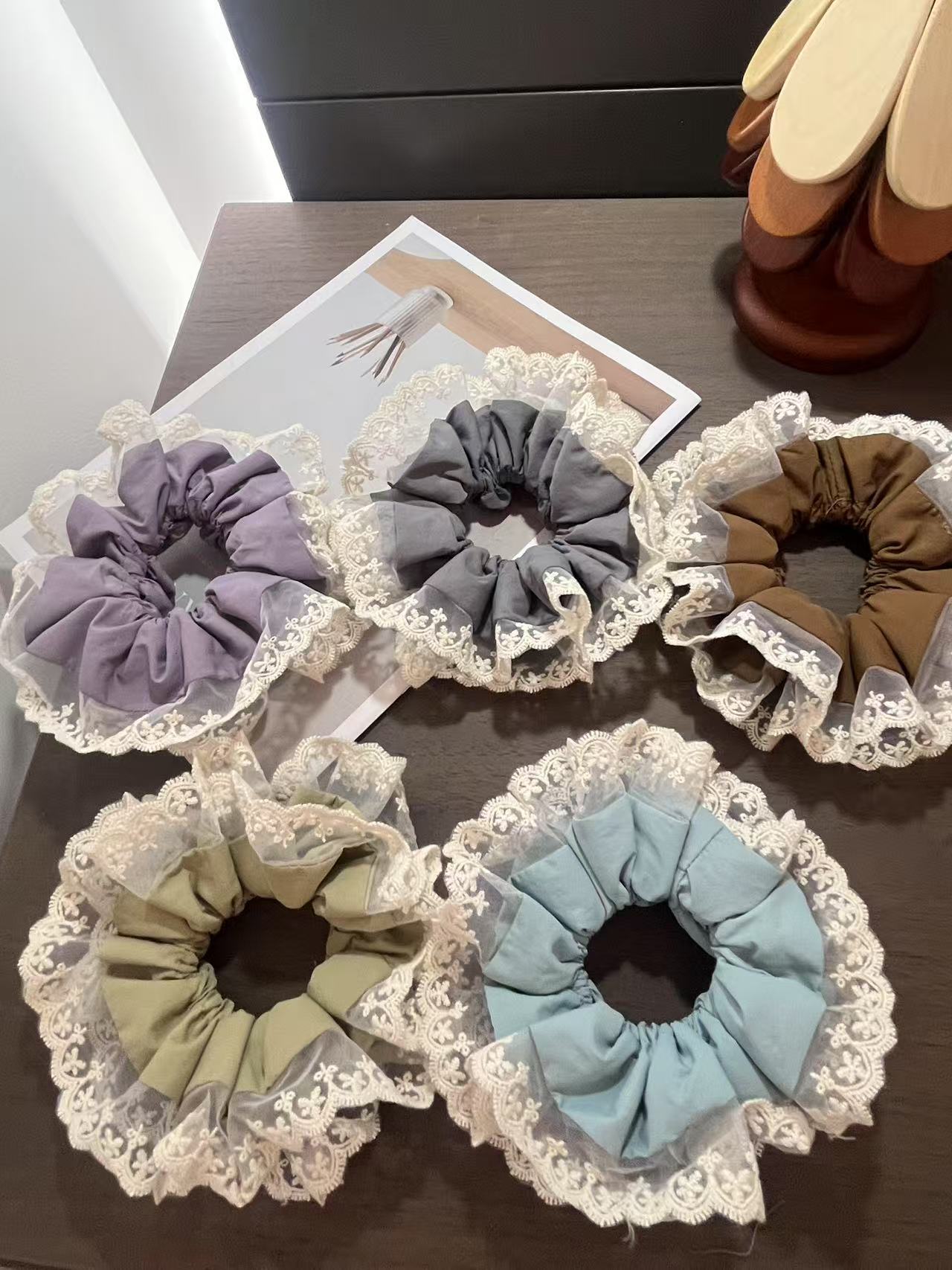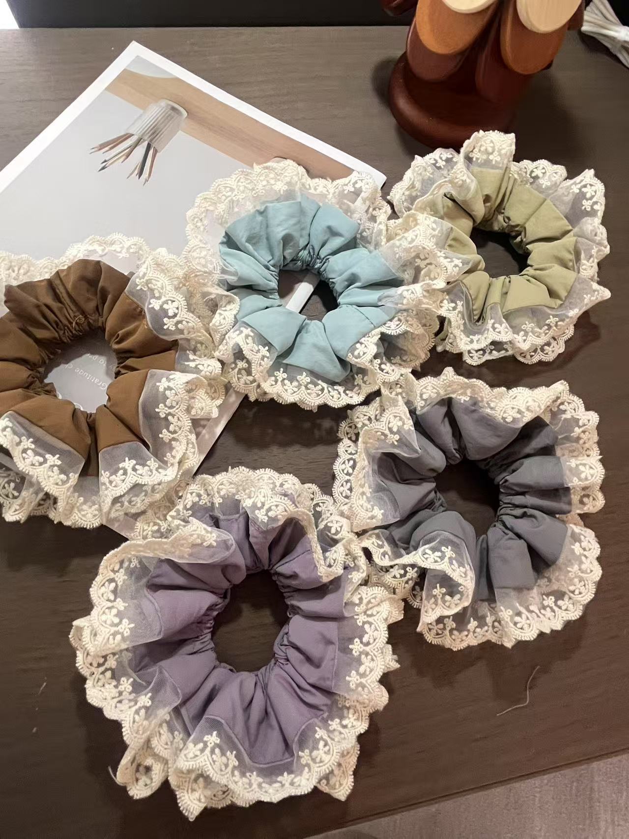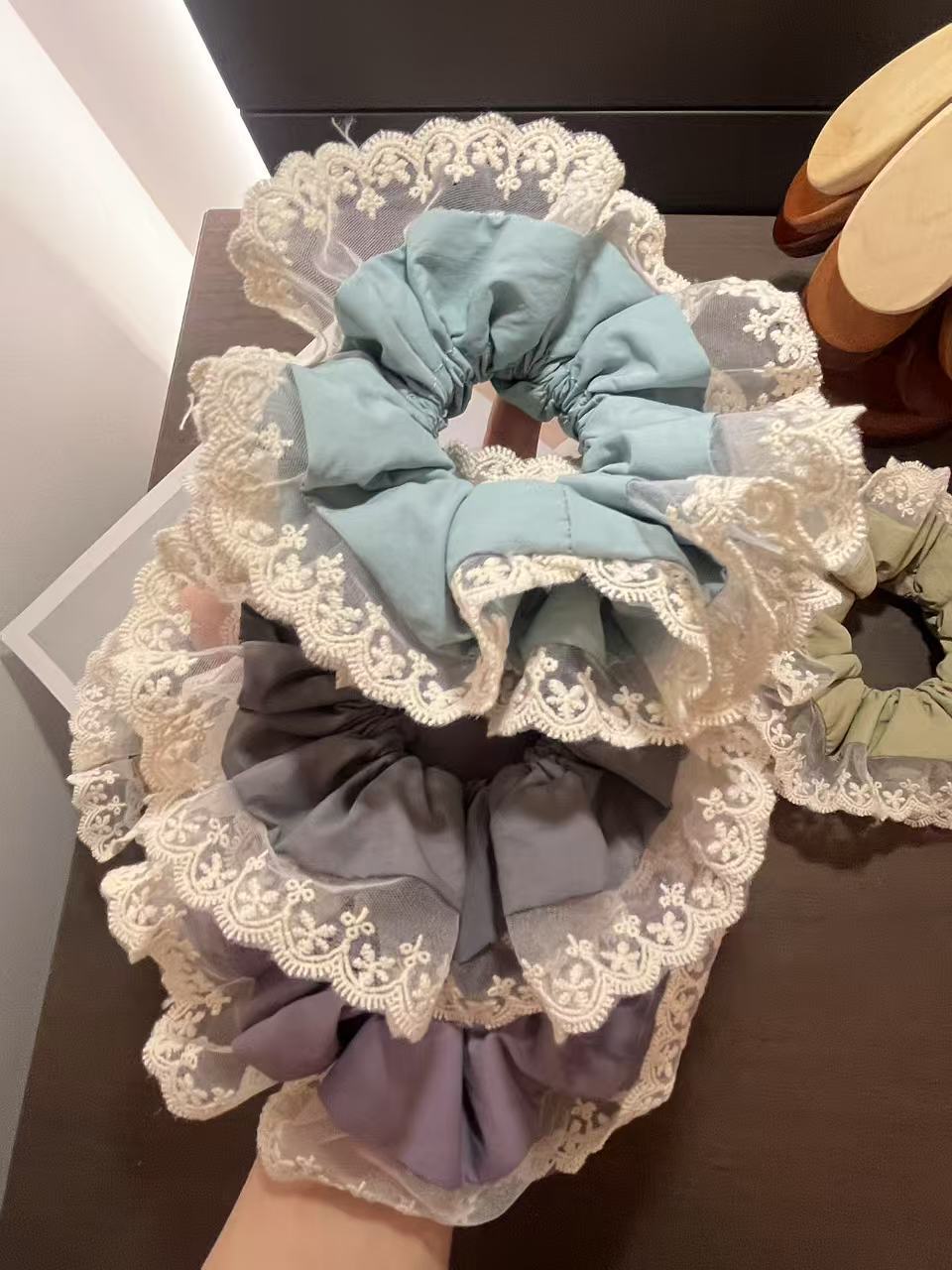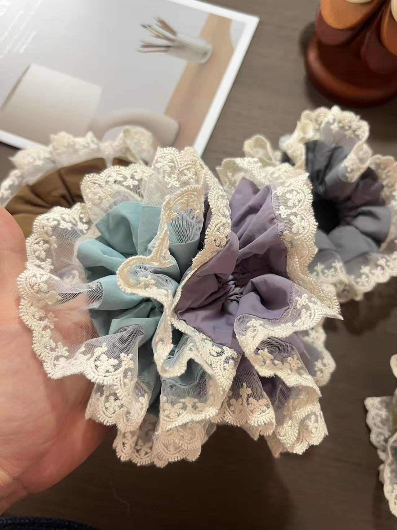 새로운 빠른 건조 레이스 자수 레이스 헤어 링 가리 간단한 대형 그릇 링 단색 달콤한 헤어 로프 헤어 로프 헤어 액세서리