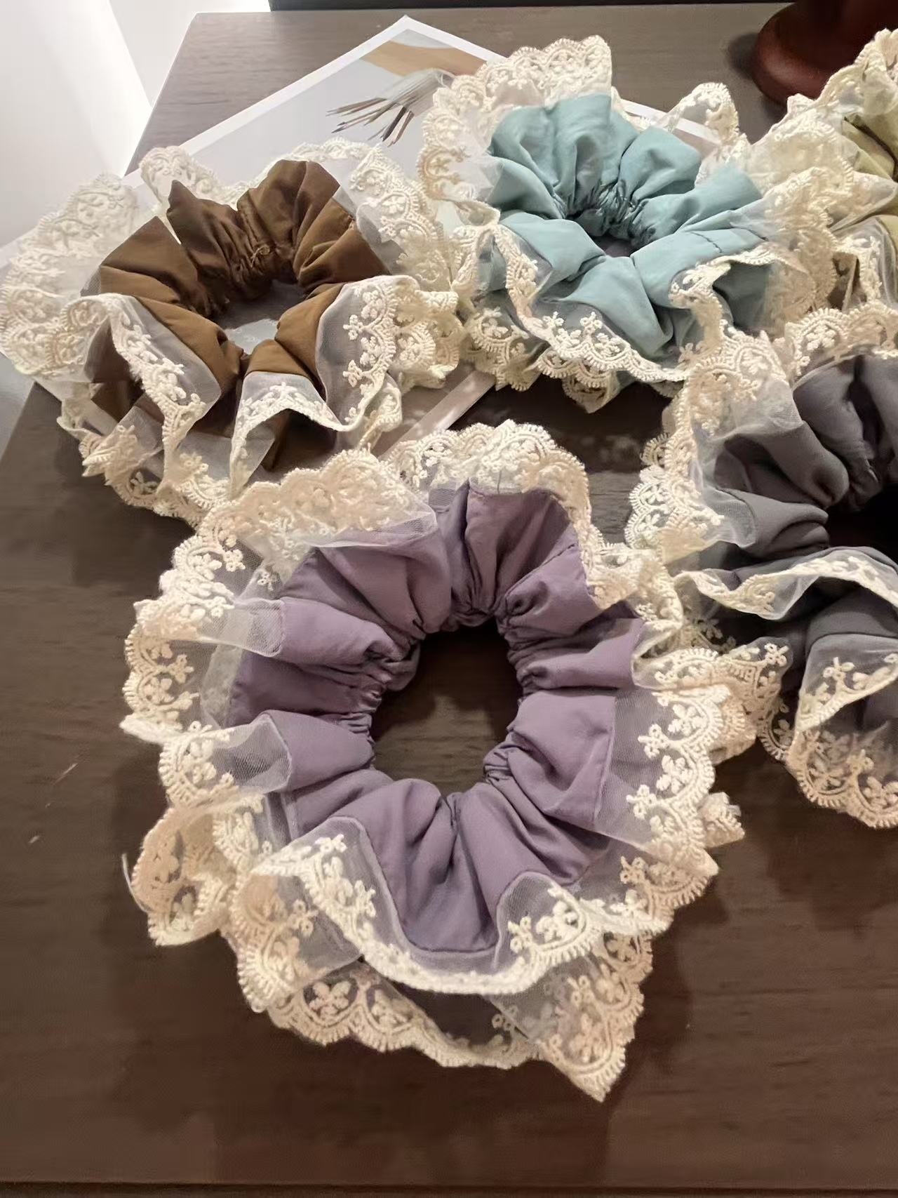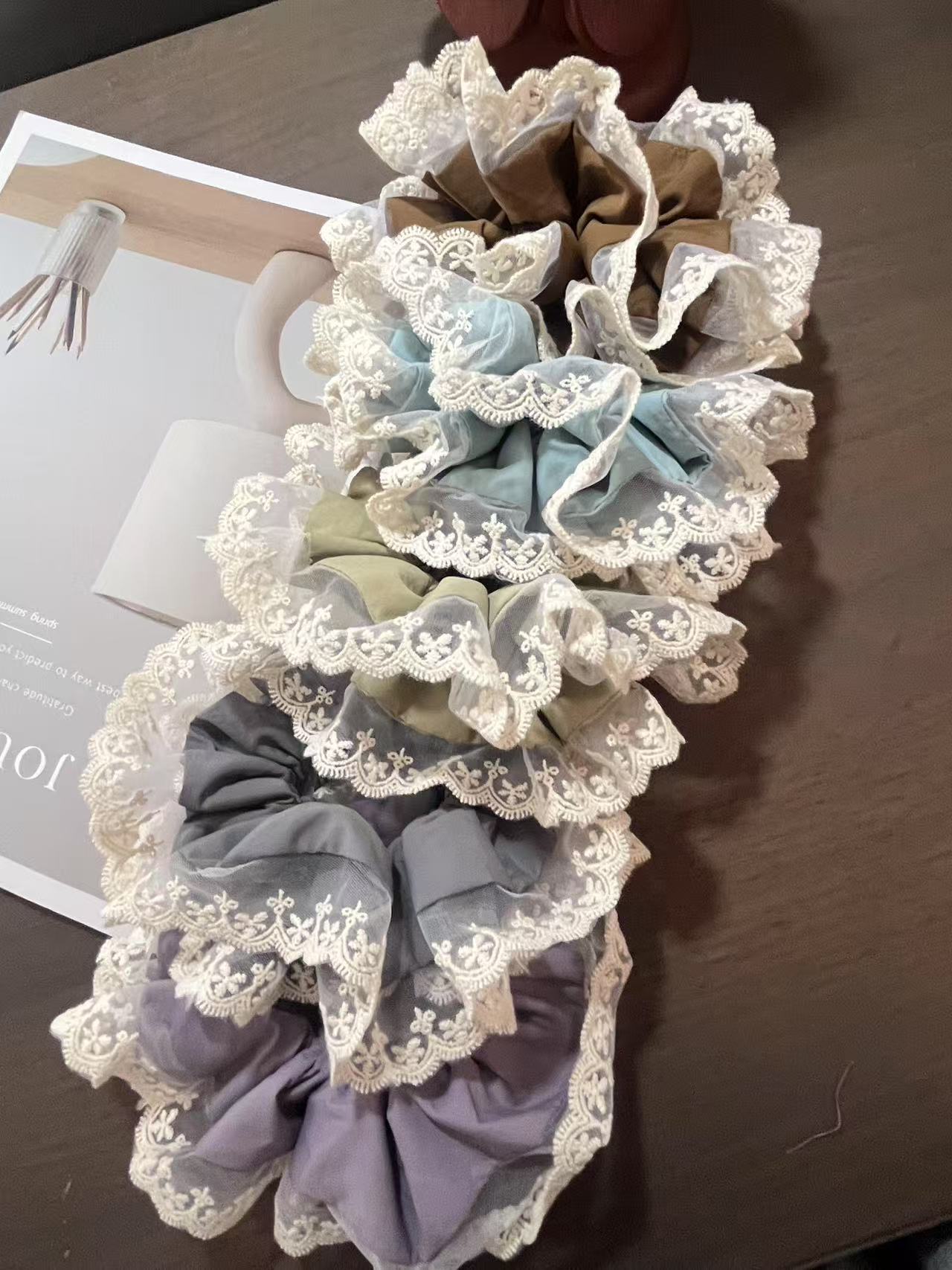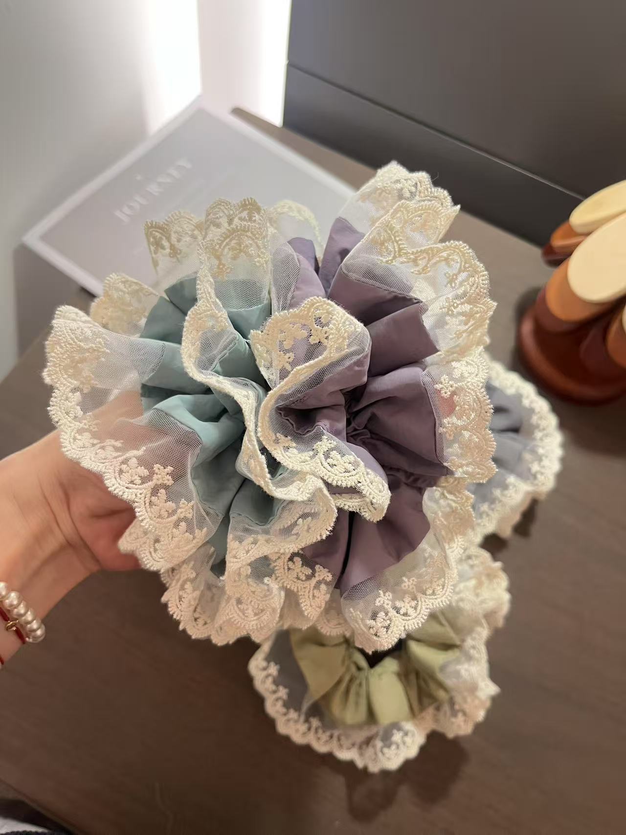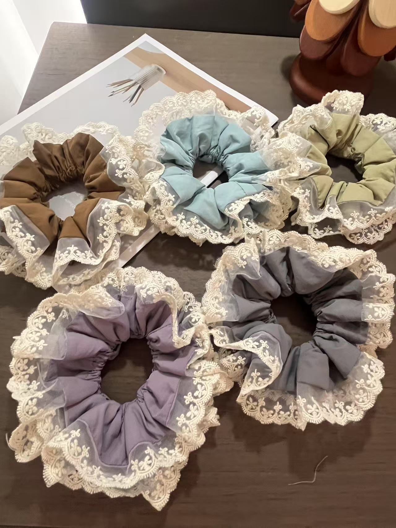 새로운 빠른 건조 레이스 자수 레이스 헤어 링 가리 간단한 대형 그릇 링 단색 달콤한 헤어 로프 헤어 로프 헤어 액세서리